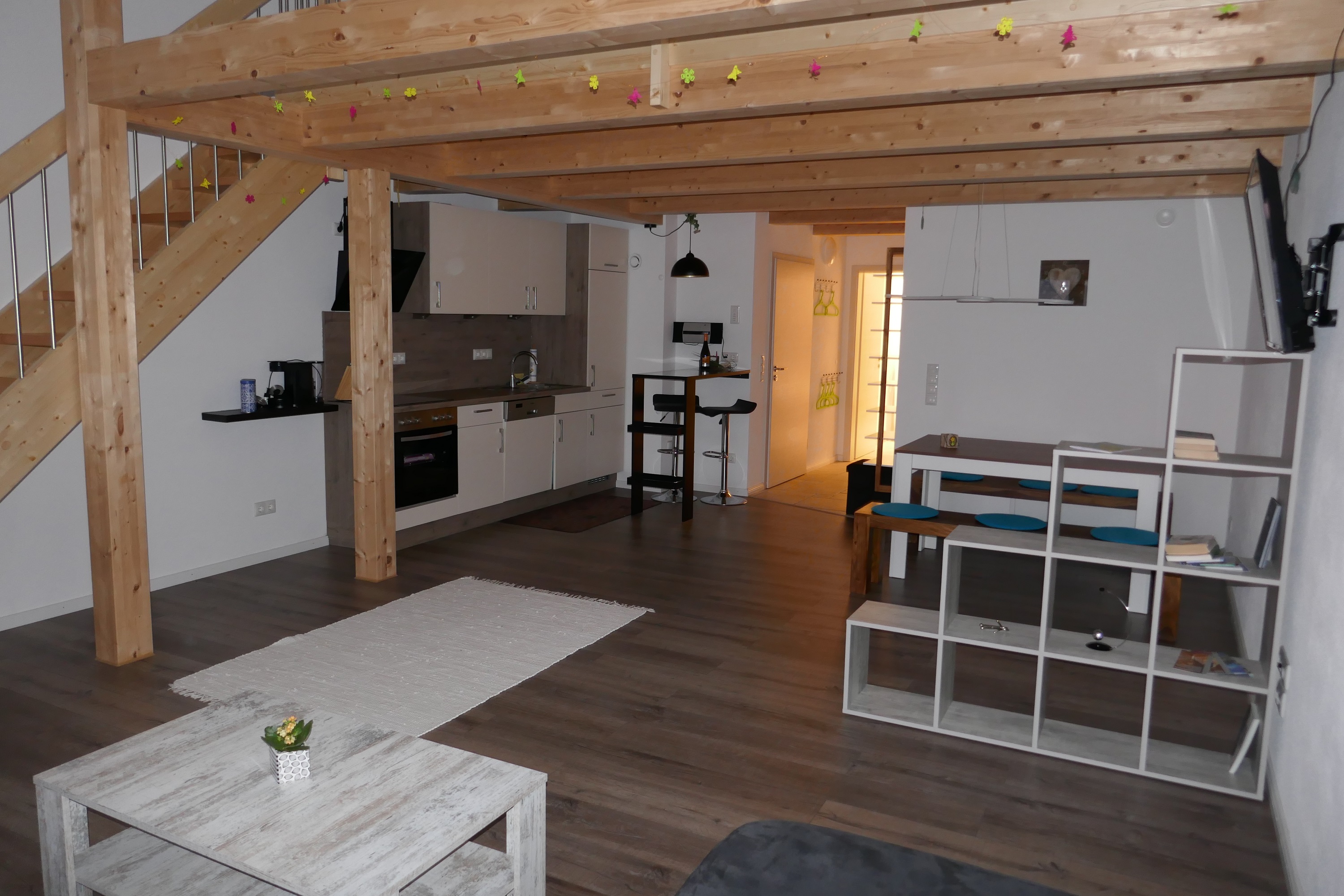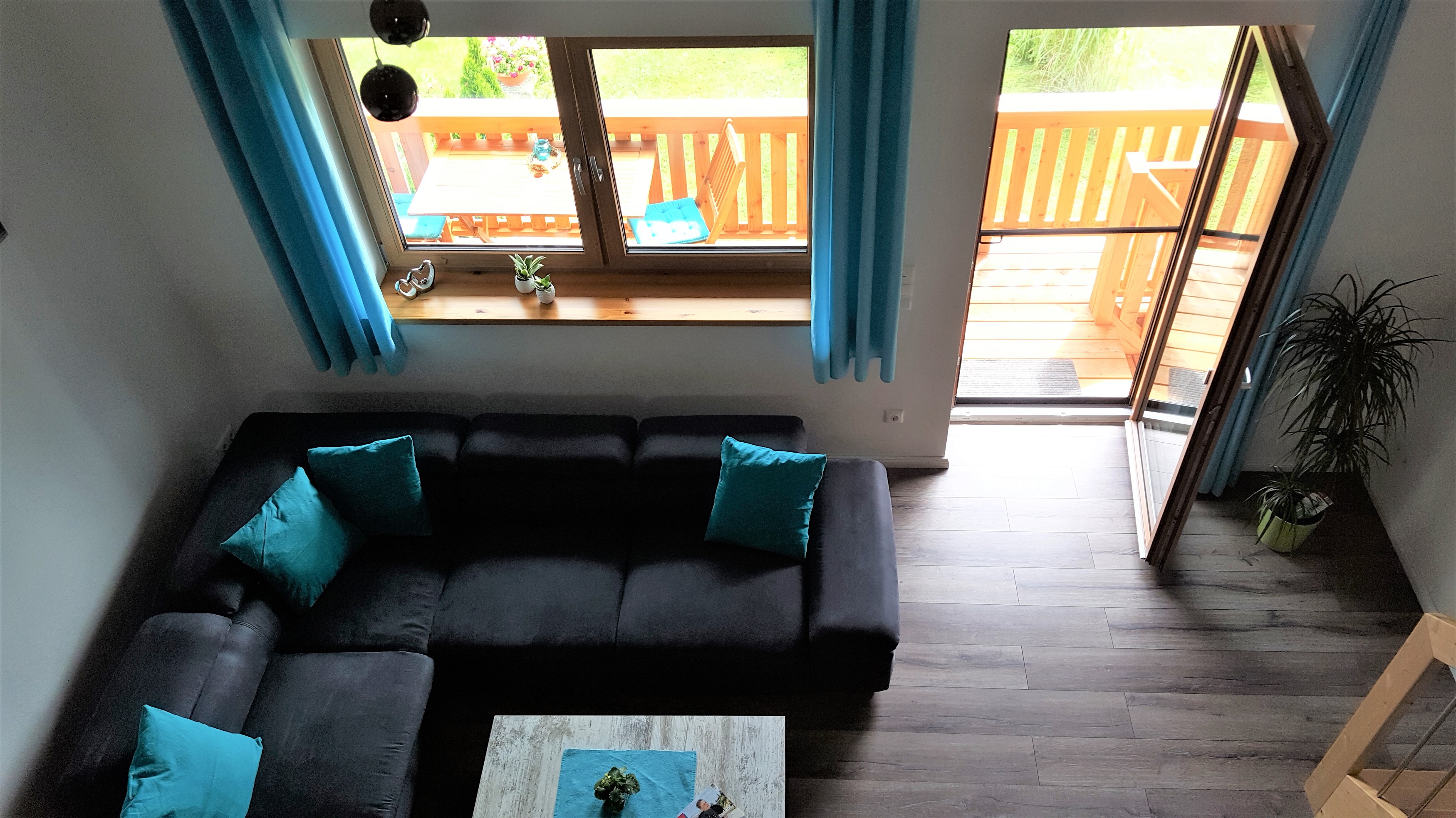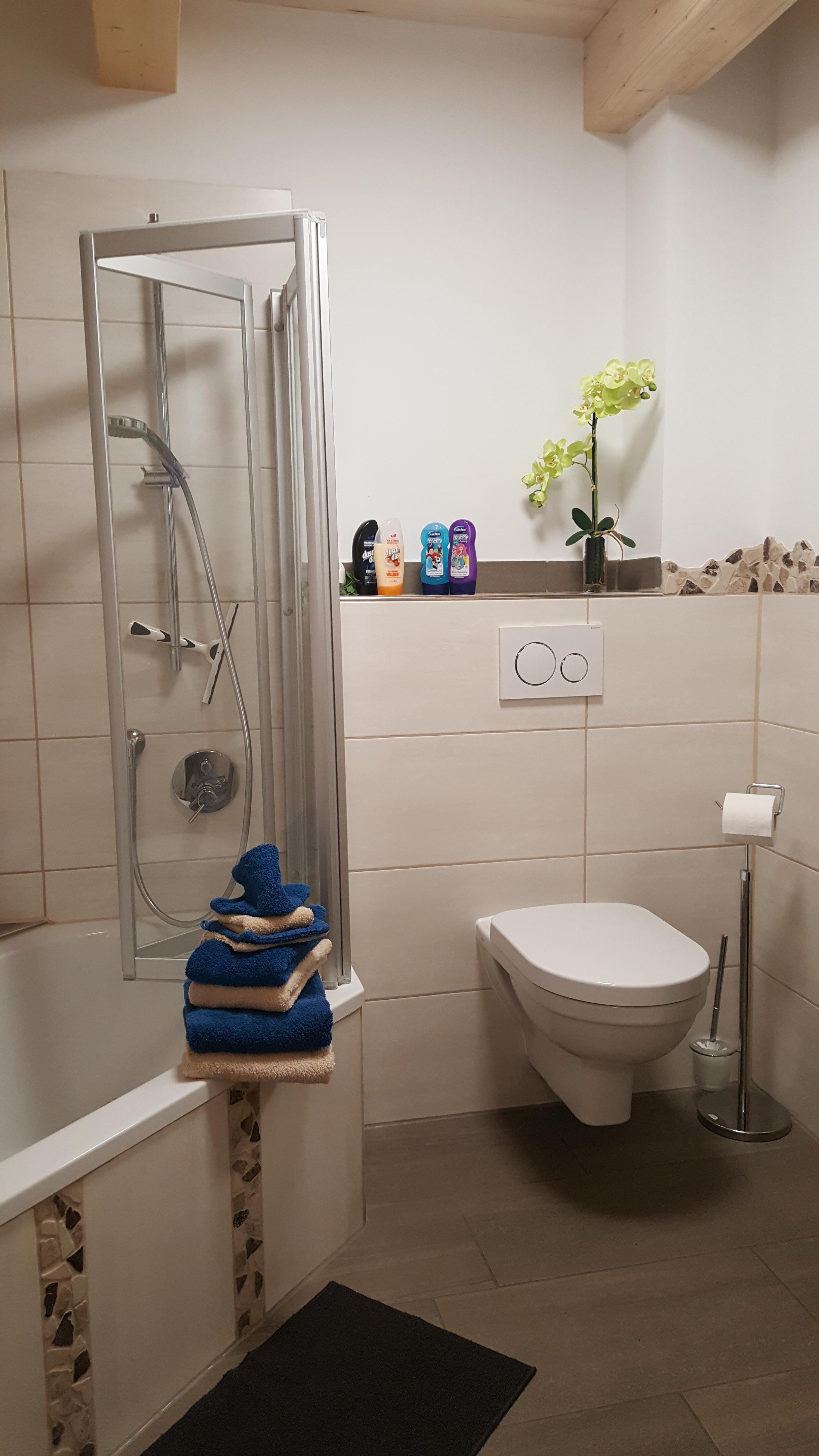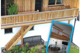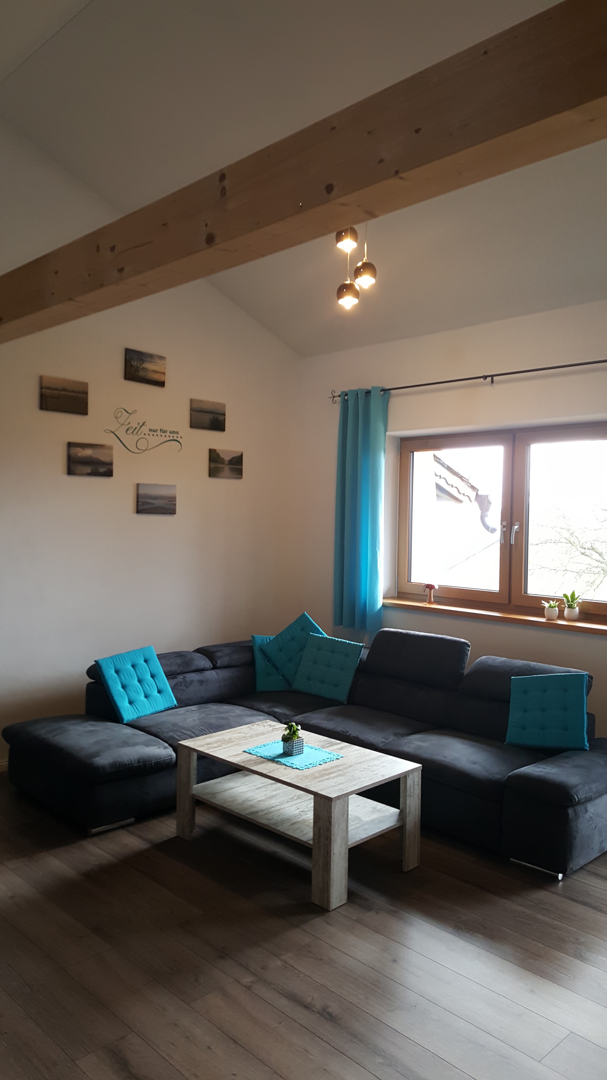 Unsere liebevoll und modern eingerichtete Ferienwohnung ChiemseeZeit ist im ersten Stock und bietet auf 90qm Platz für 2 bis 8 Personen, die auch alle auf dem geräumigen Balkon Platz finden :) Im Schlafzimmer schlafen sie im 180x200cm großem Doppelbett auf hochwertigen Kaltschaummatratzen. Das Kinderzimmer auf der offenen Galerie hat 4 Betten, (2 mit 90x200cm + 2 mit 90*190cm), in denen auch 4 Erwachsene schlafen können. In unserem individuell gestalteten Bad/WC finden Sie eine große Eckbadewanne mit Echtglas Duschwand vor. In der Küche ist neben den üblichen E-Geräten eine Senseo Switch Kaffeemaschine für Pad und Filter. Sitzen können Sie entweder an der Theke, am großen Esstisch mit Massivholzbänken, ganz gemütlich auf der großen Eckcouch aus Luxus-Microfaser, oder auf unserem großen Lärchenholz Balkon. Dort haben Sie auch Ihre Kids beim Spielen auf der Wiese im Blick, und können so ganz entspannt den Tag mit Blick auf Berge und See ausklingen lassen. Wir haben hochwertige Laminat- und Fliesenböden verlegt, so dass auch die Allergiker unter Ihnen gut durchschnaufen können. Natürlich sind Handtücher, Bettwäsche parken und WLAN kostenlos.