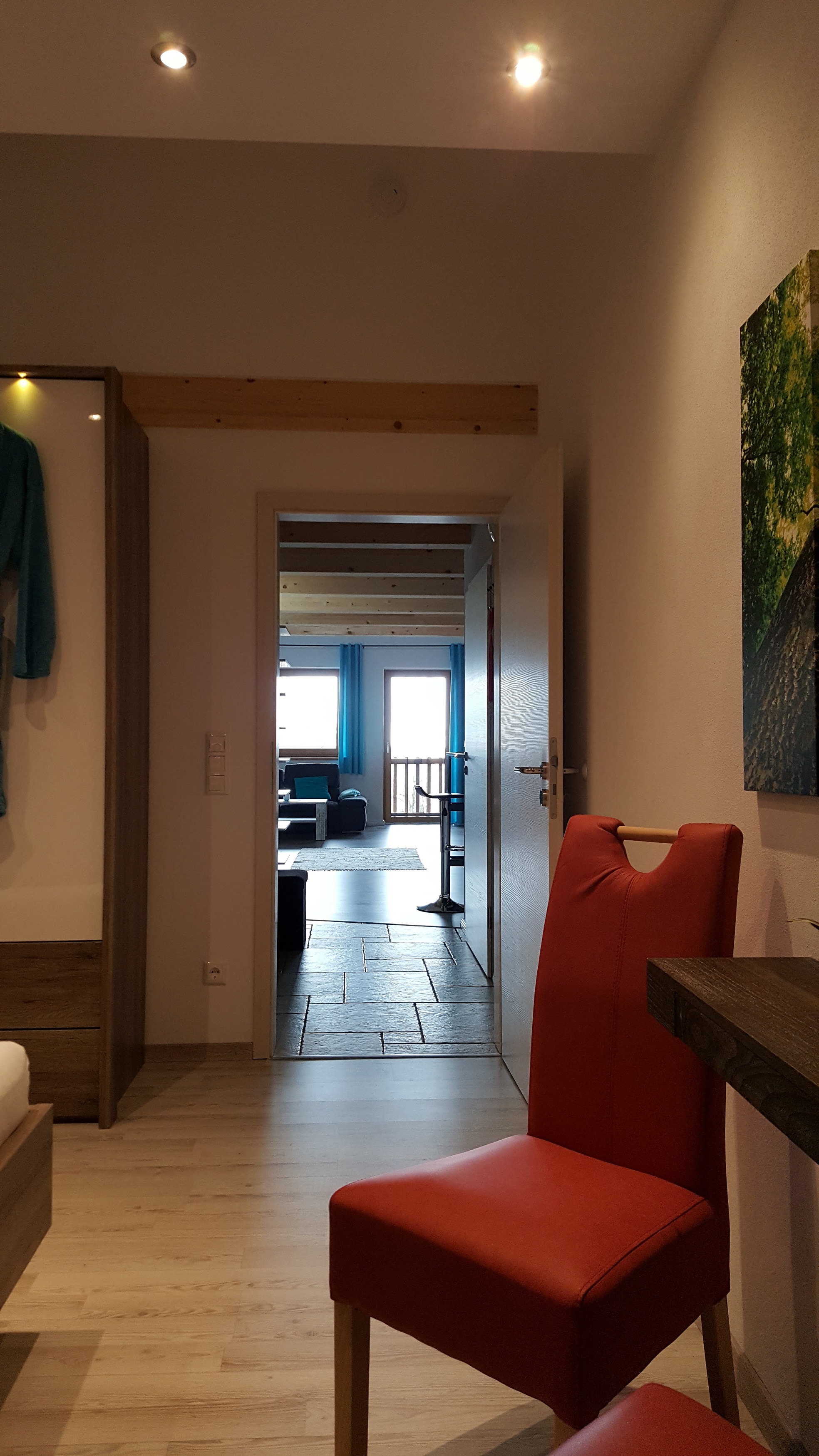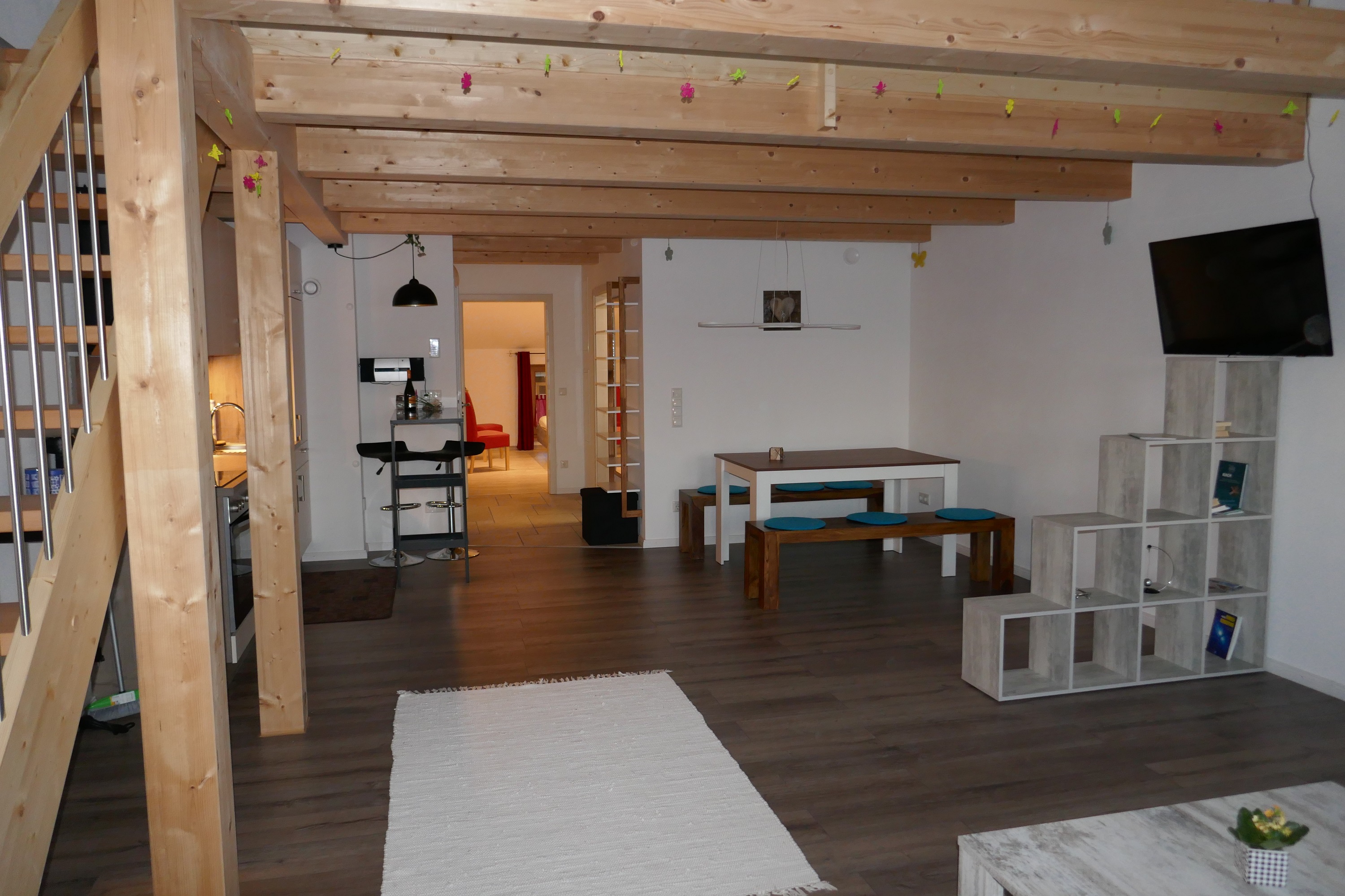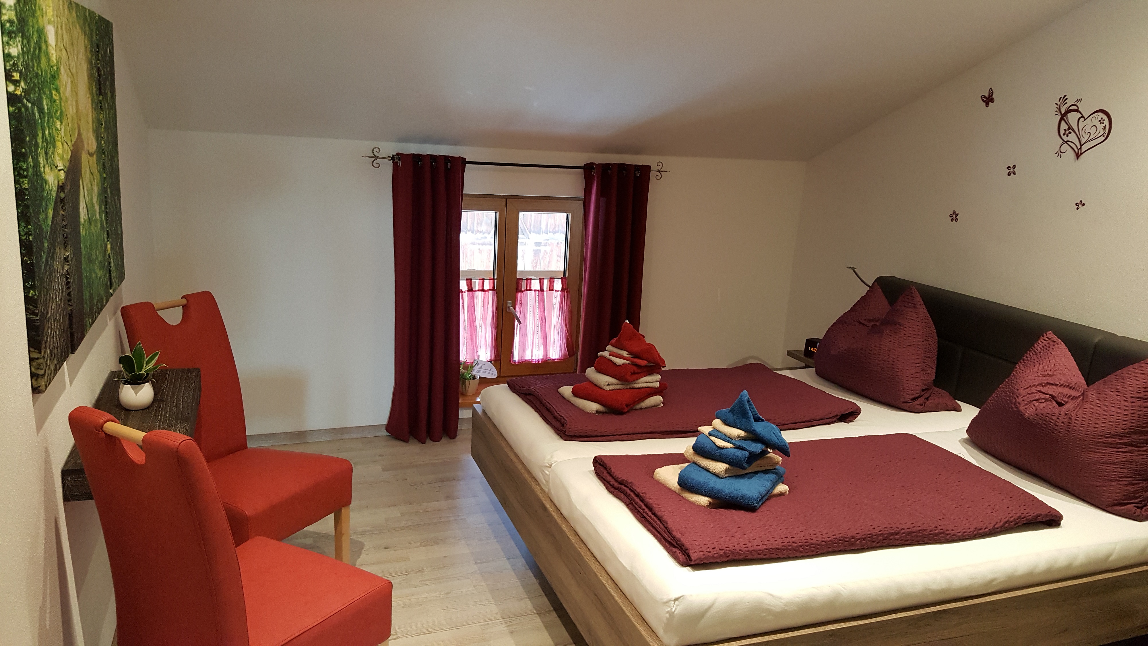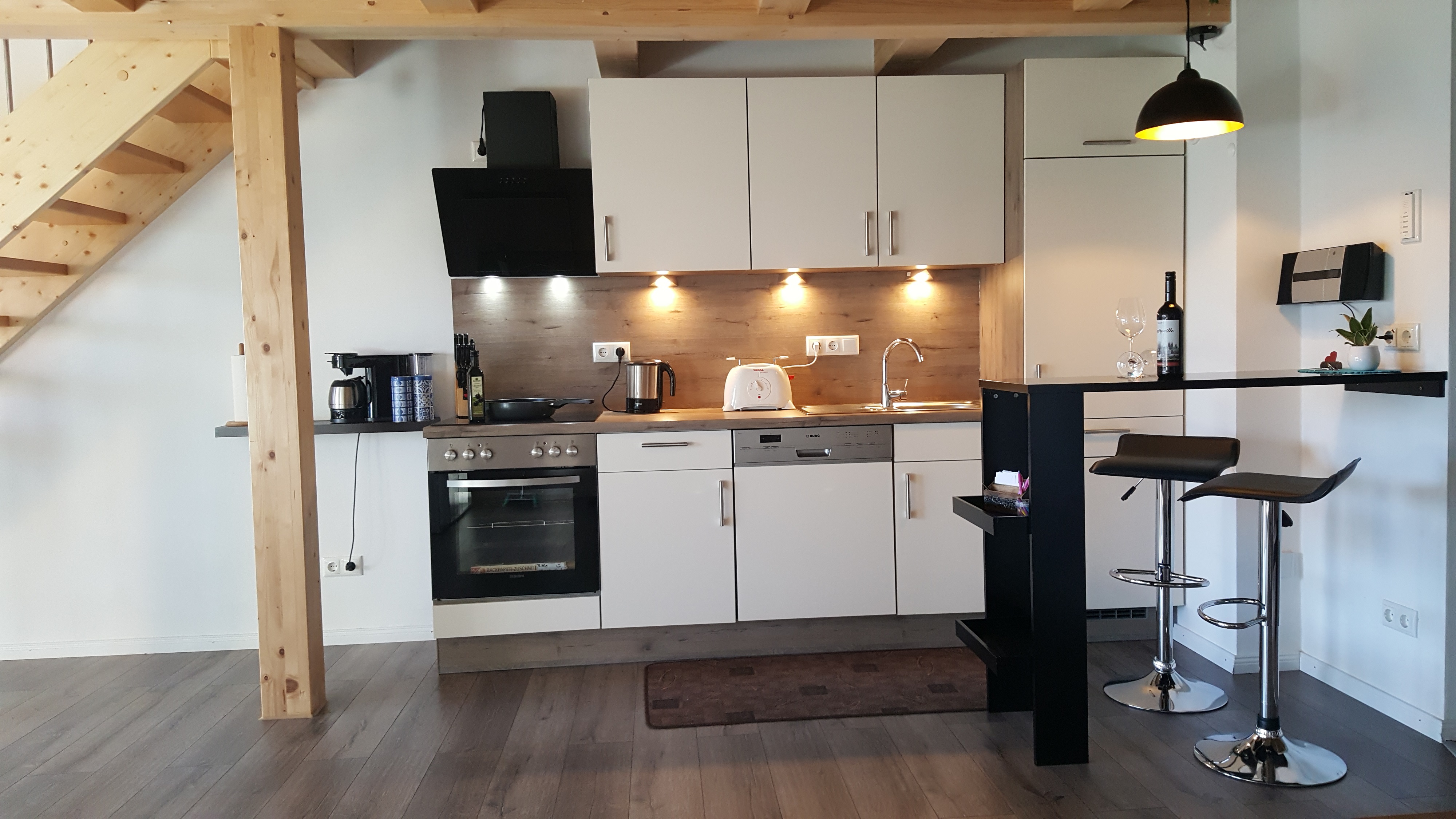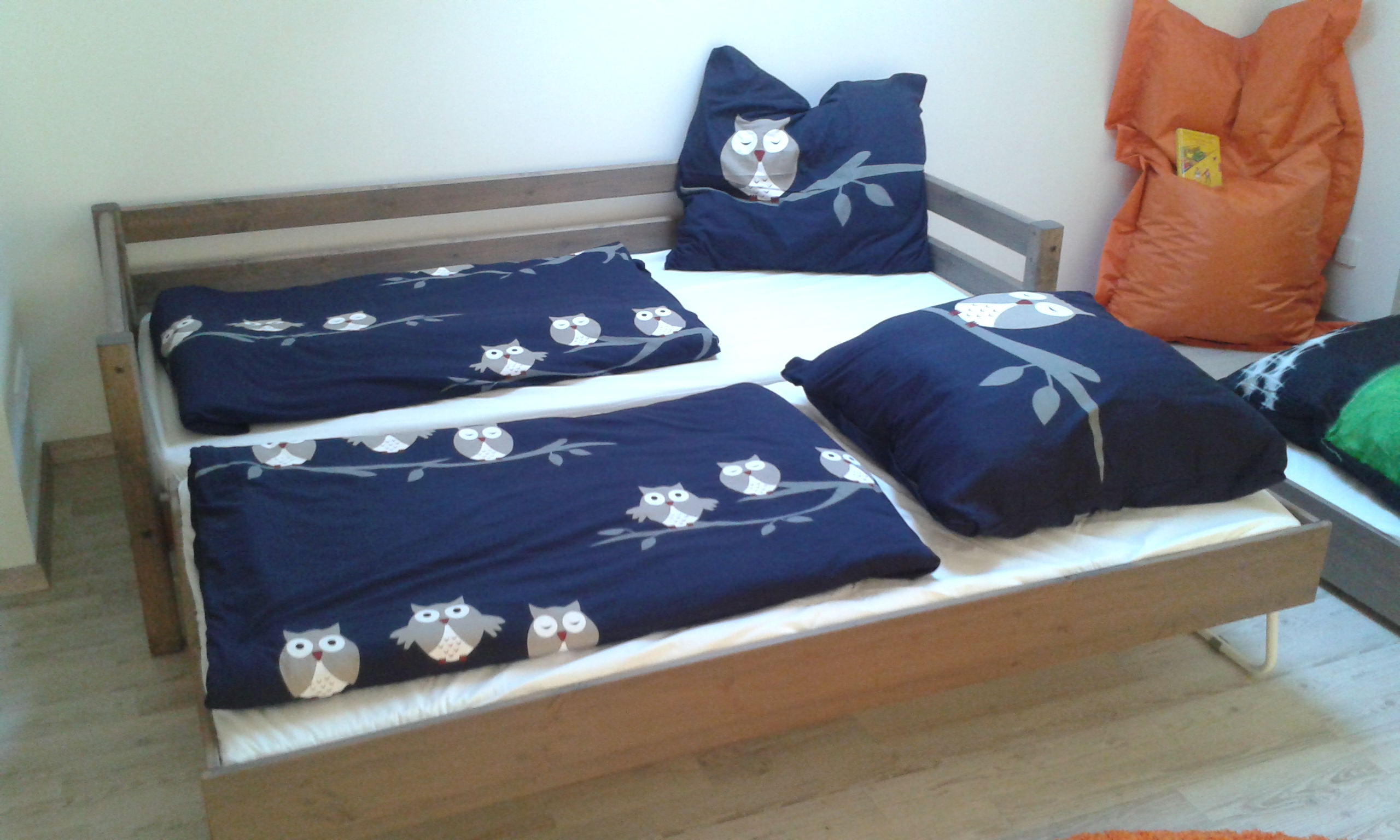 Unsere liebevoll und modern eingerichtete Ferienwohnung ChiemseeZeit ist im ersten Stock und bietet auf 90qm Platz für 2 bis 8 Personen, die auch alle auf dem geräumigen Balkon Platz finden :) Im Schlafzimmer schlafen sie im 180x200cm großem Doppelbett auf hochwertigen Kaltschaummatratzen. Das Kinderzimmer auf der offenen Galerie hat 4 Betten, (2 mit 90x200cm + 2 mit 90*190cm), in denen auch 4 Erwachsene schlafen können. In unserem individuell gestalteten Bad/WC finden Sie eine große Eckbadewanne mit Echtglas Duschwand vor. In der Küche ist neben den üblichen E-Geräten eine Senseo Switch Kaffeemaschine für Pad und Filter. Sitzen können Sie entweder an der Theke, am großen Esstisch mit Massivholzbänken, ganz gemütlich auf der großen Eckcouch aus Luxus-Microfaser, oder auf unserem großen Lärchenholz Balkon. Dort haben Sie auch Ihre Kids beim Spielen auf der Wiese im Blick, und können so ganz entspannt den Tag mit Blick auf Berge und See ausklingen lassen. Wir haben hochwertige Laminat- und Fliesenböden verlegt, so dass auch die Allergiker unter Ihnen gut durchschnaufen können. Natürlich sind Handtücher, Bettwäsche parken und WLAN kostenlos.