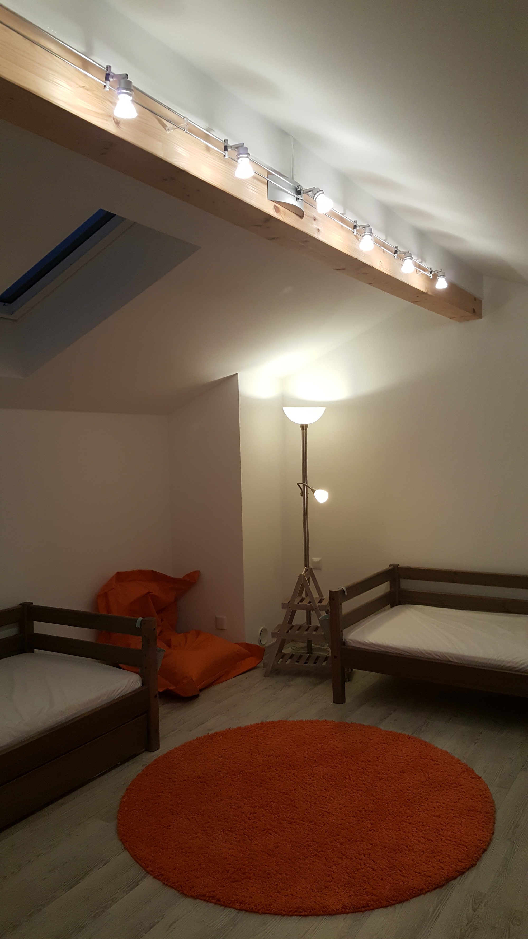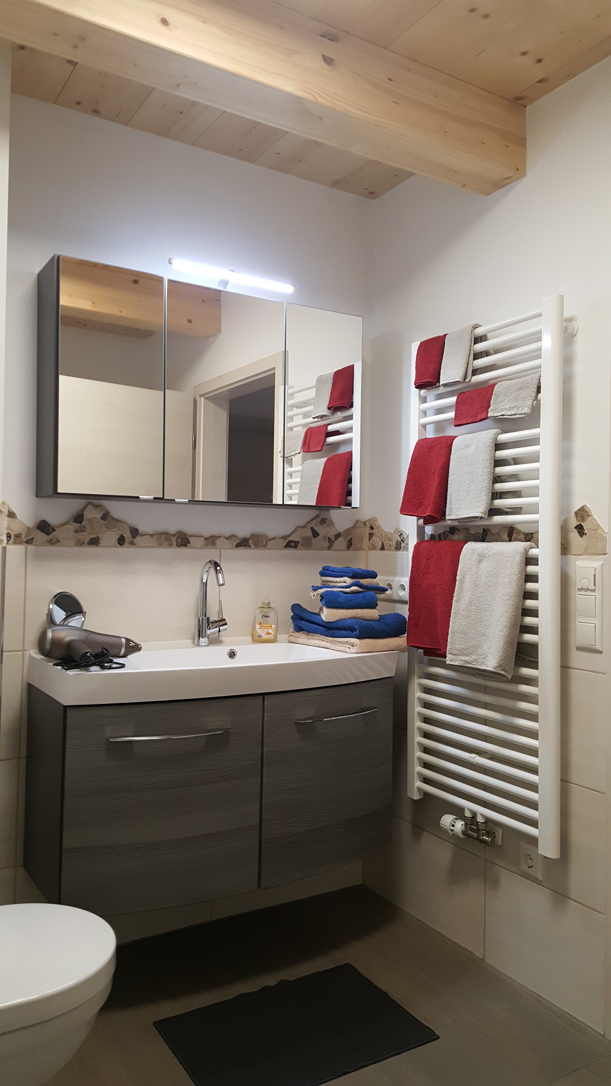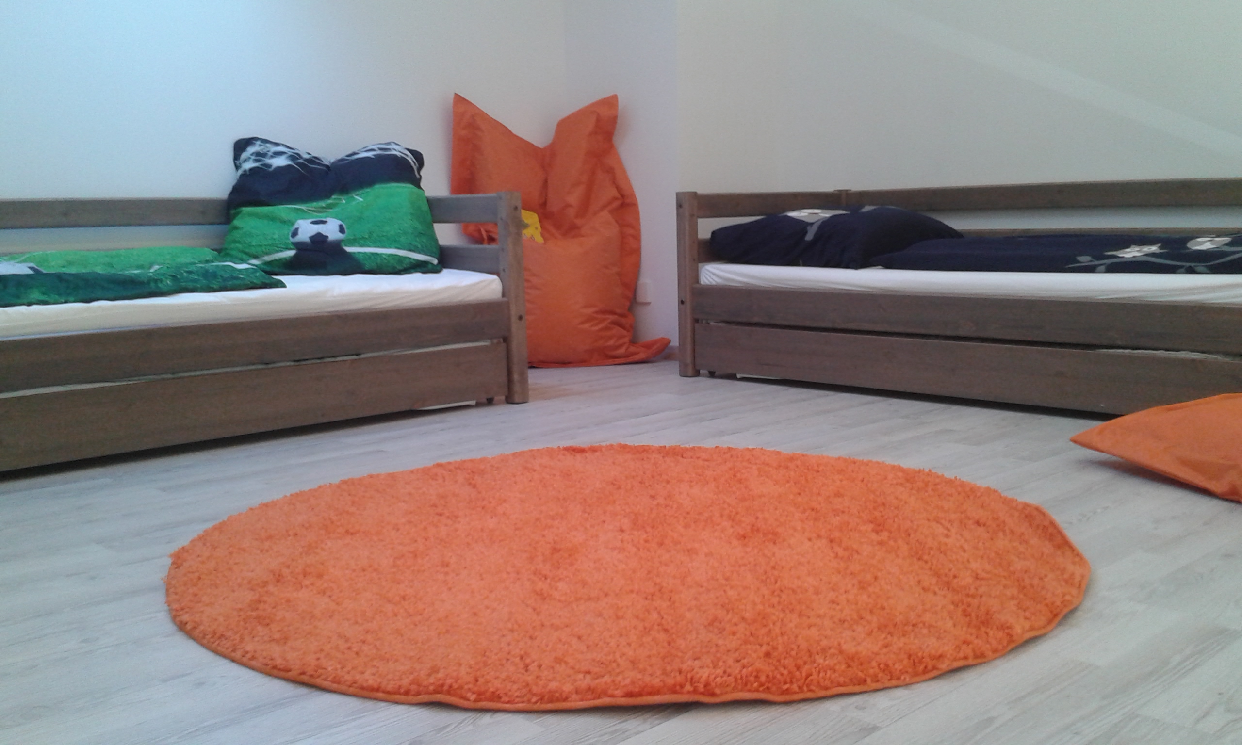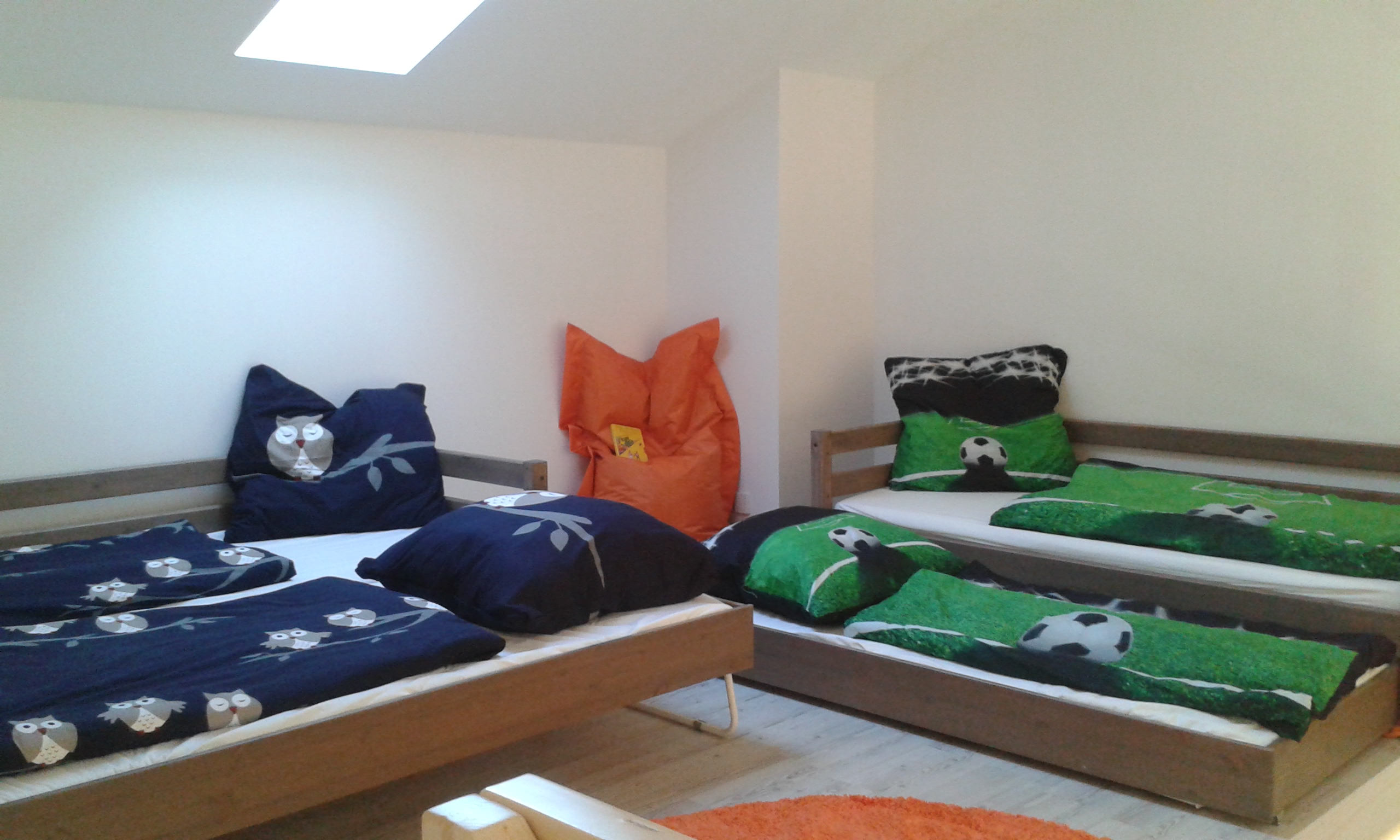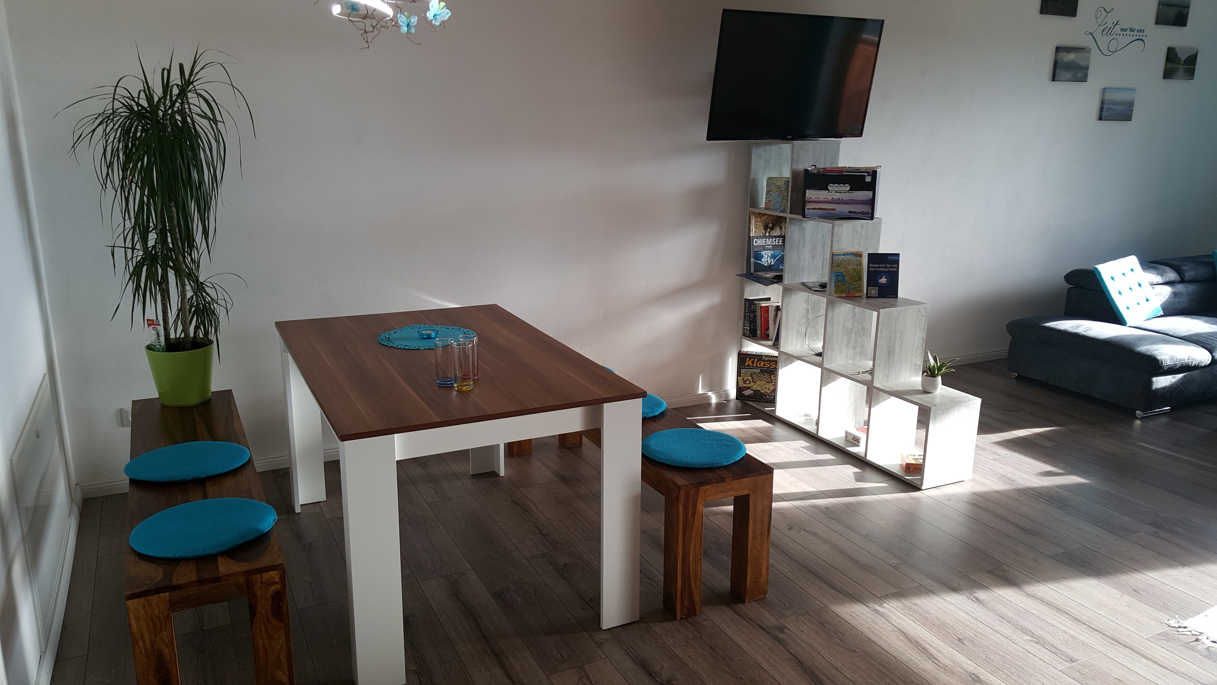 Unsere liebevoll und modern eingerichtete Ferienwohnung ChiemseeZeit ist im ersten Stock und bietet auf 90qm Platz für 2 bis 8 Personen, die auch alle auf dem geräumigen Balkon Platz finden :) Im Schlafzimmer schlafen sie im 180x200cm großem Doppelbett auf hochwertigen Kaltschaummatratzen. Das Kinderzimmer auf der offenen Galerie hat 4 Betten, (2 mit 90x200cm + 2 mit 90*190cm), in denen auch 4 Erwachsene schlafen können. In unserem individuell gestalteten Bad/WC finden Sie eine große Eckbadewanne mit Echtglas Duschwand vor. In der Küche ist neben den üblichen E-Geräten eine Senseo Switch Kaffeemaschine für Pad und Filter. Sitzen können Sie entweder an der Theke, am großen Esstisch mit Massivholzbänken, ganz gemütlich auf der großen Eckcouch aus Luxus-Microfaser, oder auf unserem großen Lärchenholz Balkon. Dort haben Sie auch Ihre Kids beim Spielen auf der Wiese im Blick, und können so ganz entspannt den Tag mit Blick auf Berge und See ausklingen lassen. Wir haben hochwertige Laminat- und Fliesenböden verlegt, so dass auch die Allergiker unter Ihnen gut durchschnaufen können. Natürlich sind Handtücher, Bettwäsche parken und WLAN kostenlos.