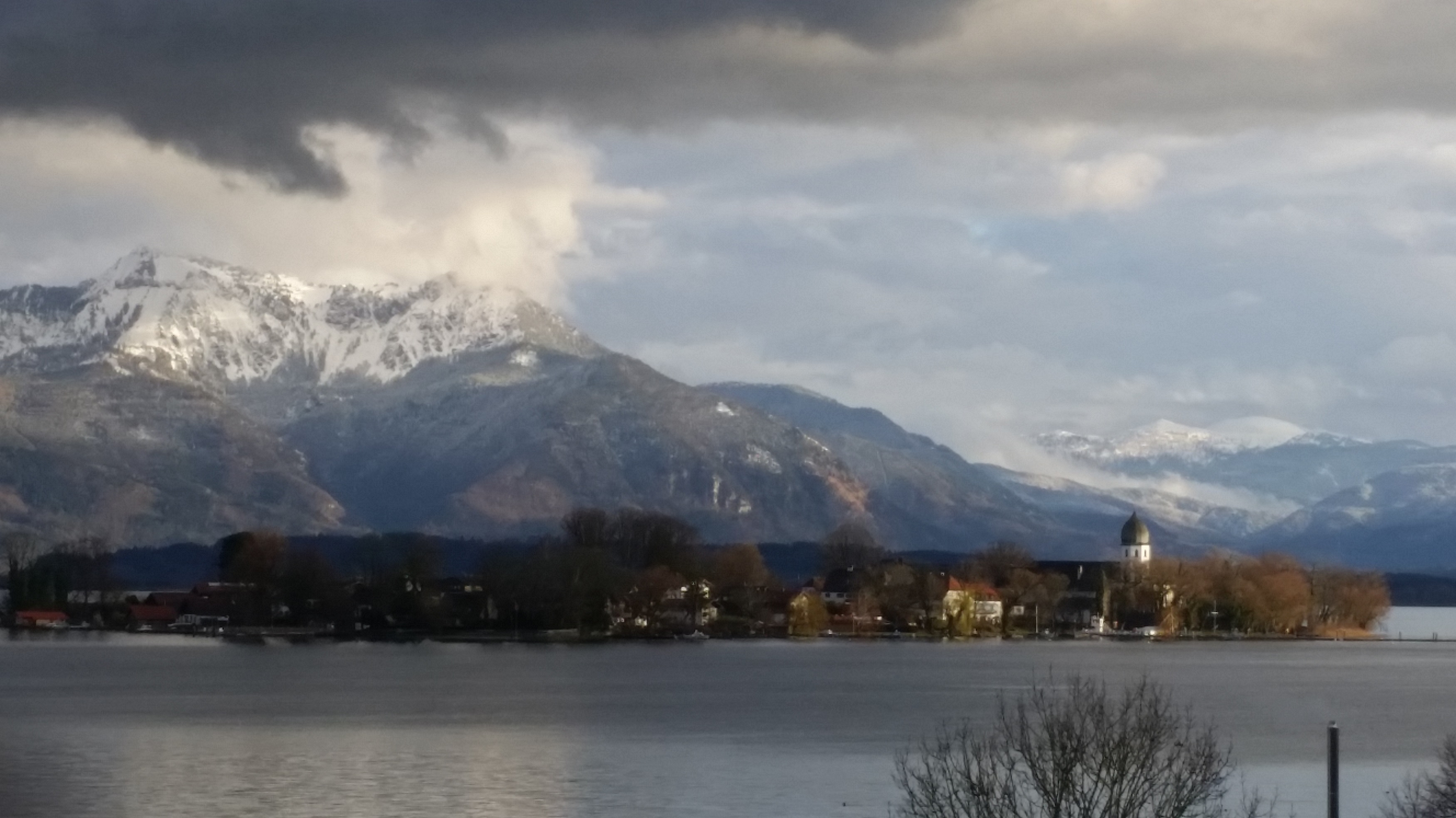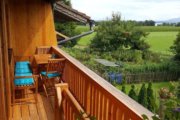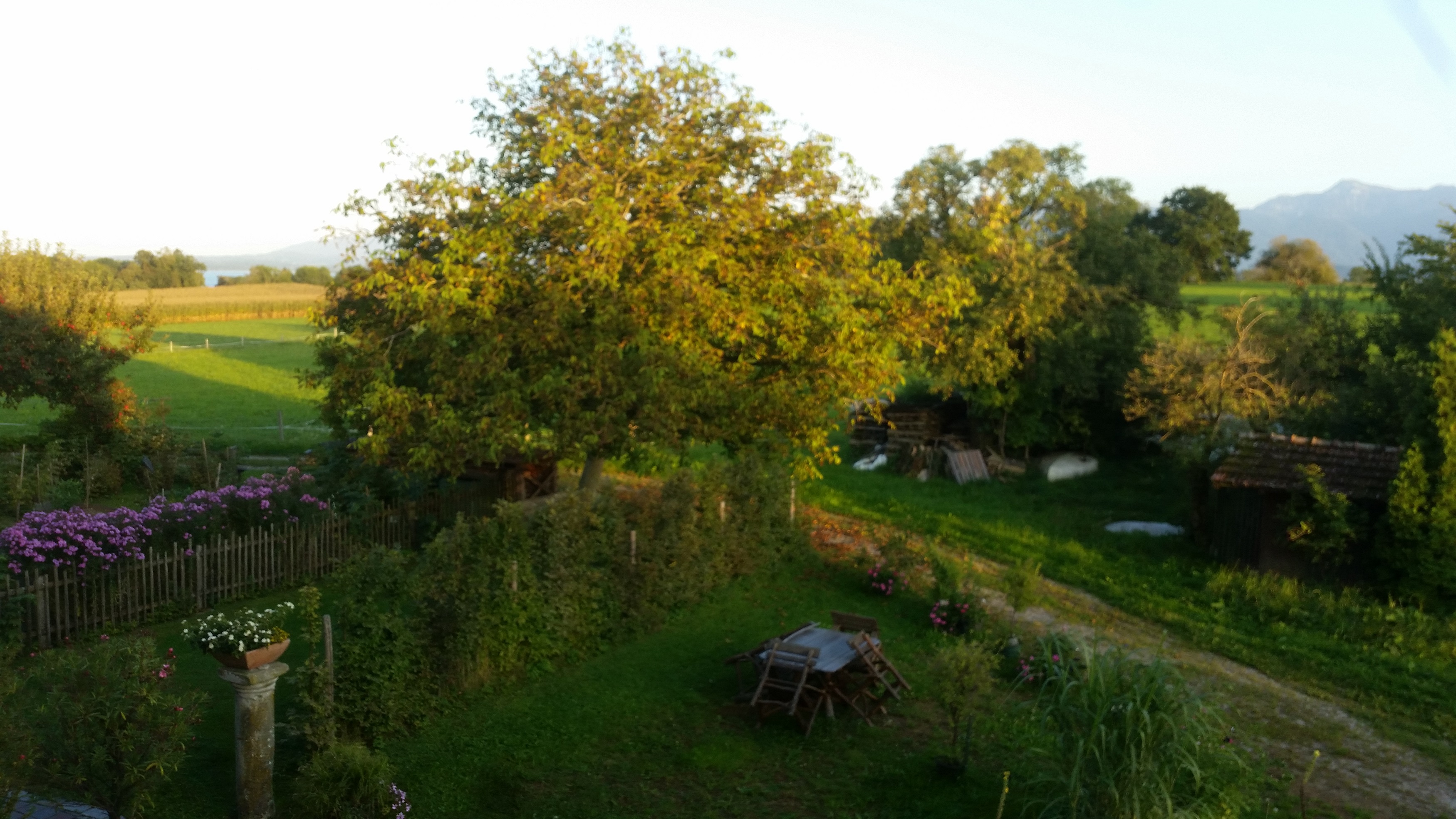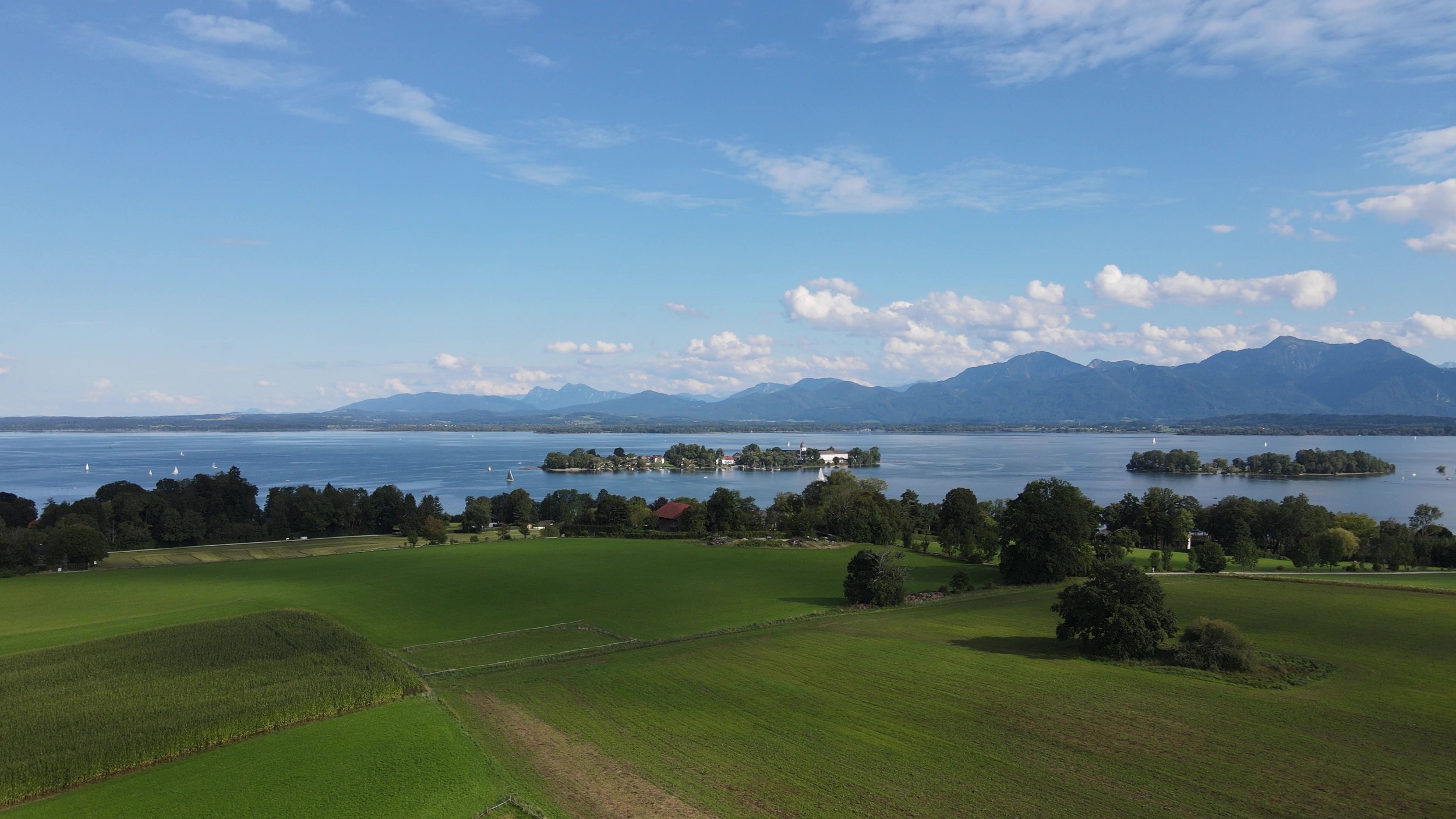 Ihre Ferienwohnung liegt auf einem sanften Hügel zwischen Breitbrunn und Gstadt am Nordufer des Chiemsees. Vom Balkon unseres kleinen Paradieses werden Sie hoffentlich bald den traumhaften Blick auf den See mit den Inseln und die Berge, die wir auf dieser Seeseite so superschön vor uns haben, mit allen Sinnen geniessen!