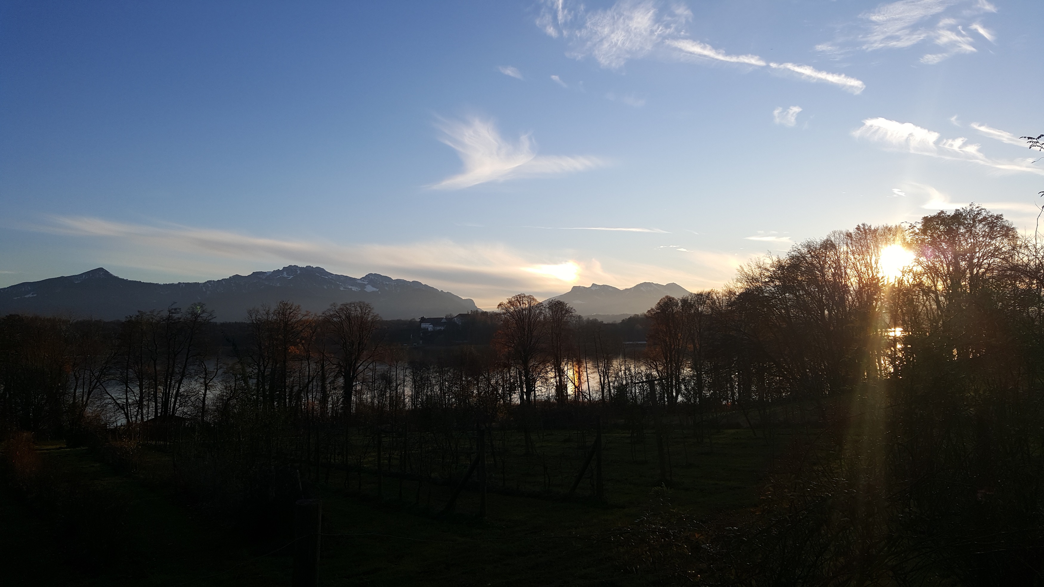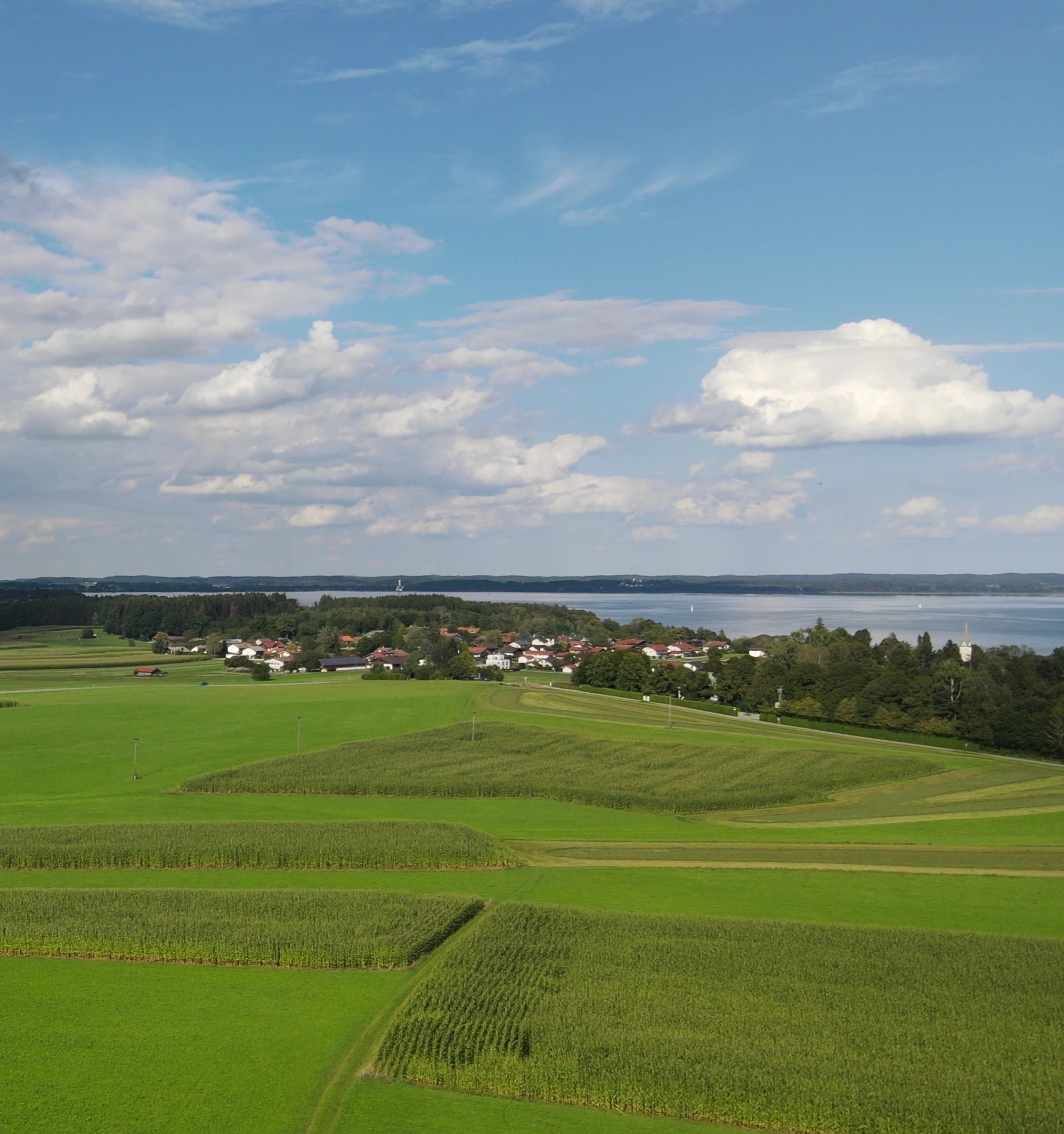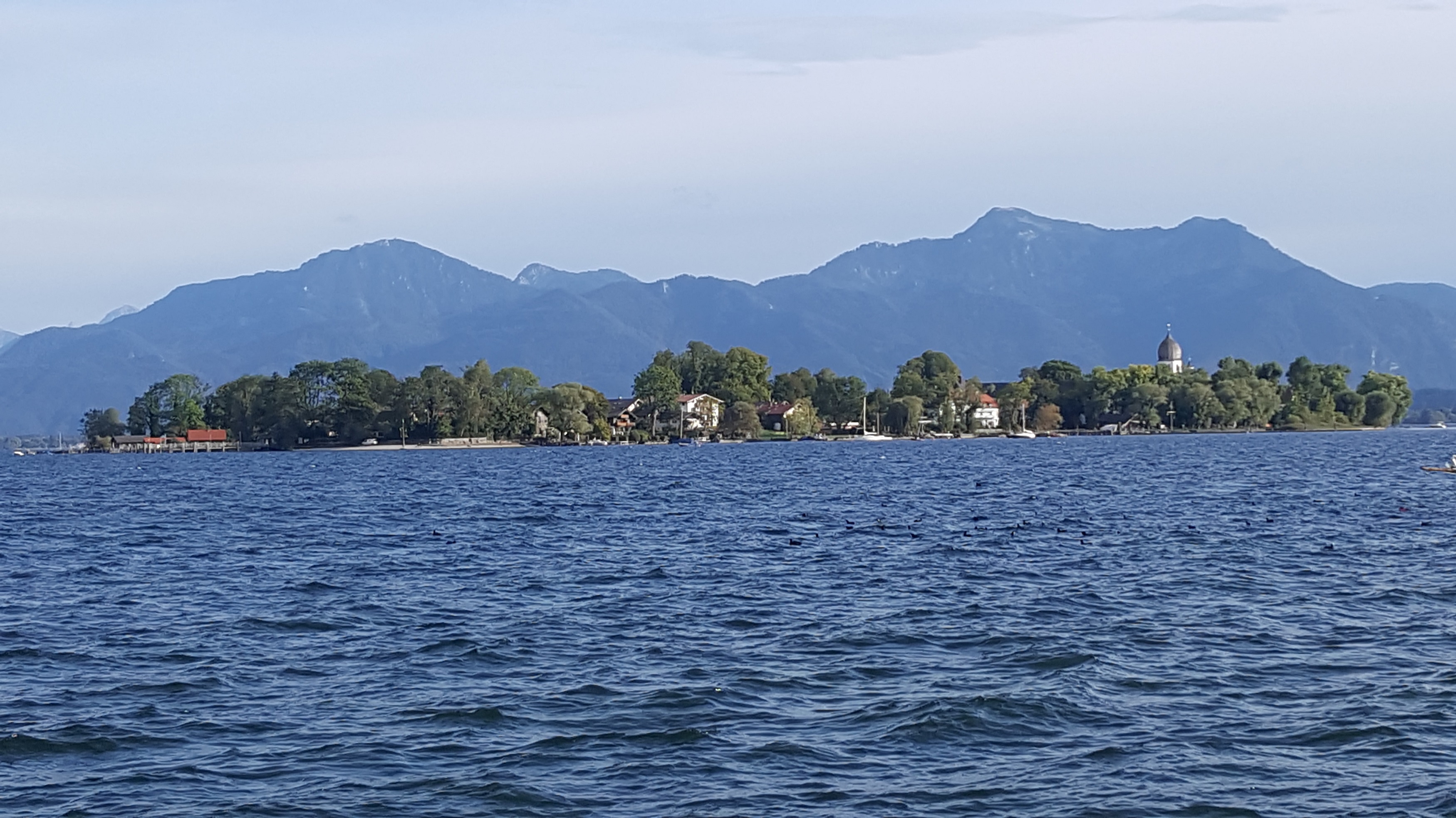 Ihre Ferienwohnung liegt auf einem sanften Hügel zwischen Breitbrunn und Gstadt am Nordufer des Chiemsees. Vom Balkon unseres kleinen Paradieses werden Sie hoffentlich bald den traumhaften Blick auf den See mit den Inseln und die Berge, die wir auf dieser Seeseite so superschön vor uns haben, mit allen Sinnen geniessen!
