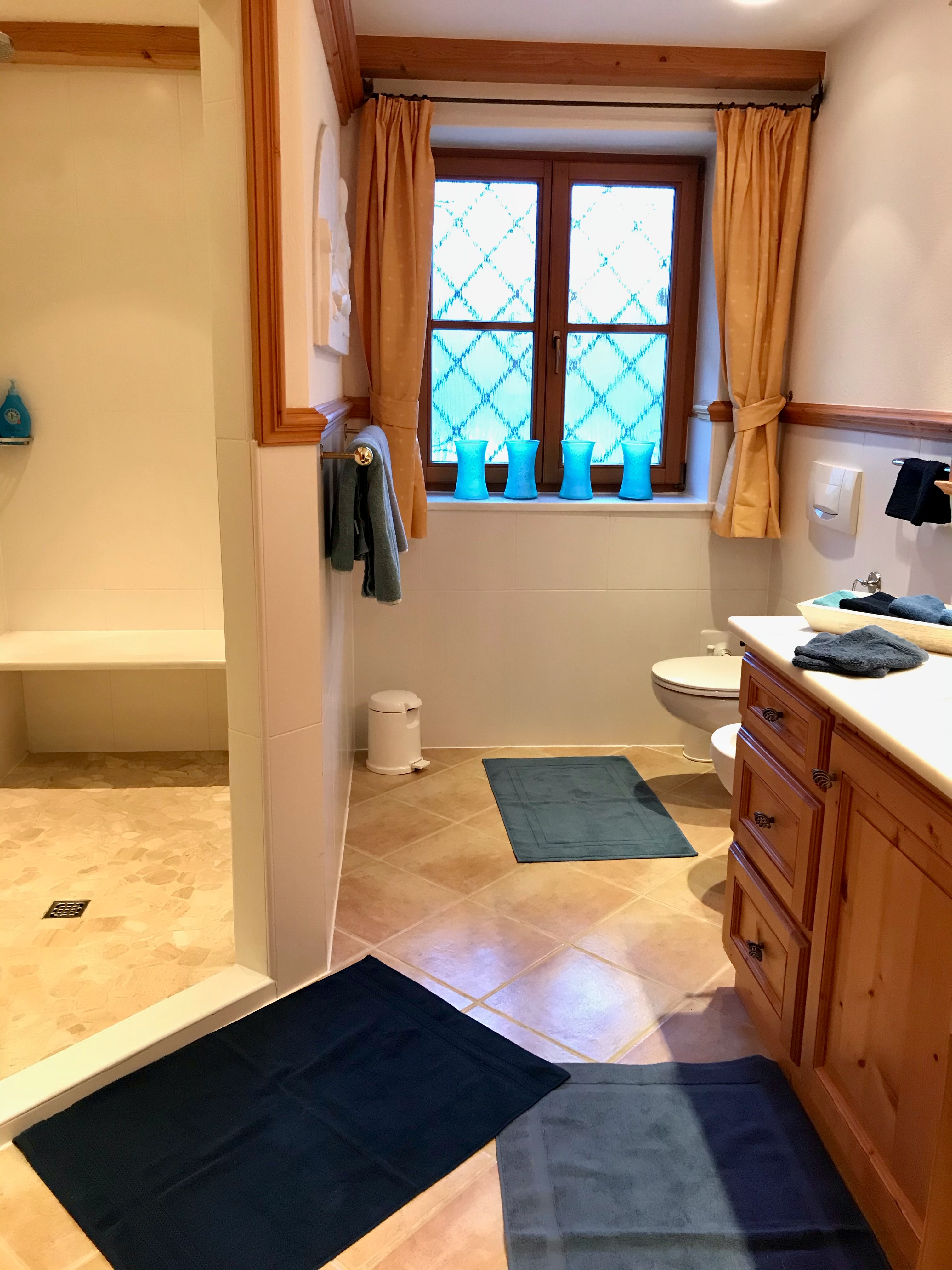 Die exklusive Ferienwohnung für 2-4 Personen verfügt im Außenbereich über eine große Terrasse, Esstisch und Gartenliegen. Es stehen Ihenn ein Schlafzimmer mit einem Doppelbett, ein Schlafzimmer mit einem großen Einzelbett und eine Schlafcouch im Wohnzimmer zur Verfügung. Zudem hat die Wohnung ein großes Wohnzimmer mit Flachbild-TV, Küche mit Essecke, Geschirrspüler, Backofen und eine Mikrowelle. Das große Badezimmer ist mit Dusche, WC, Föhn und Bidet, das kleine Badezimmer mit einem WC, Waschmaschine und Wäschetrockner ausgestattet. Ebenso verfügt die Wohnung über eine Garderobe, Parkplätze und W-Lan. Die Ferienwohnung liegt im Erdgeschoss sonnig und sehr ruhig.Kinder werden bei uns gerne ab 12 Jahre beherbergt.