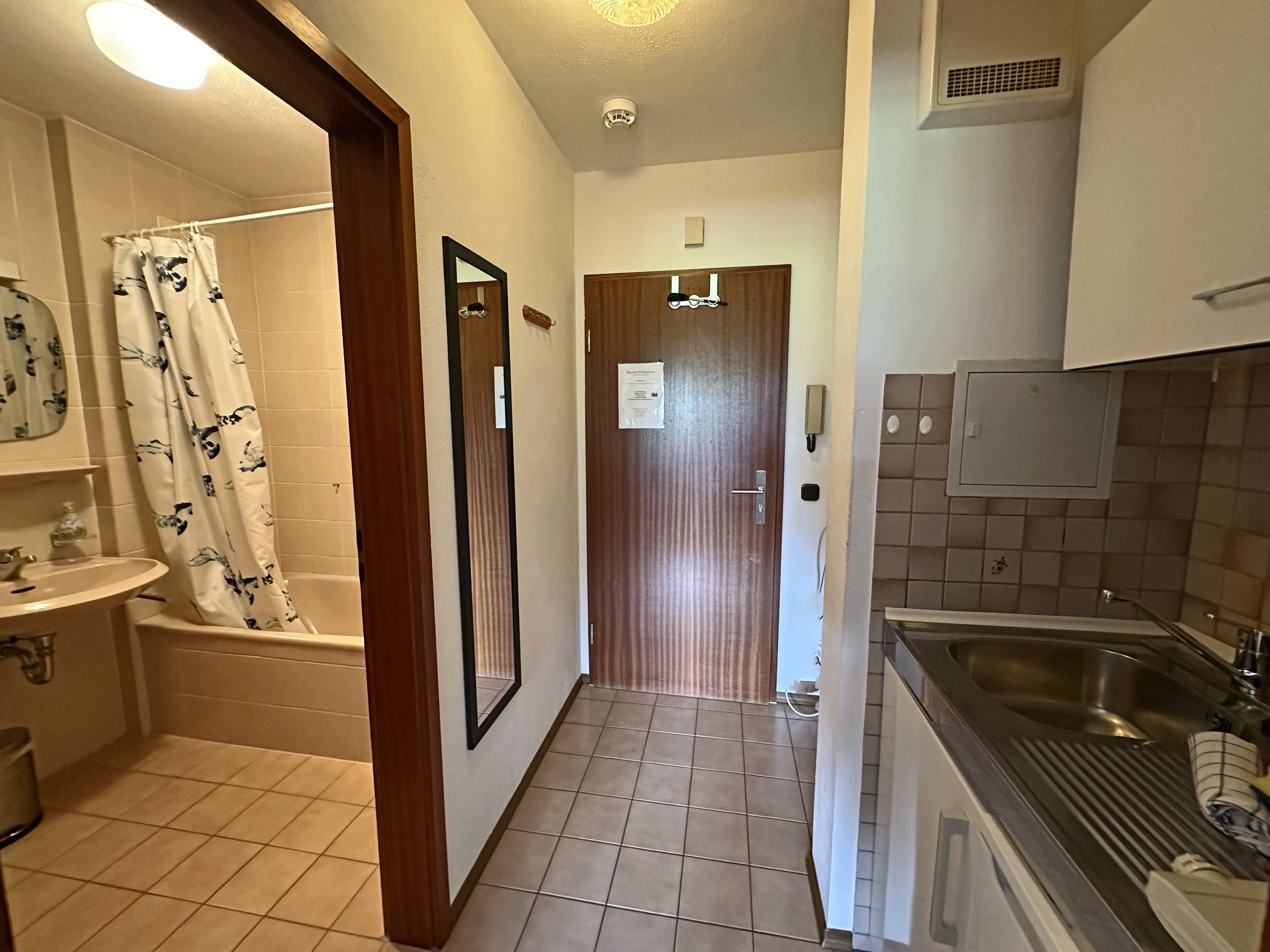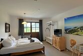 Gemütliches Einzimmer-Nichtraucher-Appartement Kampennest, 32 qm im modernen Alpinstil, verfügt über hochwertige Holzmöbel, Teppichboden, Kabel-TV, komplett ausgestattete Kochnische mit 2-Platten-Herd, bequemes Doppelbett für 2 Personen, urige Eckbank mit Tisch, Badezimmer mit WC und Badewanne.