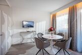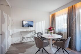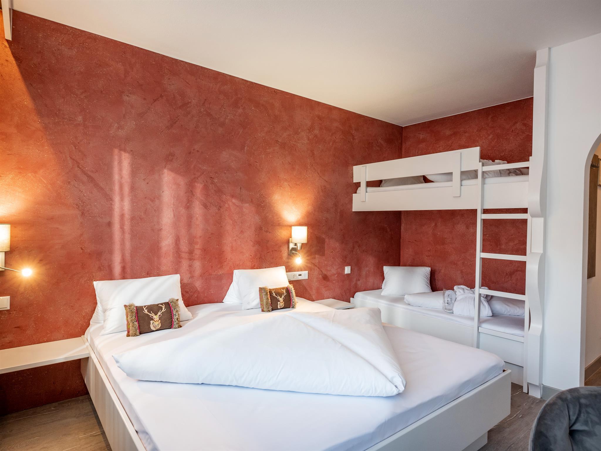 37 qm für 2-4 Personen: Wohn-/Schlafraum mit Doppelbett und Stockbetten, Essecke, Vorraum mit Küche, Badezimmer und Balkon. Weiters: Bademantel, Slippers, Toilettenartikel und Fön. Radio, Sat-TV, Telefon, WLAN.