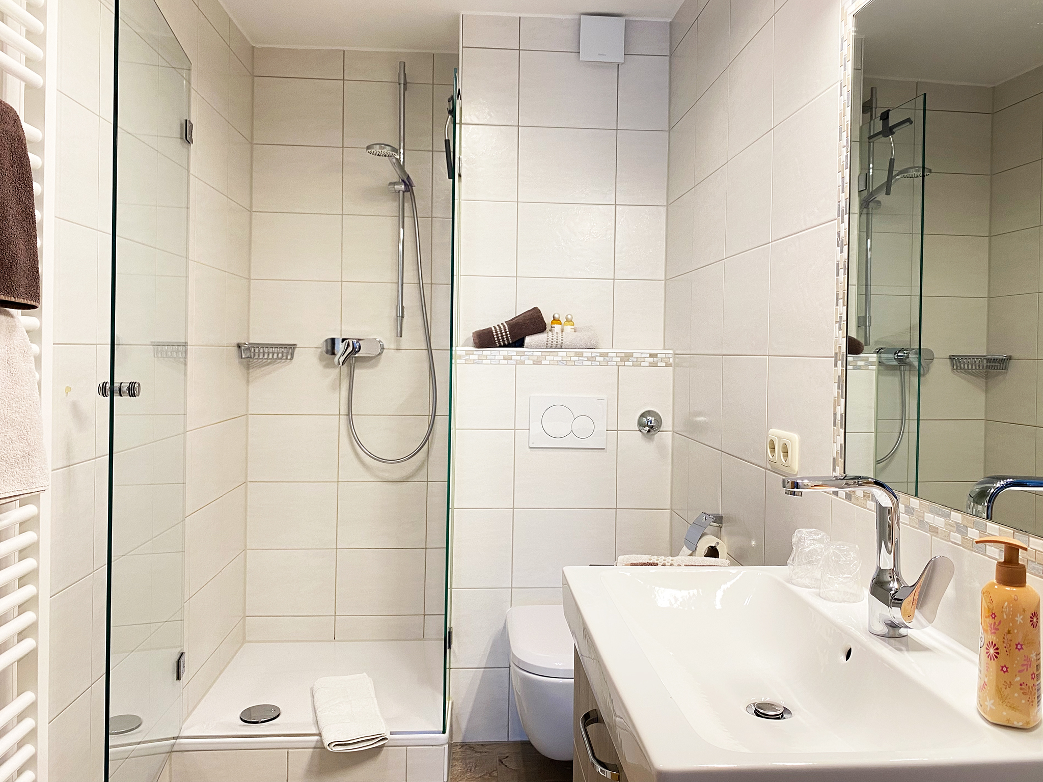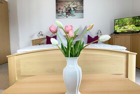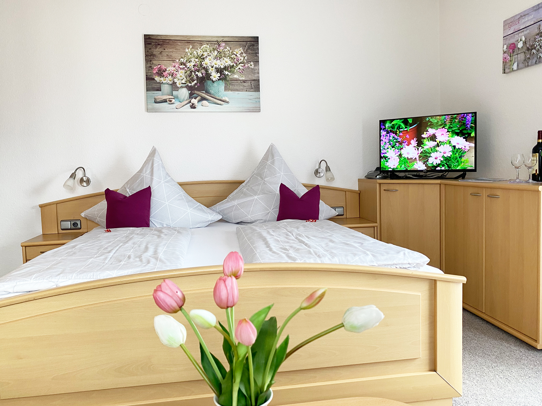 Unsere gemütlich eingerichteten Ferienwohnungen bestehen aus: Schlafzimmer, Wohnküche, Dusche/WC. Sie sind alle ausgestattet mit: Balkon oder Terrasse, SAT-TV, Radiowecker.Gerne können Sie beim Bäcker, der täglich mit frischen Backwaren ins Haus kommt, einkaufen oder vorbestellen. Im ganzen Haus ist kostenloses W-LAN verfügbar.