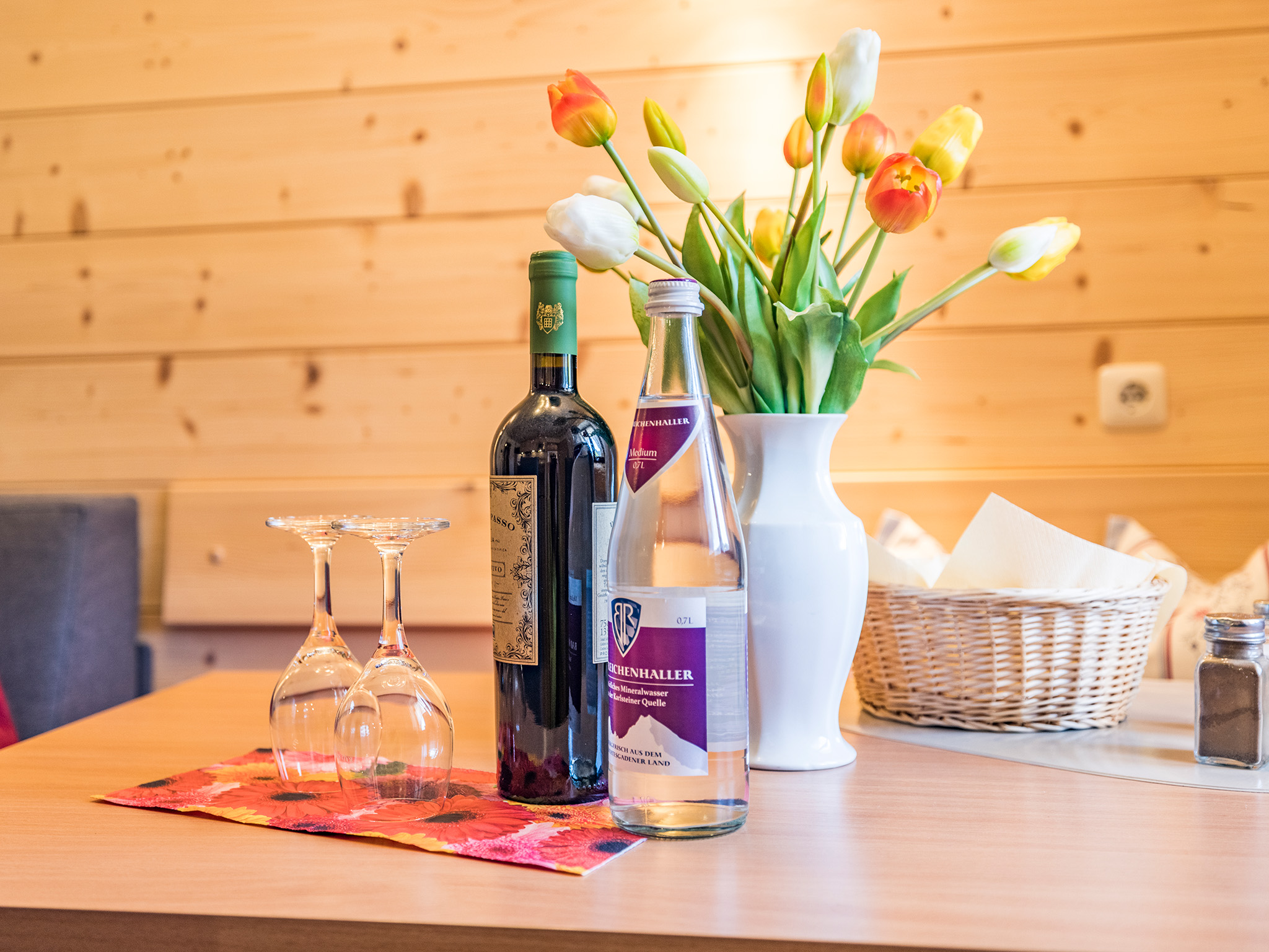 Unsere gemütlich eingerichteten Ferienwohnungen bestehen aus Schlafzimmer, Wohnküche und Dusche/WC. Sie sind alle ausgestattet mit Balkon oder Terrasse, SAT-TV und Radiowecker. Gerne können Sie unseren Brötchenservice in Anspruch nehmen. Unsere Küchen haben eine gemütliche Sitzecke und sind ausgestattet mit Kühlschrank, Kaffeemaschine, Wasserkocher, Toaster und Kochplatten. Bett- und Tischwäsche, Geschirrtücher und Handtücher werden von uns gestellt. Wlan steht im ganzen Haus zur Verfügung.