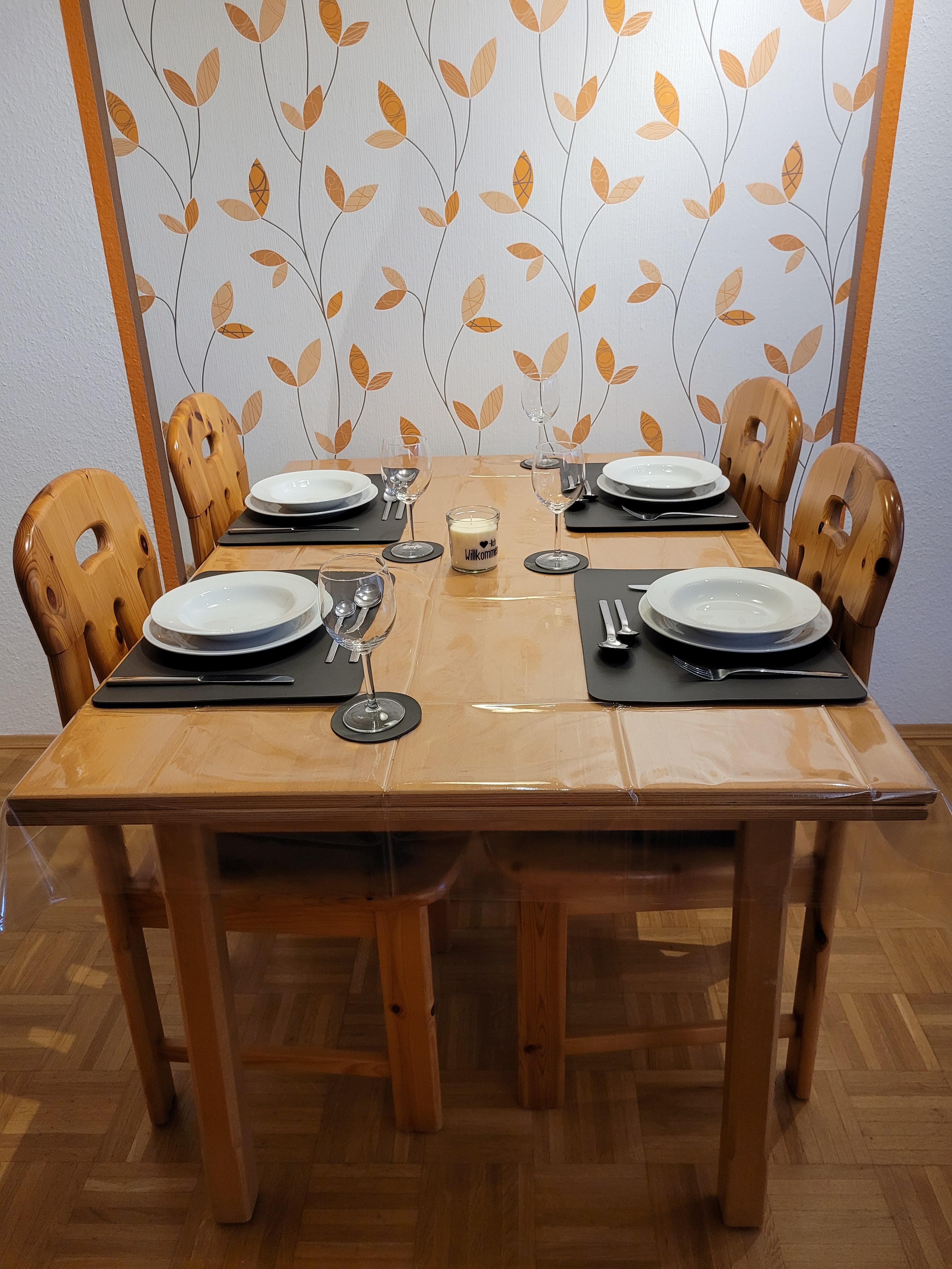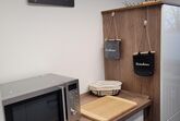 Die im Jahr 2024 erneuerte Küchenzeile ist mit einer Spülmaschine (Spülmaschinentabs werden gestellt) Ceranfeld, Backofen,Kühlschrank m. Gefrierfach, Mikrowelle, Senseo, Kaffeemaschine, Brita Wasserfilter, Toaster und Eierkocher ausgestattet.