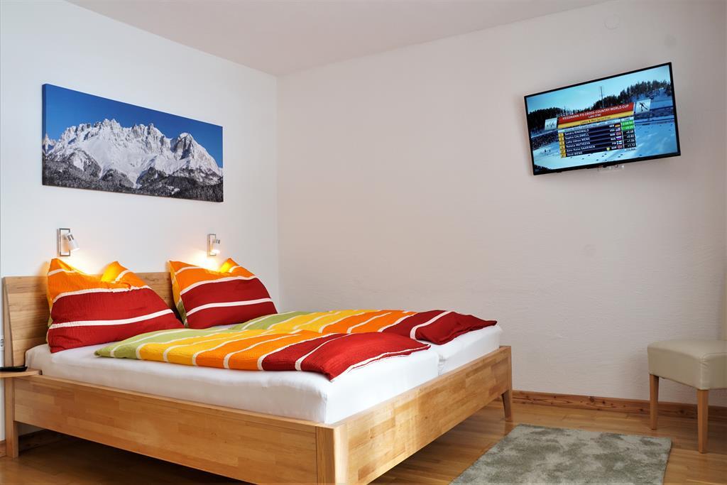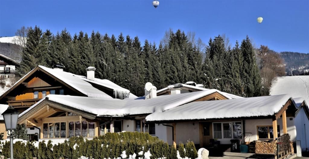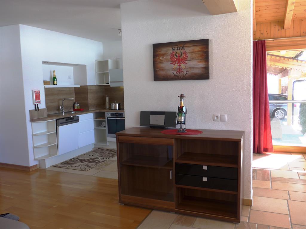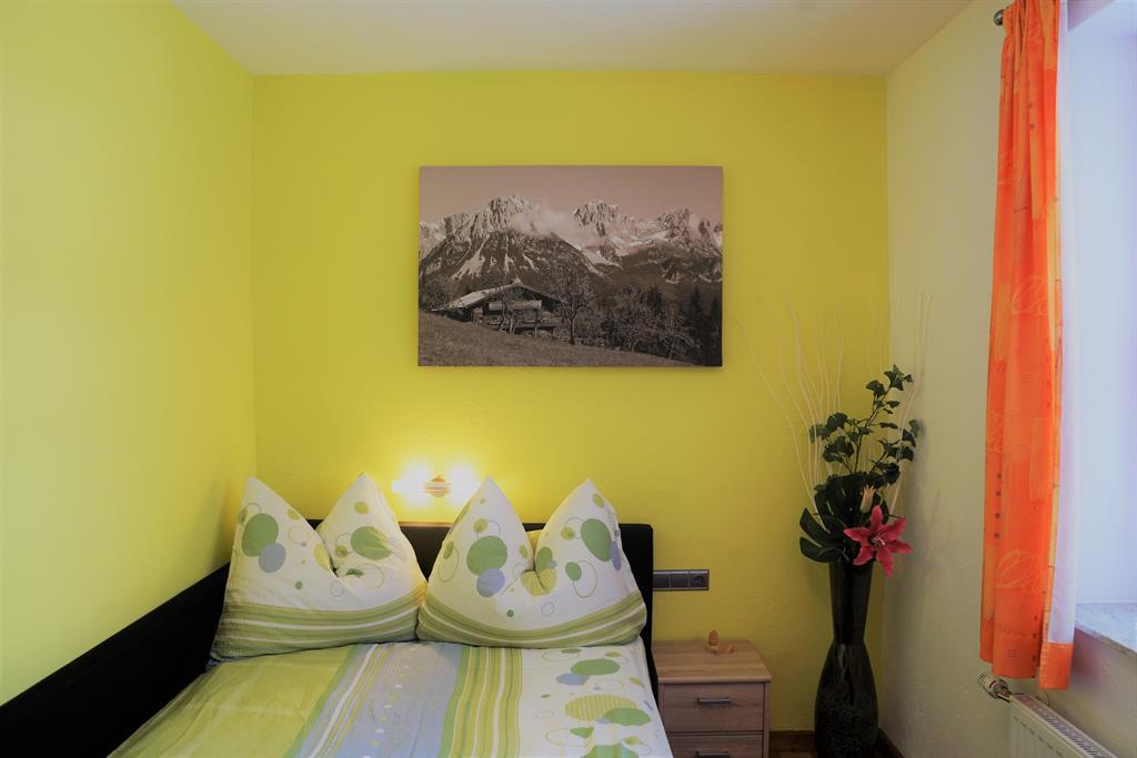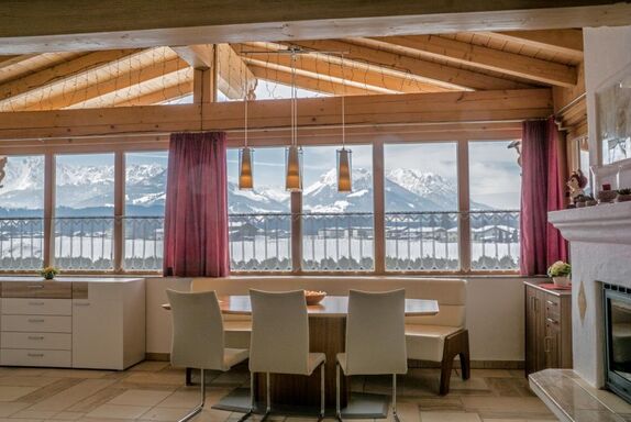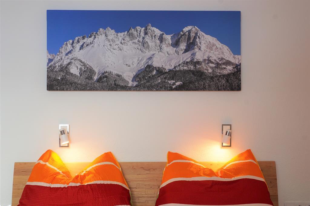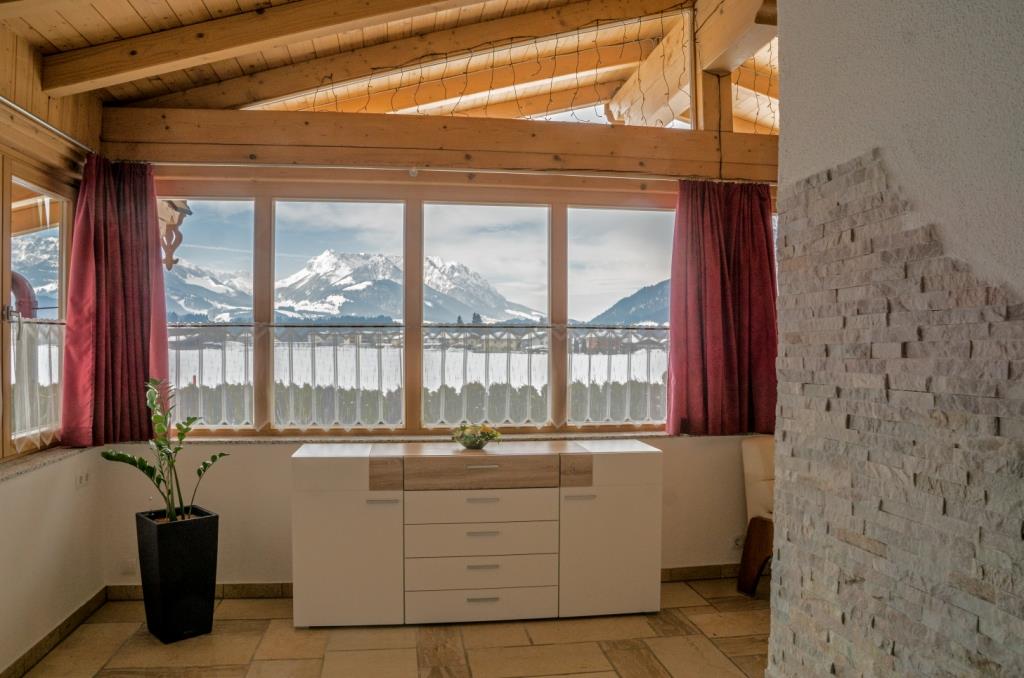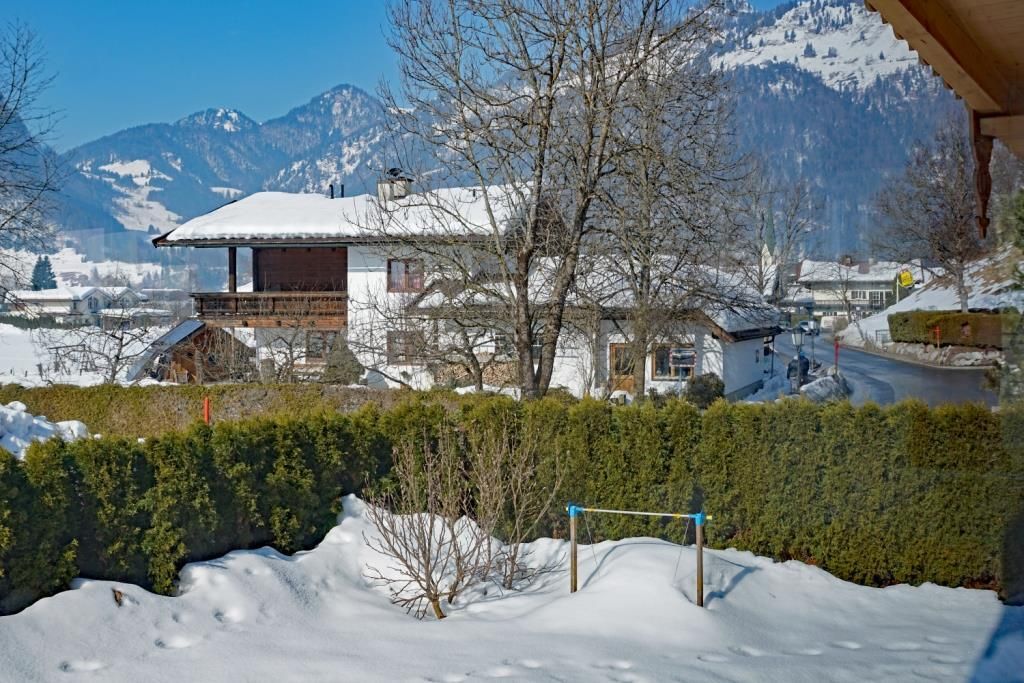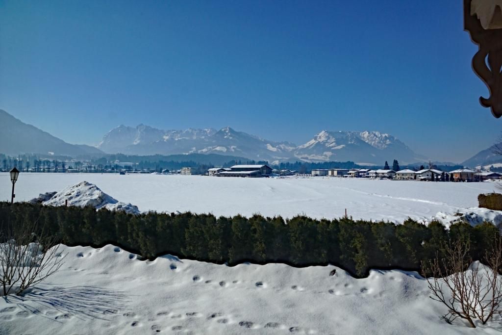 Von unserem Ferienhaus in ruhiger Lage, mit freiem Blick auf das Kaisergebirge, sind Geschäfte und Restaurants zu Fuß erreichbar.