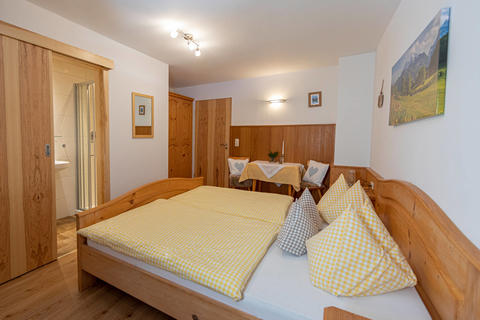 Unser Zimmer Nr.1 befindet sich im ersten Stock und verfügt über einen Balkon.Ausgestattet ist das Zimmer mit im Landhausstil geschreinerten Möbeln. Das Bad mit Dusche/WC verfügt über einen Föhn und einen Kosmetikspiegel. Zusätzlich haben Sie in unserem Zimmer kostenloses WLAN und einen Flachbild-SAT-TV. Ein Gästekühlschrank befindet sich im Erdgeschoss neben dem Frühstücks-/Aufenthaltsraum.