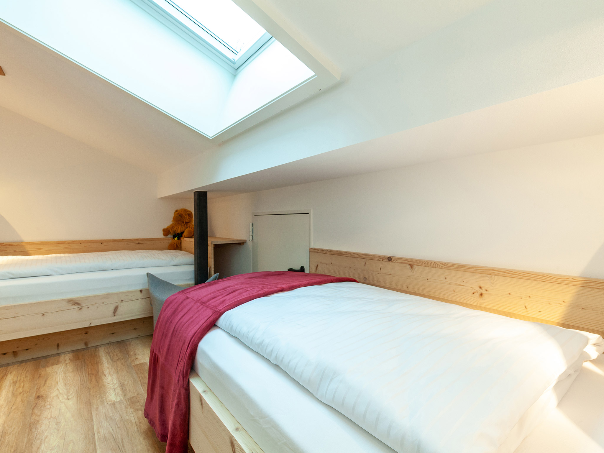 Auf satten 115 m² bietet die modern eingerichtete Ferienwohnung 3 Schlafzimmer, 2 Bäder, 1 Wohnzimmer, eine komplett ausgestattete Küche mit Essbereich sowie einen großen Balkon. Damit ist die Ferienwohnung für bis zu 6 Personen ausgelegt. Auch in dieser Ferienwohnung haben wir auf eine helle Bauweise geachtet und mit großen Glasfronten realisiert. So haben Sie vom Wohnzimmer aus einen ganz besonders schönen Blick auf die Naturlandschaft.