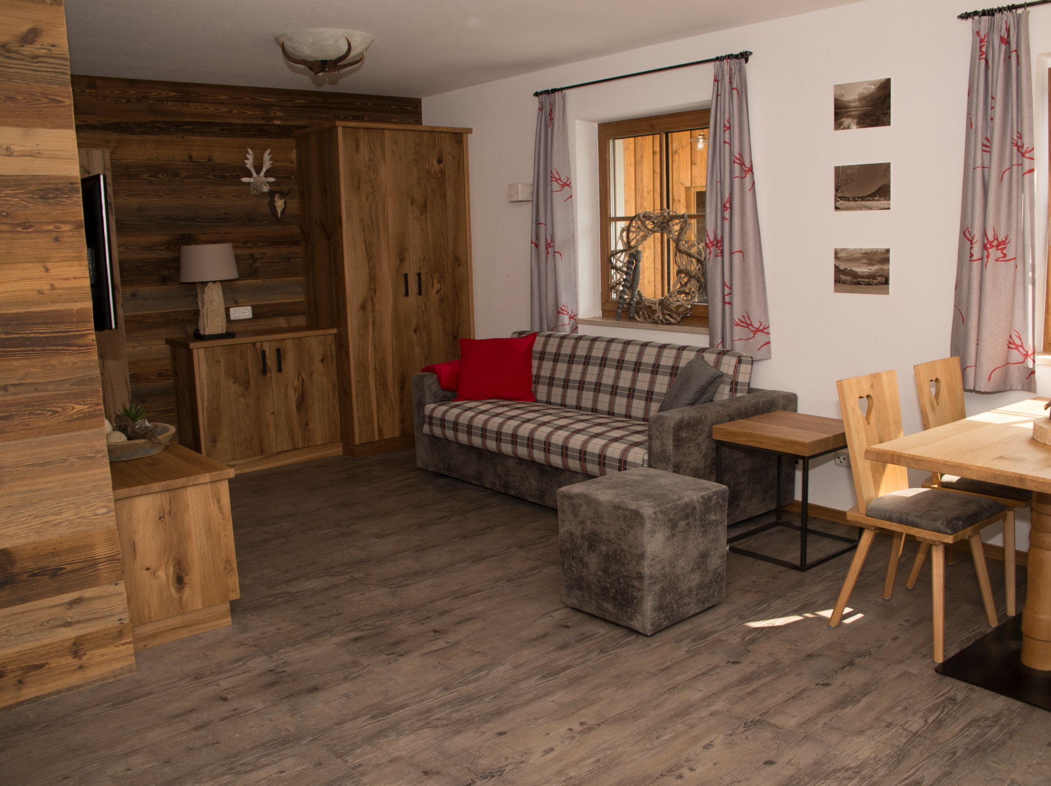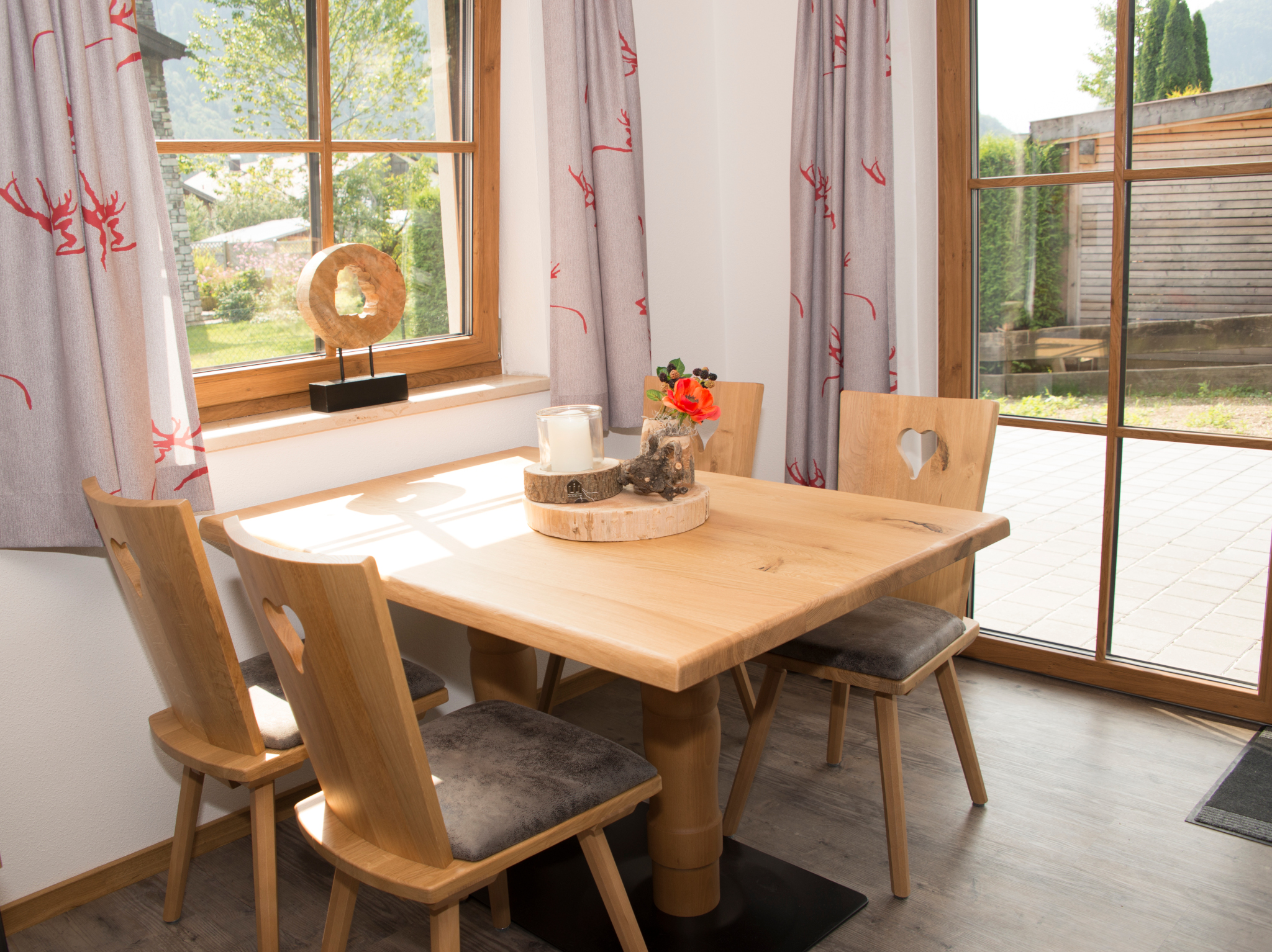 Diese 2-Personen-Ferienwohunung befindet sich im Erdgeschoss des Hauses Im Moos. Die Ferienwohnung ist mit allen Annehmlichkeiten ausgestattet. Es hat eine hochwertige Verarbeitung, und durch die Verwendung von viel Holz und Farben, eine warmen authentische Ausstrahlung. Zu diesem Apartment gehört eine geräumige und sonnige Terrasse mit einem gemütlichen Sitzbereich. Die große Picknickbank hinter dem Haus dürfen Sie ebenfalls nutzen. Das Wohnzimmer verfügt über eine Couch, einen gemütlichen Sessel und einen Hocker. Es gibt ein Smart-TV und natürlich WLAN. In der komplett ausgestatteten Küche können Sie gut frühstücken und kochen. Die Essecke besteht aus einem Tisch mit 4 Stühlen. Im Schlafzimmer finden Sie ein bezogenes Doppelbett und ausreichend Stauraum im Schrank. Im Badezimmer finden Sie ein Doppelwaschbecken und eine Dusche und liegen Handtücher pro Person bereit. Die Toilette ist separat.