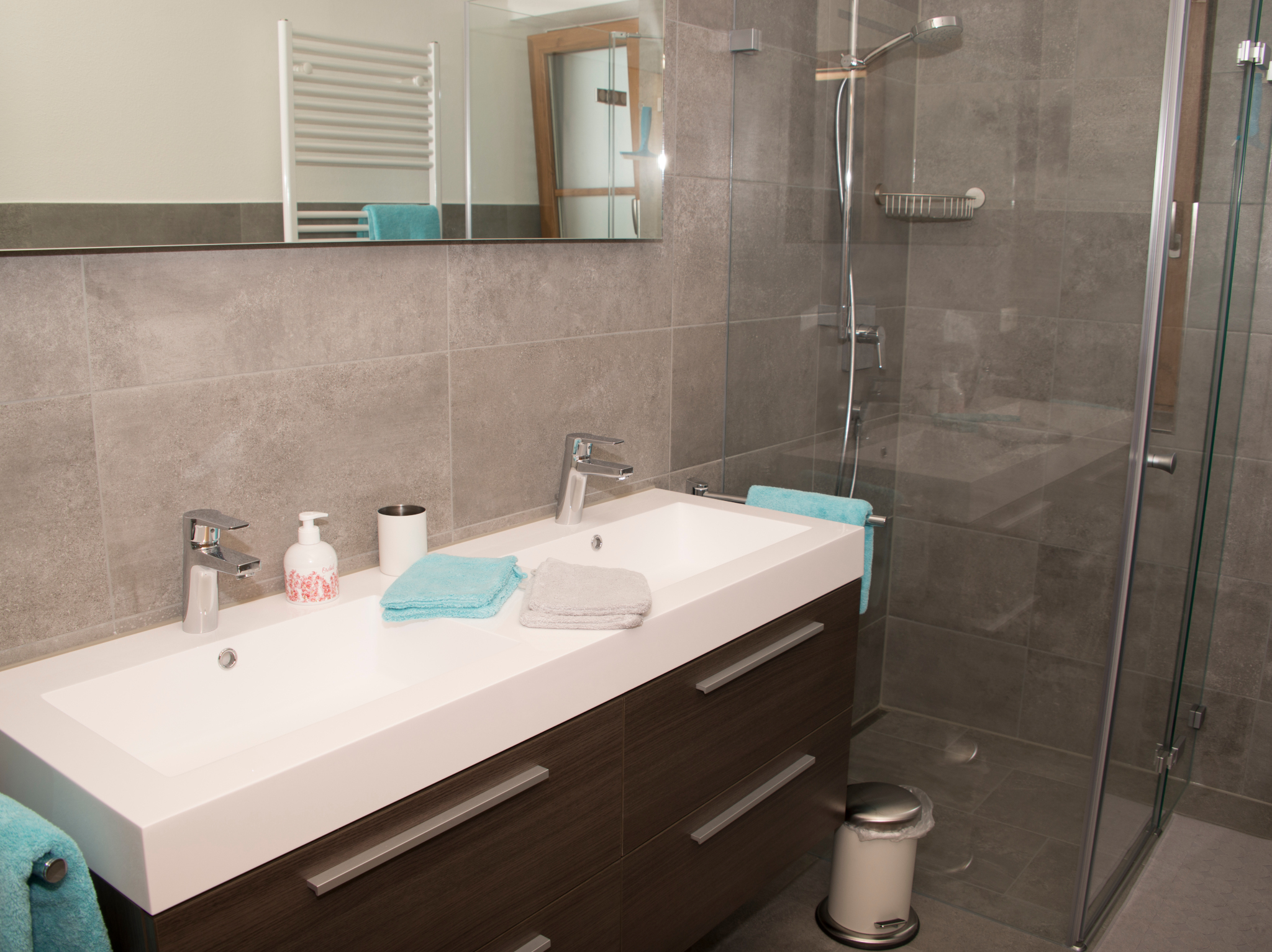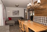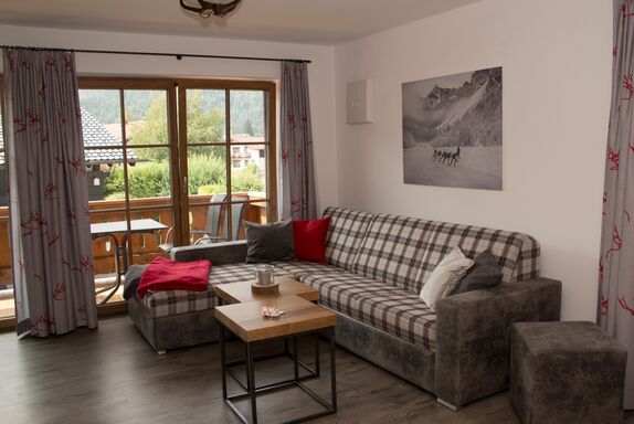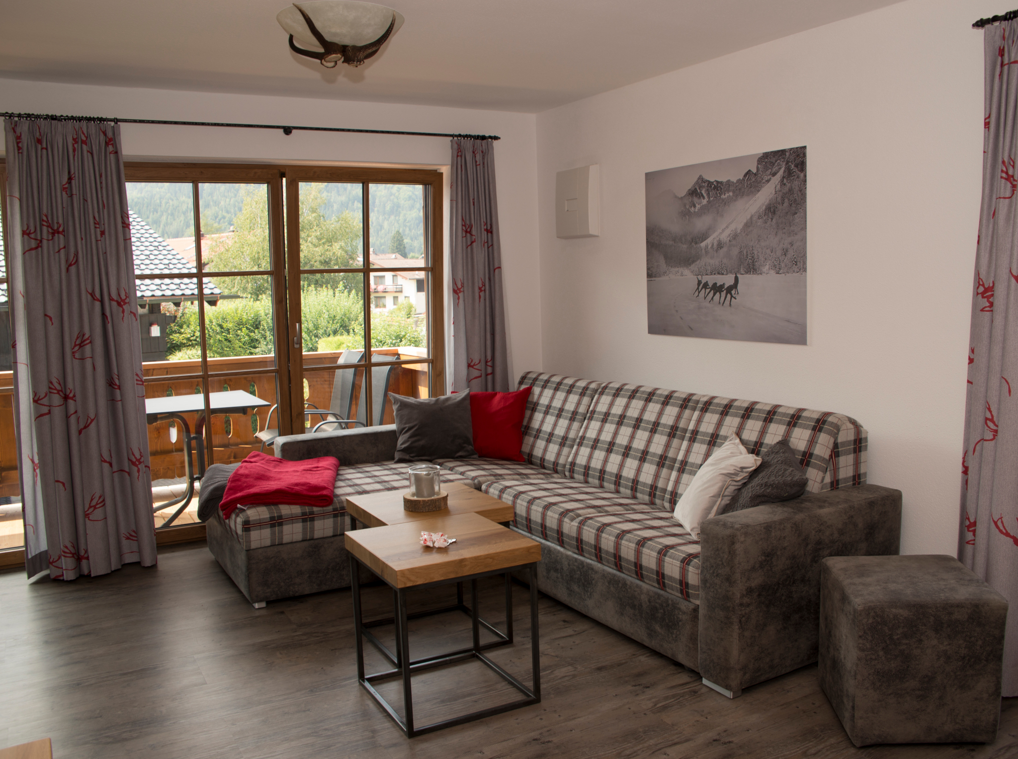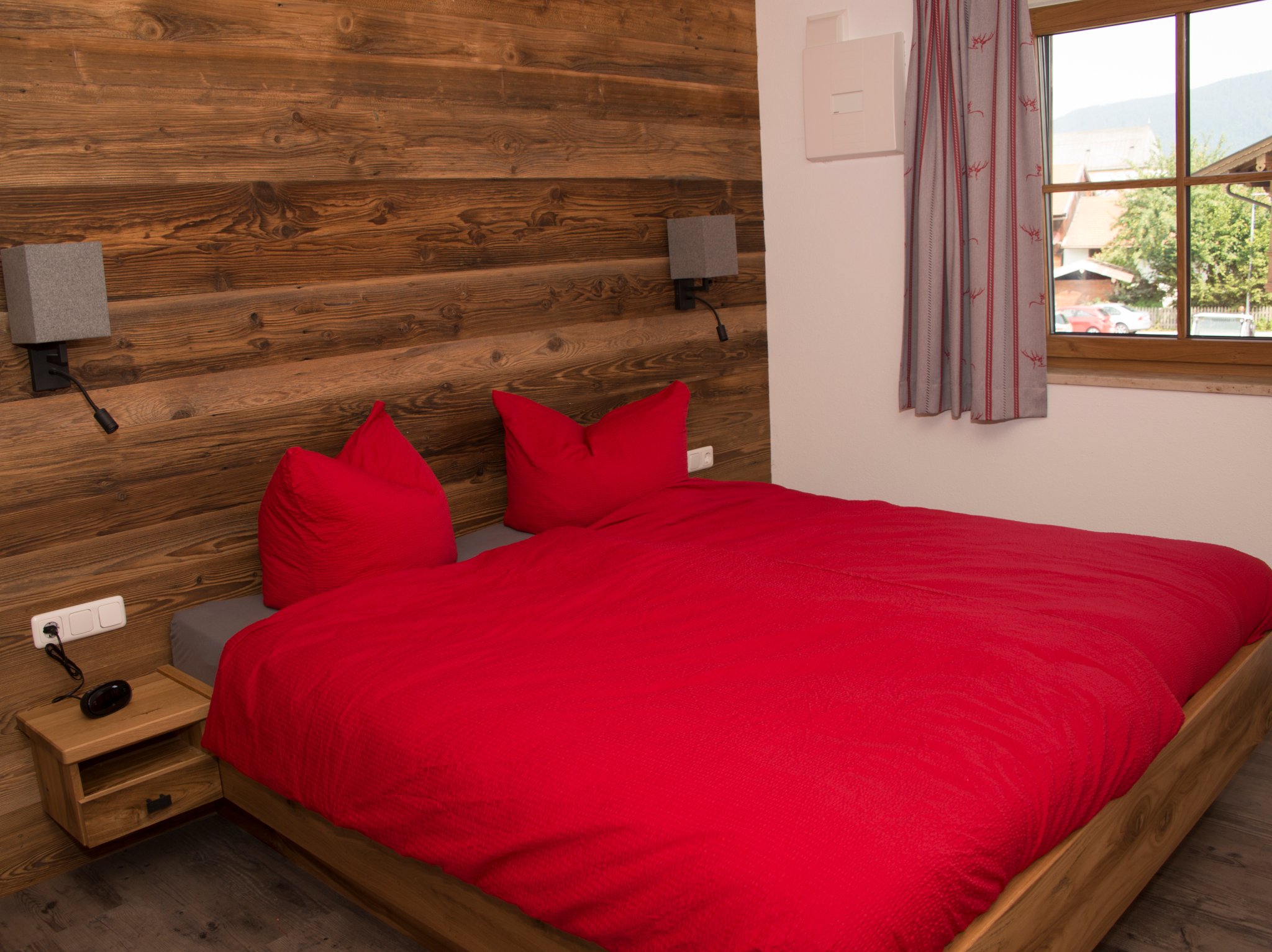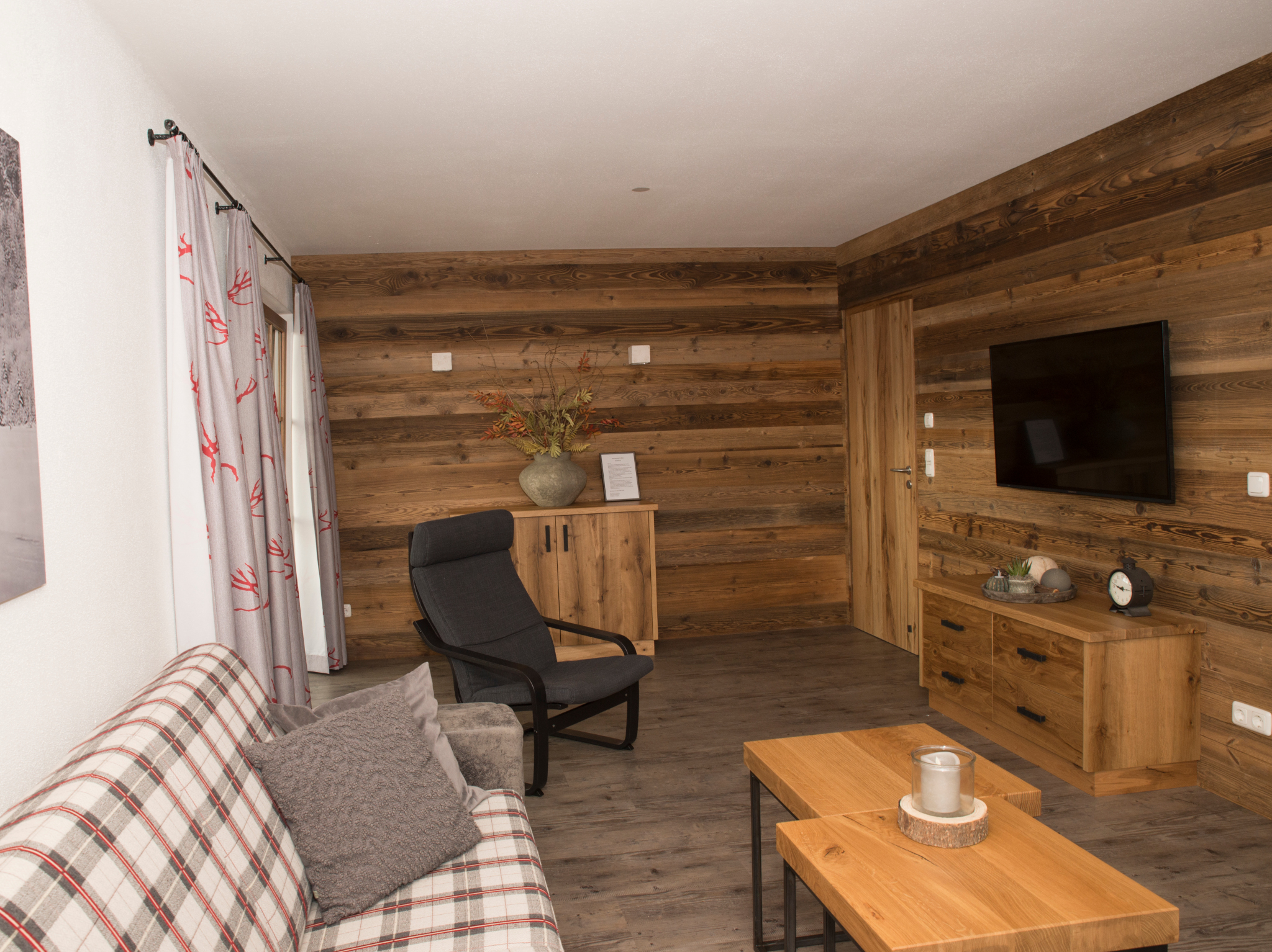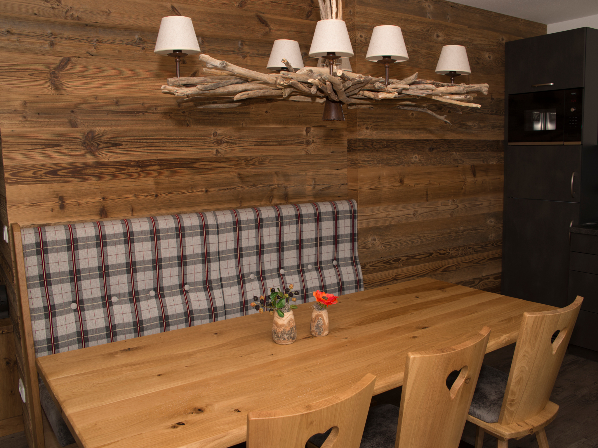 Diese schöne Ferienwohnung für 4 bis 6 Personen befindet sich im ersten Stock des Haus Im Moos. Die Ferienwohnung ist geräumig und hell und aufgrund der vielen hölzernen Akzente zugleich gemütlich und warm. Von einem der Balkone an der Seite oder vorne haben Sie einen wunderschönen Blick auf die Berge. Die große Picknickbank hinter dem Haus dürfen Sie ebenfalls nutzen. Das Wohnzimmer verfügt über eine behagliche Sitzecke mit einer 3-Personen Schlafcouch, Sessel und Hocker. Es gibt ein Smart-TV und natürlich WLAN. In der vollständig ausgestatteten offenen Küche können Sie herrlich frühstücken und kochen. Die gemütliche Essecke besteht aus einem Esstisch, drei Stühlen und einer Sitzbank für drei Personen. Es gibt zwei Schlafzimmer; das erste Schlafzimmer hat ein Doppelbett und das zweite Schlafzimmer verfügt über zwei Einzelbetten. In beiden Räumen steht ein Schrank mit Fächern und Kleiderstange. Bei Ihrer Ankunft sind die Betten schon für Sie bezogen. Im Badezimmer finden Sie eine Dusche und ein Doppelwaschbecken und liegen Handtücher per Person bereit. Es gibt eine separate Toilette.