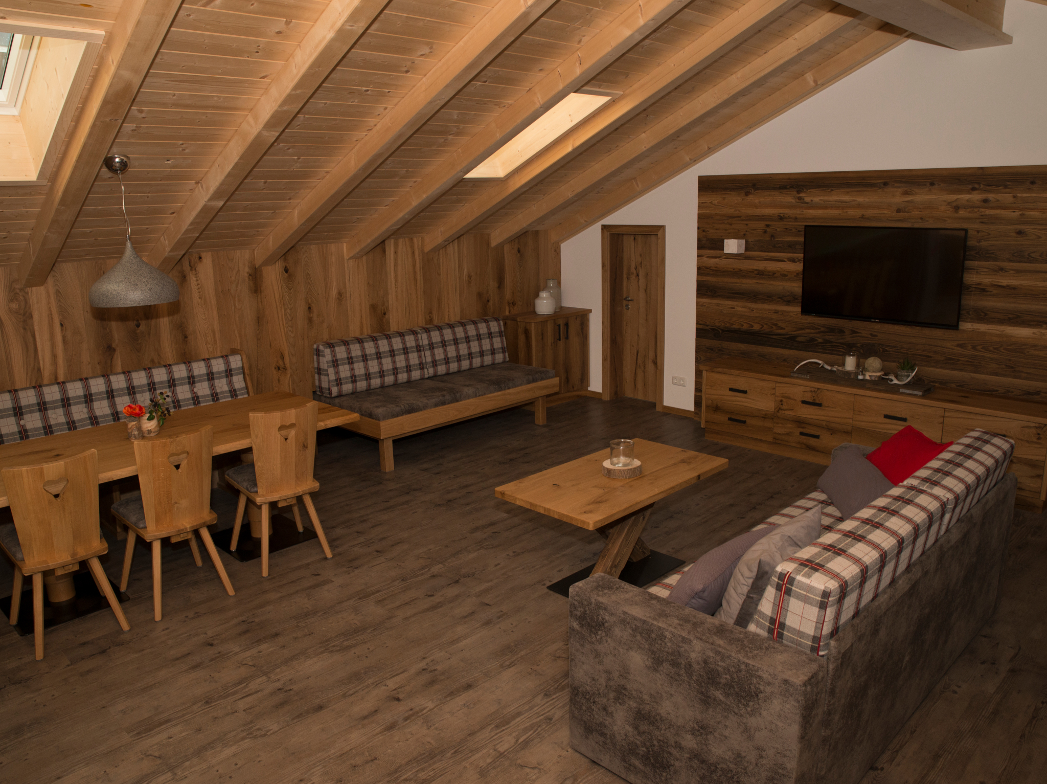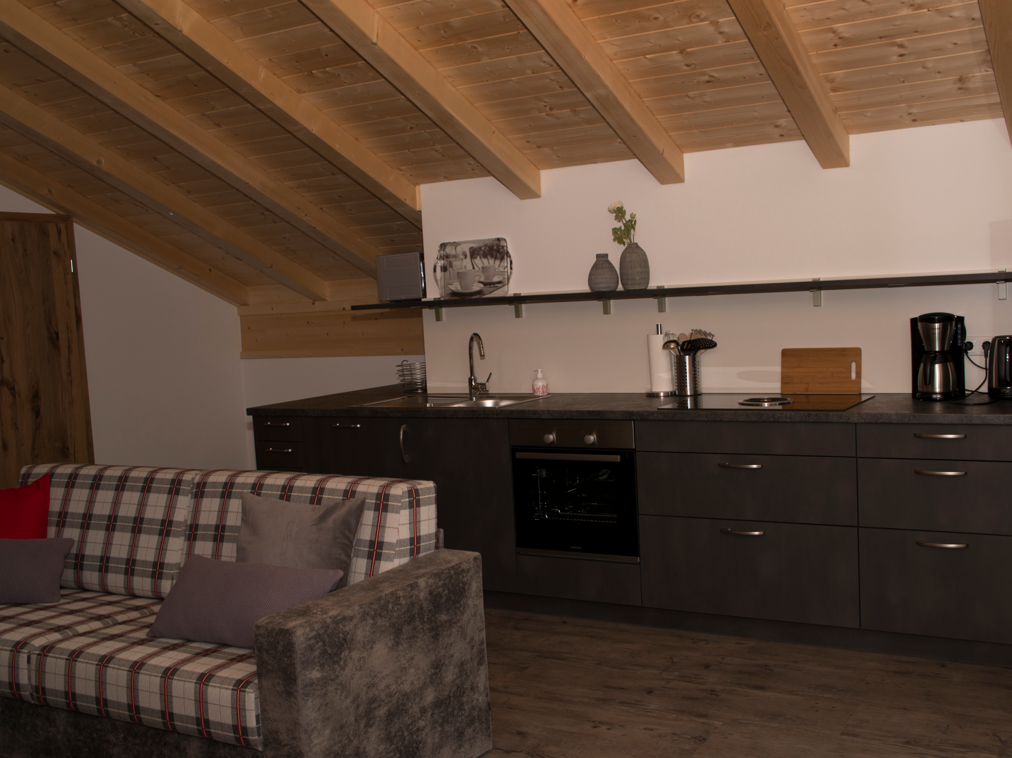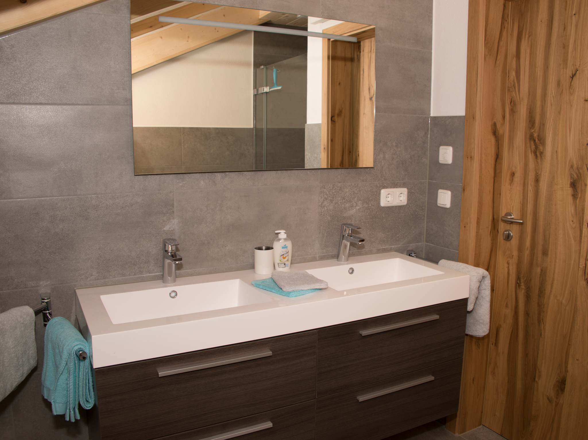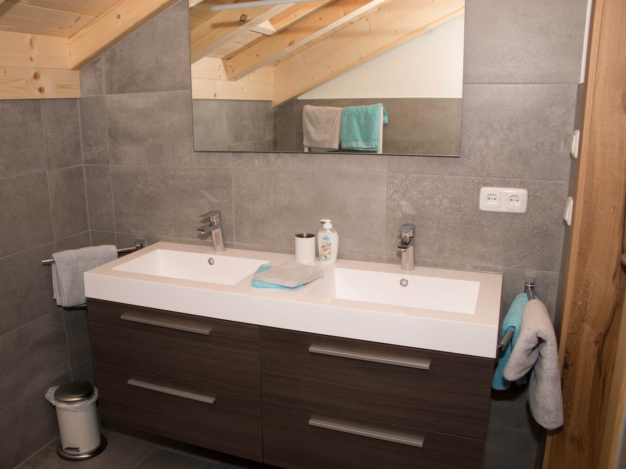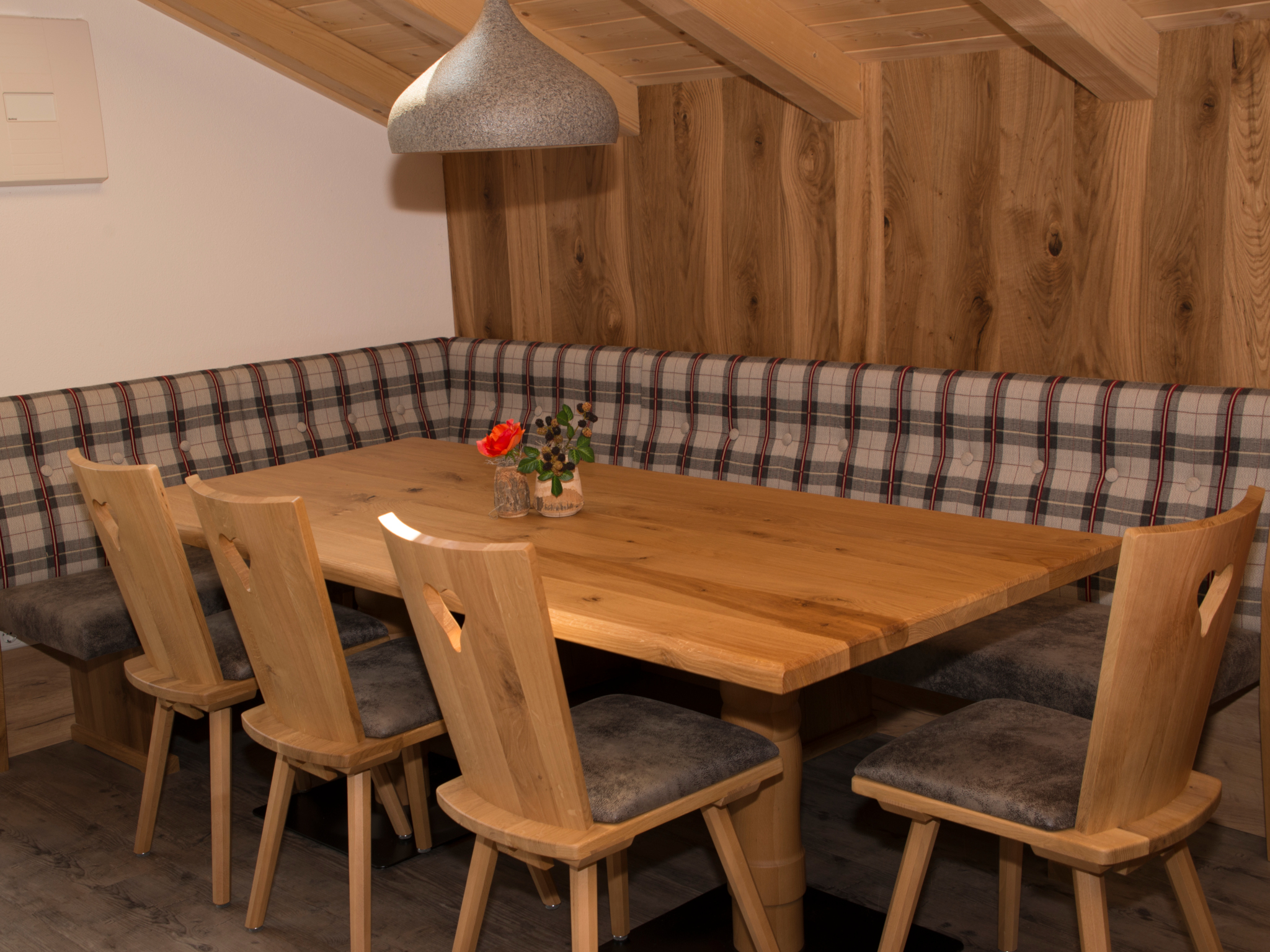 Ferienwohnung Bäckeralm ist für 4 Personen geeignet und befindet sich im zweiten Stock des Haus Im Moos. Mit einem Balkon an der Vorder- und Hinterseite des Apartments ist immer ein Plätzchen in der Sonne zu finden. Die große Picknickbank hinter dem Haus dürfen Sie ebenfalls nutzen. Diese luxuriös verarbeitete Wohnung hat eine authentische Atmosphäre durch die Verwendung von Holz und warmen Farben. Im Wohnzimmer können Sie gemütlich zusammen Sitzen auf den Sofas, Sesseln und Hockern. Es gibt ein Smart-TV und natürlich WLAN. In der vollständig ausgestatteten offenen Küche können Sie herrlich frühstücken und kochen. Die geräumige Essecke besteht aus einem Esstisch mit vier Stühlen und einer Sitzbank für vier Personen. Es gibt zwei Schlafzimmer mit jeweils einem Doppelbett, die beide bei Ihrer Ankunft schon für Sie bezogen sind. In beiden Räumen steht ein Schrank mit Regalfächern. Einen Schrank mit Kleiderstange finden Sie auf dem Flur. Im Badezimmer finden Sie eine Dusche und ein Doppel Waschbecken und liegen Handtücher per Person bereit. Es gibt eine separate Toilette.