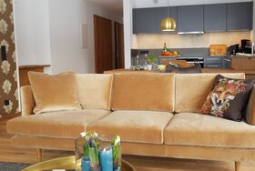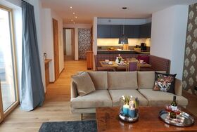 Die Ferienwohnung Kaiserblick befindet sich im Erdgeschoss und verfügt über eine Terrasse mit direktem Gartenzugang. Sie ist nach Süden und Westen ausgerichtet - mit Panoramablick auf das Kaisergebirge. Die Wohnung ist 80 qm groß, verfügt über ein Wohnzimmer mit Wohnküche und gemütlicher Eckbank sowie über zwei Schlafzimmer mit Boxspring-Betten - perfekt für 2-4 Personen. Die Wohnung ist sehr hochwertig mit Vollholzparkett, Fußbodenheizung, Markenküche mit Spülmaschine und Backofen, großzügigem Wohnzimmer, 2 großen Flachbildschirmen, High-Speed-Internet, Walk-In-Regendusche ausgestattet.