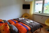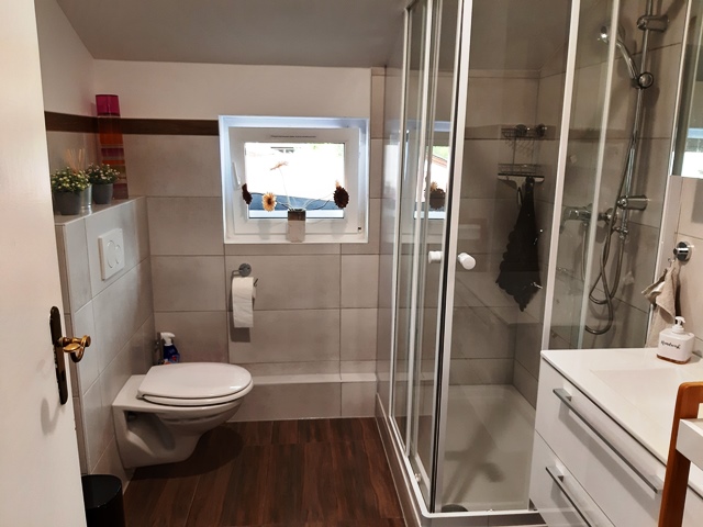 Sie betreten unser Haus über einen separaten Eingang. Im ersten Stock befinden sich insgesamt 5 Schlafzimmer. Alle Schlafzimmer verfügen über einen Kleiderschrank und einen Flachbild-TV.Unseren Gästen stehen, im abschließbaren Bereich des 1. Stockes, eine Küche, eine urige Holzstube, 1 Schlafzimmer mit Doppelbett und ein Schlafzimmer mit Einzelbett, sowie ein Bad zur Verfügung.Im nicht abschließbaren Bereich des 1. Stockes befindet sich ein Bad mit Dusche und WC sowie 2 Schlafzimmer mit Doppelbett und Zugang zum großen Balkon, sowie ein Schlafzimmer mit Einzelbett.