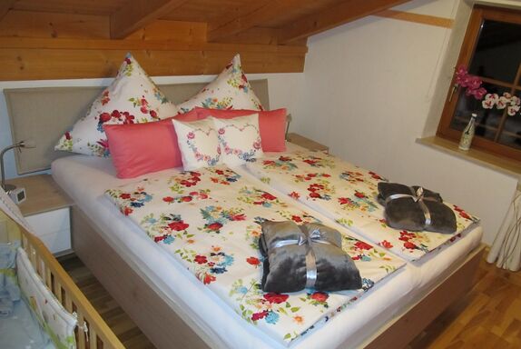 Die liebevoll eingerichtete Ferienwohnung mit 54 qm (Nutzfläche 70qm) mit gemütlichem Wohnzimmer und Ruhezone lädt zum Entspannen ein. Voll ausgestattete Küche mit Essplatz, Herd mit Ceranfeld und Backofen, Geschirrspüler sowie eine große Kühl-Gefrierkombination. Das Schlafzimmer mit erhöhtem Doppelbett und 7-Zonen Matratzen (auf Wunsch Härtegrad H2 oder H3) sorgt für eine erholsame Nacht. Ein Kinderbett ist auf Anfrage verfügbar (max. Alter 4 Jahre). Im Badezimmer befindet sich eine Badewanne mit Duschabtrennung, ein Spiegelschrank und Toilettenartikel.Haustiere sind nicht erlaubt!