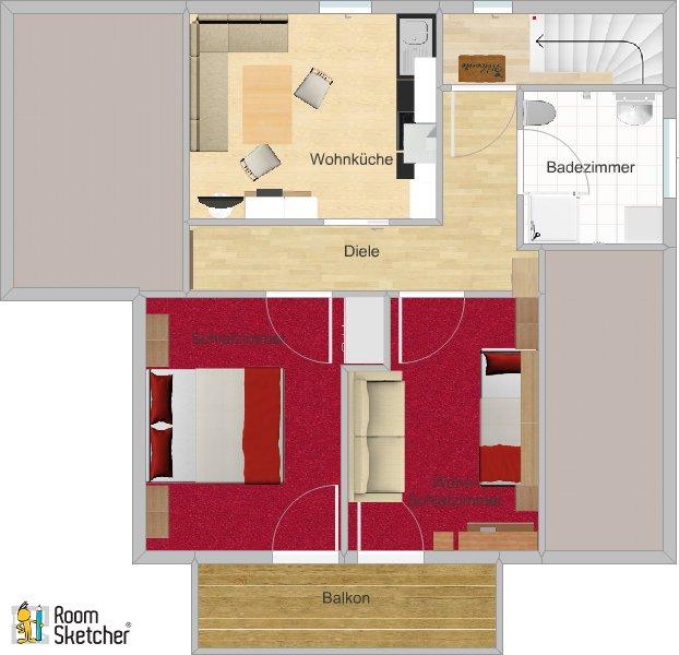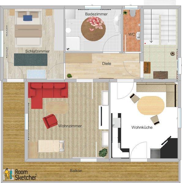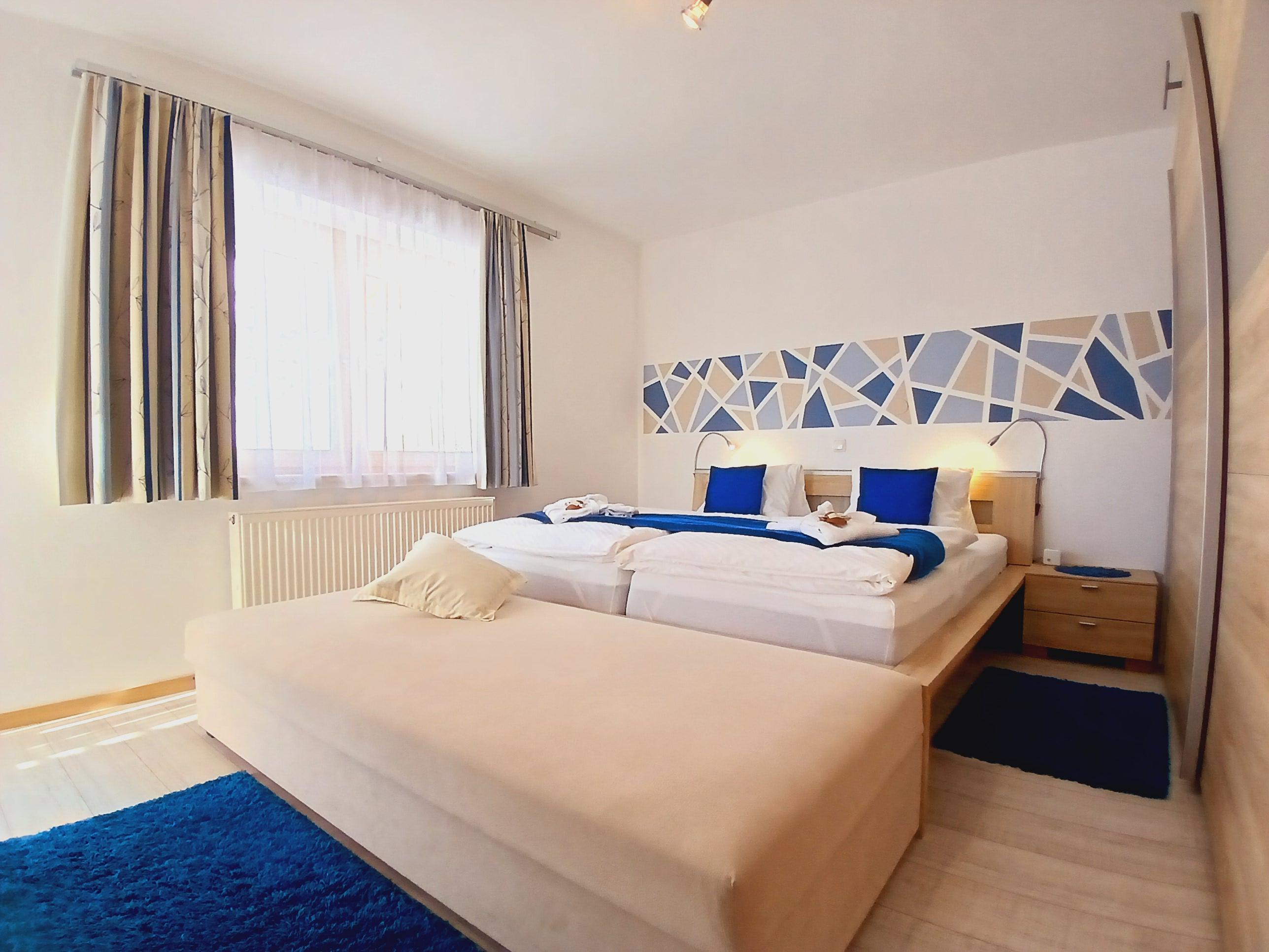 großzügiges Appartement im 1. OG mit Süd-Balkon, 1 Schlafzimmer, 1 Wohn-Schlafzimmer mit SAT-TV, Radio,Safe, komplett ausgestattete Wohnküche mit Geschirrspüler, Mikrowelle, uvm. Elektroherd mit Backrohr, Kühl- und Gefrierschrank, Essecke, 2 SAT-TV, Dusche/WC, Fön, Waschmaschine mit Trockner