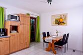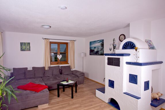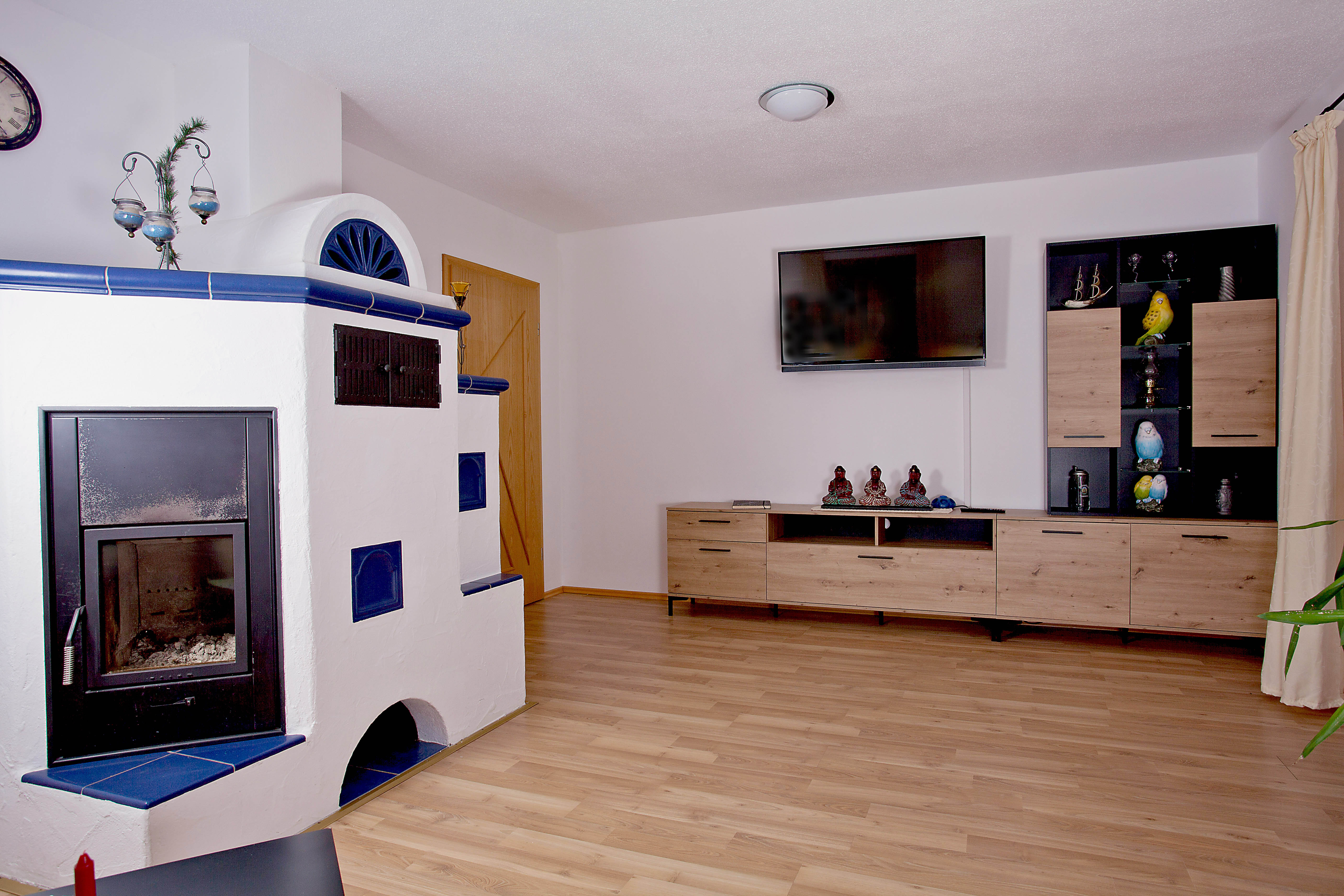 Die Wohnung besitzt eine voll ausgestattete Küche mit Essbereich. Ein Wohnzimmer mit Kachelofen,