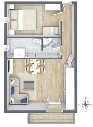 Ausrichtung nach Süden und Osten. Vom eigenem Balkon aus, der sich über die gesamte Wohnung erstreckt genießen Sie die Morgen- ,Mittag- und Nachmittagssonne. Das luxuriöse Badezimmer mit Außenfenster verfügt über ein Bidet. In der voll eingerichteten Küche mit Mikrowelle und Geschirrspüler, lassen sich leckere Mahlzeiten zubereiten. Im Wohnzimmer erwartet Sie eine gemütliche Couch, Flat-TV und Telefon. Im separaten Schlafzimmer befindet sich ebenfalls ein TV Gerät.