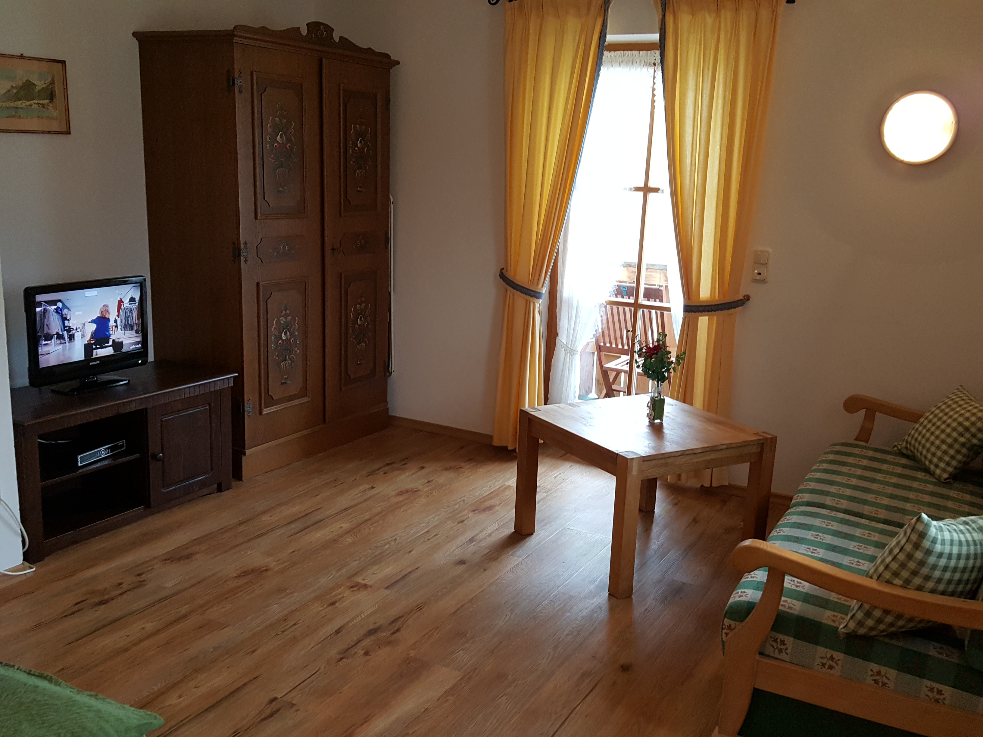 Die Ferienwohnung Hochkalter liegt im Obergeschoss unseres Hauses, ist ca. 36 qm groß und bietet Platz für 2 Personen. Sie ist ausgestattet mit einem kombinierten Wohn- Schlafraum mit Doppelbett und Sitzgruppe, einer Küche mit Backofen, Geschirrspüler, Kaffeemaschine, Wasserkocher, Kühlschrank mit Tiefkühlfach, Bad mit Dusche/WC sowie einem möblierten Balkon. Unseren Gästen stellen wir kostenloses WLAN zur Verfügung.