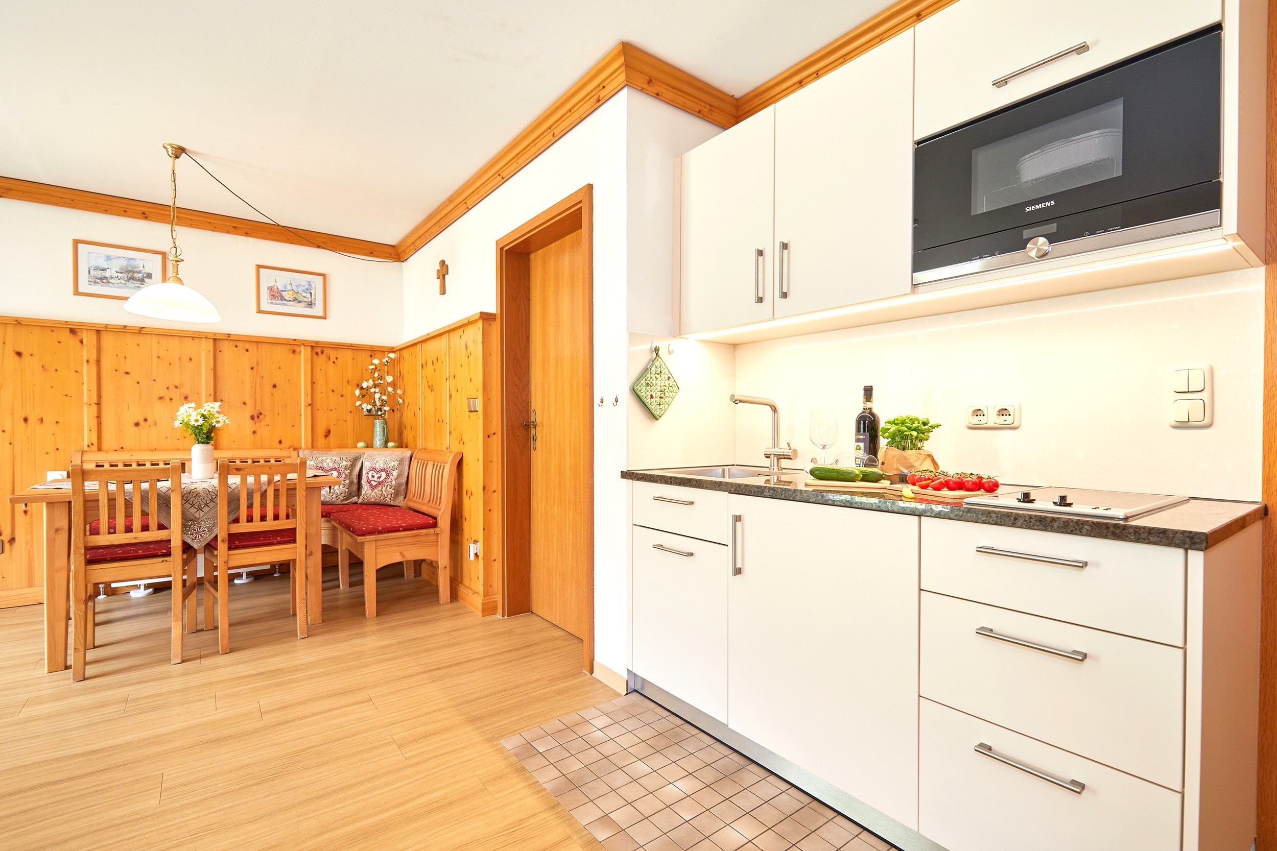 In bester Lage von Reit im Winkl! In absolut ruhiger Lage im Haus am Kirchplatz. Das Haus liegt zurückgesetzt am Hausbachweg, einer Seitenstraße im Zentrum von Reit im Winkl, die ohnehin kaum befahren ist. Bis zum zentralen Rathausplatz sind es nur 120 Meter oder zwei Gehminuten. Hier finden Sie alle Annehmlichkeiten Ihrer Wahl: Apotheke, Ärztezentrum, Bäcker, Metzger, Supermarkt, Restaurants. Zahlreiche Mode- und Sportgeschäfte sowie Geschäfte mit lokalem Kunsthandwerk laden zum Bummeln ein. Die zentrale Bushaltestelle inkl. Skibus zum Skigebiet Winklmoos/ Steinplatte befindet sich ebenfalls dort. Das Langlaufloipennetz ist in weniger als fünf Gehminuten zu erreichen. Durch die Lage ist die Wohnung ein idealer Ausgangspunkt für viele Wanderungen, z.B. zu den ausgezeichneten Premiumwanderwegen. Die Wohnung Sophia ist komfortabel und hochwertig im Landhausstil eingerichtet. Sie verfügt über eine moderne Küchenzeile, unter anderem gibt es auch eine Kaffeemaschine und einen Wasserkocher.