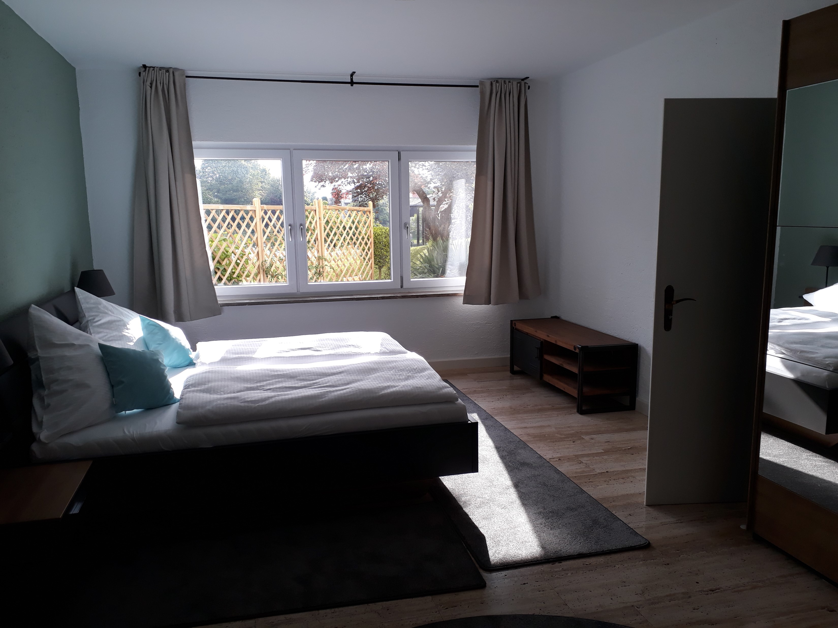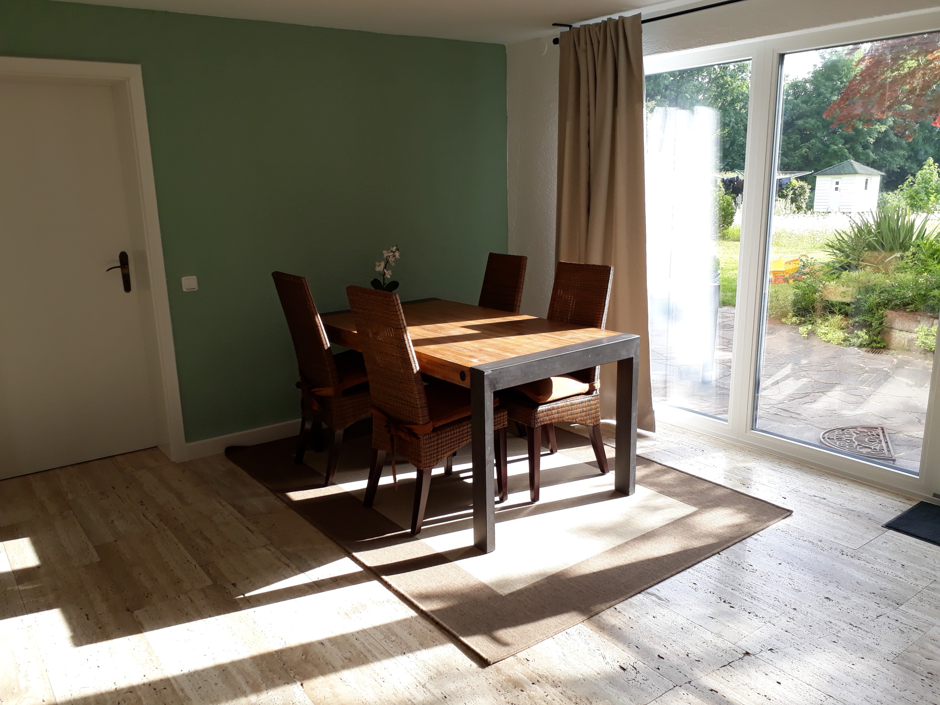 Juni 2019 neu eingerichtete Ferienwohnung 60qm mit moderner Ausstattung, separater Eingang über Außentreppe, gemütliche sonnige Terrasse mit Tisch/Stühlen, Großzügiges und helles Schlafzimmer, Wohnzimmer mit Esstisch, TV und Ausziehcouch, Küche ausgestattet mit Geschirrspüler, Backofen, Kaffeemaschine und 4 Platten Herd, Bad mit Badewanne/Dusche/WC, Handtücher und Bettwäsche inkl., Besonderheiten: W-LAN, elektrische Rolladen, Insektenschutz Tür/Fenster, Nichtraucherwohnung, Zustellbett für Kinder bis 3 Jahren kann gestellt werden.