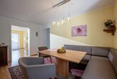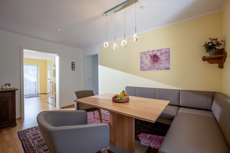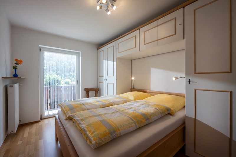 Die Wohnung verfügt über eine separate Essecke, eine voll ausgestattete Küche (Backofen mit Ceranfeld, Mikrowelle mit Grill, Kühlschrank mit Gefrierfach, Kaffee- und Espressomaschine, Toaster), im großen Wohnzimmer mit Panoramafenster befindet sich eine Sitzgruppe, ein Flachbildfernseher, eine Stereoanlage und eine Kinderspielecke. Von diesem Zimmer aus hat man den direkten Zugang zum großen Südbalkon mit Gartenmöbeln. In 2 Doppelzimmern mit je 1 Doppelbett, sowie einen Einzelzimmer können maximal 5 Personen untergebracht werden. Das Bad mit WC ist mit einer Badewanne und einer ebenerdigen Dusche ausgestattet. Den Gästen steht ein zusätzliches WC zur Verfügung.