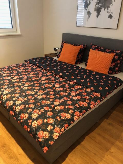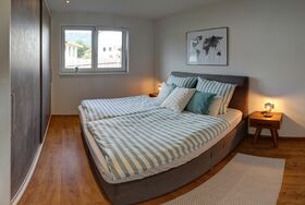 Ferienwohnung Chiemsee, 75m², für 2 bis 5 Personen, ein Schlafzimmer mit Boxspringbett und ein Schlafzimmer mit Stockbett für 1-3 Personen. Großer Wohn- Essbereich mit offener voll ausgestatteter Küche, Geschirrspüler, Heißluftbackofen, Kaffeemaschine, Toaster, Wasserkocher, Kabel- TV, Wlan, Bad mit Dusche, WC, Waschtrockner. Die Wohnung verfügt über einen sehr großen Balkon und eine Terrasse, die zum Erholen und Entspannen einladen.Im Wohnbereich befindet sich eine komfortable Schlafcouch für zwei Personen.