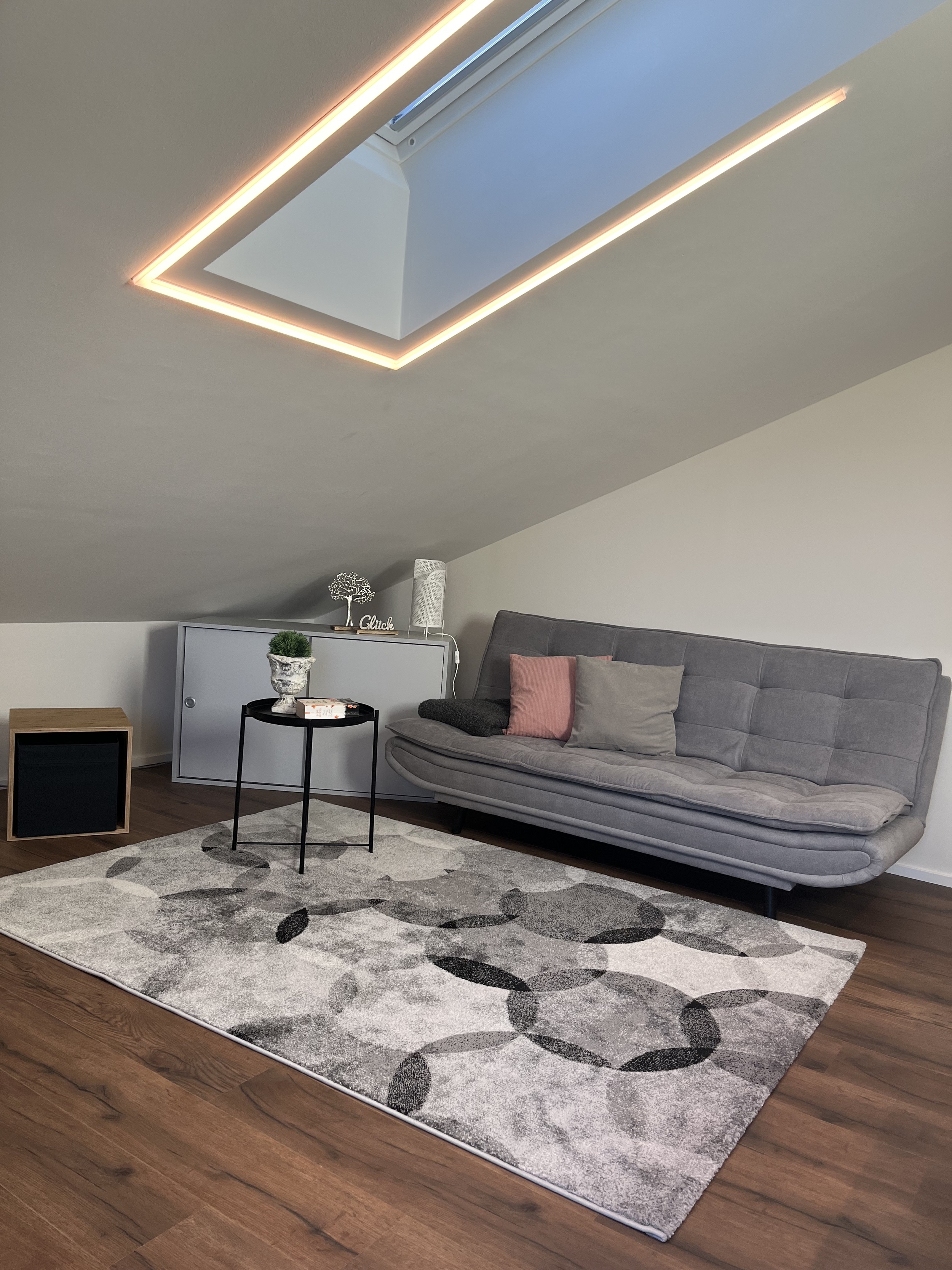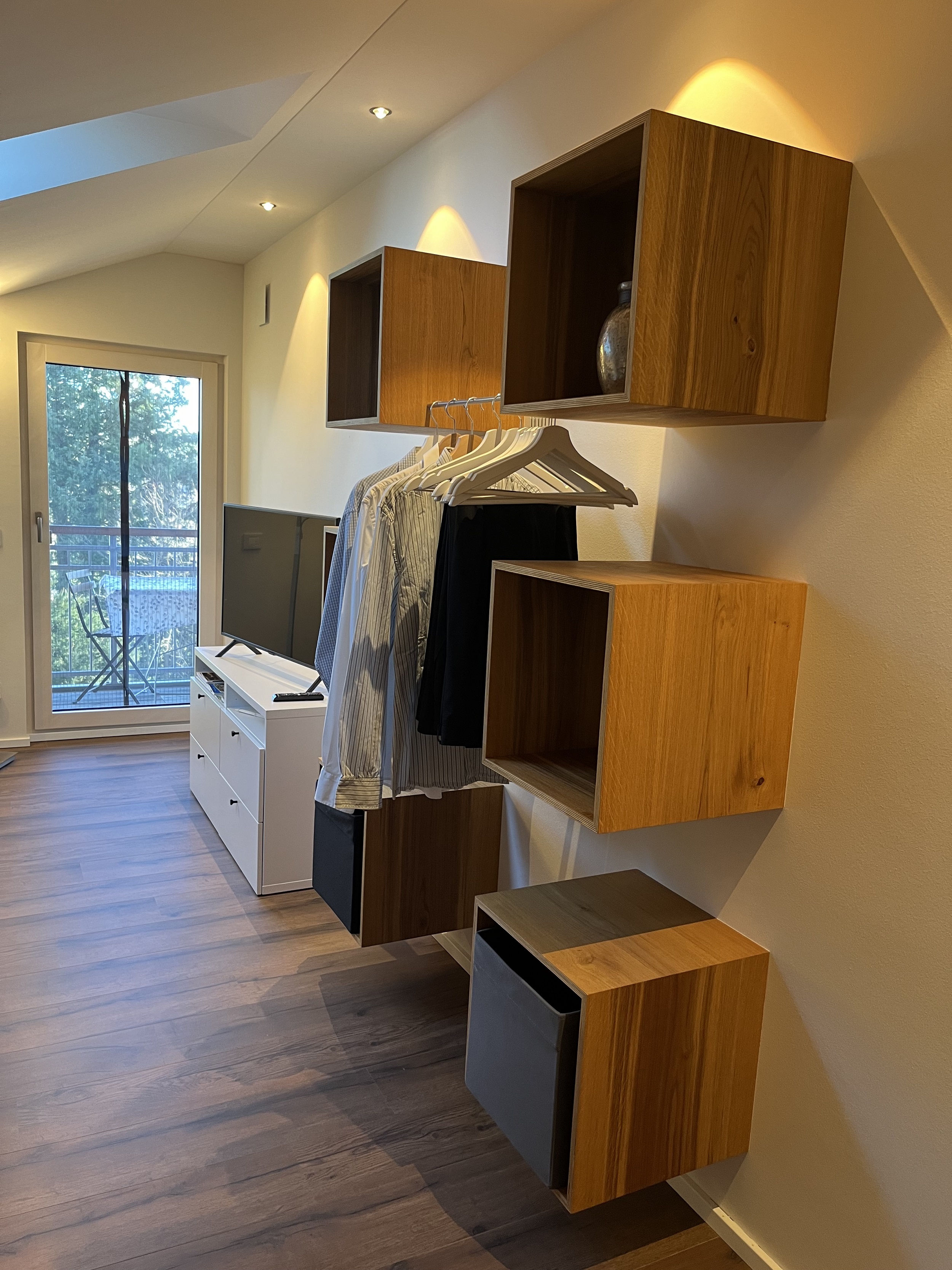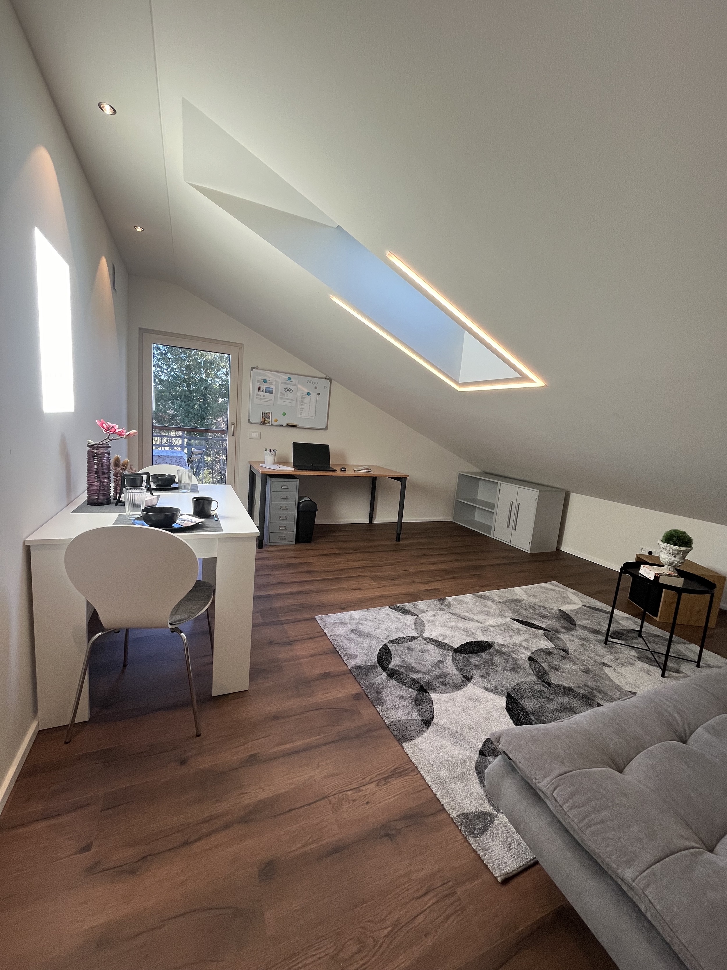 Das Apartement im Dachgeschoss besticht mit einem atemberaubenden Blick über den Waginger- und Tachinger See und über die Chiemgauer Alpen. Das Doppelbett mit Komfortmatratze lädt zum Träumen ein, der offene Kleiderschrank bietet viel Stauraum. Ein Highlight stellt das modern gestaltete Badezimmer mit großer Walk-in-Dusche, Waschtisch und WC dar. Die neue und moderne Küche ist mit einem großen Kühlschrank mit separaten Eisfach, einem Backofen und einem großen Kochfeld ausgestattet. Der Stellplatz für ihren PKW ist inbegriffen, eine E-Ladesäule mit Stecker Typ 2 ist vorhanden. Das Apartement besteht aus Schlafzimmer mit Sitzecke und TV, einem Wohn-/Esszimmer mit einer Schlafcouch und Schreibtisch, einer großen Küche im Gang und einem großen Badezimmer mit Walk-In-Dusche und WC. Auf dem Balkon an der OStseite haben Sie einen traumhaften Blick über den Tachinger- und Waginger See und die bayerischen und österreichischen Alpen.