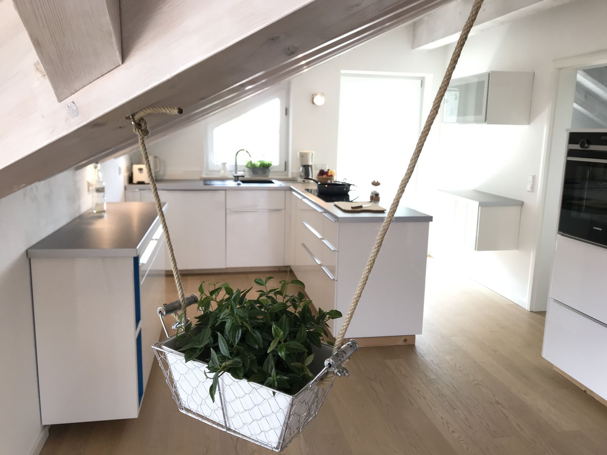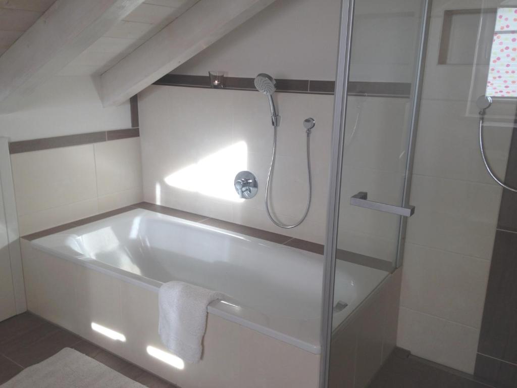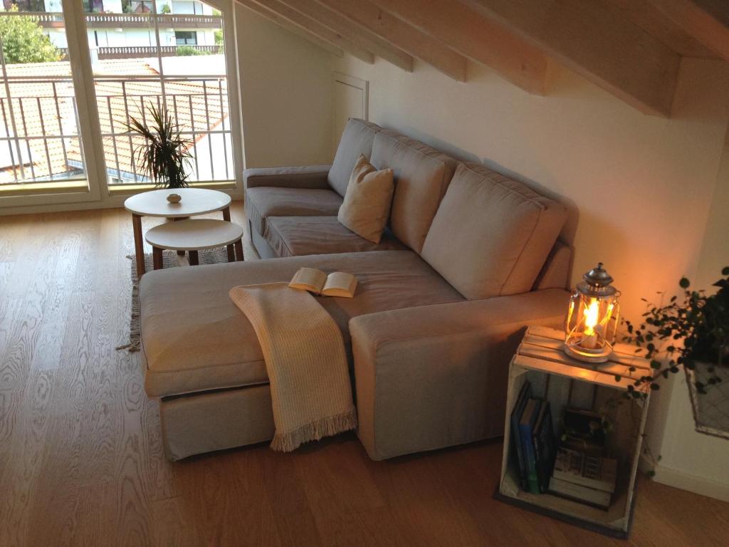 Unsere charmante Ferienwohnung befindet sich in ruhiger Lage am Ortsrand von Grassau in unmittelbarer Nähe zum Golfplatz.Die hell gehaltene Wohnung umfasst das gesamte Dachgeschoß und wurde liebevoll in modern-ländlichem Stil eingerichtet. Eine vollausgestattete Küche gehört ebenso zur Wohnung wie das Bad mit Dusche und Badewanne sowie das Schlafzimmer mit seinem gemütlichen 2m breiten Doppelbett. Dank des offen gestalteten Koch-Wohn-Essbereichs lässt sich das Bergpanorama der Chiemgauer Alpen am Frühstückstisch genauso wie zum Tagesausklang am großzügigen Westbalkon genießr Sichtdachstuhl und der Eichenholzboden (mit Bodenheizung) runden das behagliche Wohnambiente ab und sollten Ihnen ein Maximum an Urlaubserholung im Grünen ermöglichen.