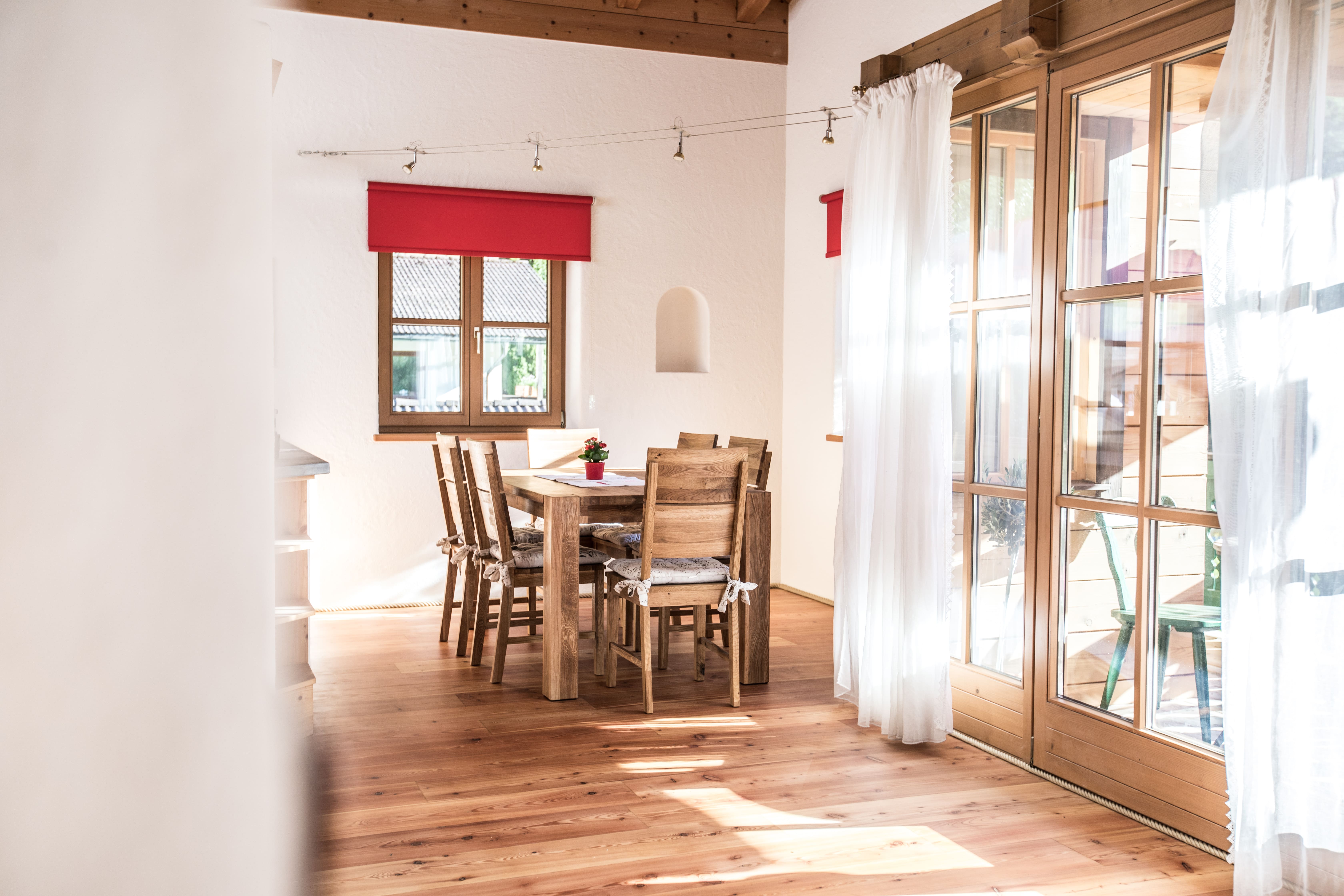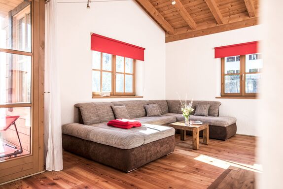 Das Berg - Loft Ramsau: Komfort für Ihren Urlaub im Berg - Loft für 1 - 6 Personen. Das „Berg - Loft“ ist eine Komfort-Ferienwohnung im 1. Stock und bietet mit 2-3 Schlafzimmern und einer Größe von 130-170 qm viel Platz für bis zu 6 Personen. Die Ferienwohnung für bis zu 6 Personen ist aufgeteilt in: • Wohnbereich mit großer Wohnlandschaft, Couchtisch, TV mit Radio, Bluetooth Lautsprecher, W-LAN Internetzugang • Holz beheizter Kachelofen mit kleiner Ofenbank und Lesetisch • Balkon mit Freisitz und Abendsonne (Bergblick) • Essbereich mit großem Esstisch und 6 Stühlen • Küchenbereich, Küche komplett ausgestattet mit 4-Platten-Kochfeld, Backrohr, Dunstabzug, Mikrowelle, Spülmaschine, Kühlschrank mit Gefrierfach, Filterkaffeemaschine, Espressokocher, Kapselmaschine, Milchschäumer, Toaster, Wasserkocher • 3 Schlafzimmer mit je einem Doppelbett (180x200) komplett ausgestattet inkl. Bettwäsche, einmal mit Balkon (Ostseite mit Morgensonne). • Bad mit Waschbecken, Bad Schrank, Dusche, WC, Fön, Handtücher • Großer Abstell- und Trockenraum mit Waschmaschine • Gästeparkplatz • Liegewiese. Für Ihre Wertsachen ist ein Zimmersafe vorhanden. Haustiere können nicht mitgebracht werden. Nichtraucherwohnung.