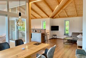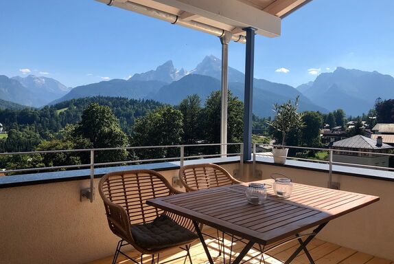 Die Wohnungen sind ca. 100qm groß und für bis zu 4 Personen ausgelegt. Erdgeschoss: Ein Schlafzimmer hat ein großes Boxspring-Doppelbett (2x2m). Im zweiten Schlafzimmer gleicher Größe stehen zwei Boxspring-Einzelbetten und ein Schreibtisch. Im oberen Stockwerk ist der sehr geräumige Wohn- und Essbereich, die offene Küche und die Süd-Loggia. Obwohl das Haus an einem steilen Hang steht ist die Zuwegung vom Parkplatz zur Wohnungshaustüre stufenlos und ohne Steigung. Innerhalb der Wohnung verbindet eine Treppe die beiden Stockwerke. Von allen Zimmern haben Sie einen traumhaften Bergblick. Im ersten Stock naturgemäß noch etwas erhabener als im Erdgeschoss. Das Haus (Erstbezug August 2019) liegt ruhig am Ende einer Sackgasse, aber dennoch zentral in Berchtesgaden. Der Soleleitungsweg, einen ebener Fußweg/Wanderweg über den früher die Sole vom Salzbergwerk zur Saline nach Bad Reichenhall geleitet wurde, führt direkt am Haus vorbei durch den Wald und über Holzstege am Fels. Bergab sind es ins Zentrum zu Fuß nur 5-10 Minuten. Hier finden Sie mehrere Bäcker, Restaurants und alle Einkaufsmöglichkeiten. Es gibt ein abschließbares Radl- und Skihaus, falls Sie Ihre Sportgeräte mitbringen möchten. Unsere beiden Ferienwohnungen haben jeweils einen eigenen Eingang. Man teilt sich keine Gemeinschaftsräume.