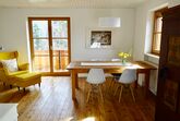 Unser hübsches Haus liegt im kleinen Weiler Wilhelming, neben einem Biobauernhof. In der ruhigen Straße können Kinder spielen und Erwachsene spazieren, ein ruhiger Urlaub garantiert. Im 1. Stock befindet sich unsere Ferienwohnung mit einem großen privaten Süd-West-Balkon. Die Wohnung ist optimal für den Urlaub zu viert geeignet. Auch Eltern mit Kindern sind uns herzlich Willkommen. Vierbeiner müssen leider zu Hause bleiben. Ausstattung: Gemütlicher Loungebereich mit Sofa, Flach-Fernsehgerät mit Giga TV und Stereoanlage, gut ausgestattete Einbauküche mit Herd, Backofen, Kühlschrank, Spülmaschine und viele weitere Küchengeräten. 2 Schlafzimmer mit Doppelbetten, eines mit Bergblick, das Badezimmer verfügt über eine Badewanne mit Dusche, WC extra. Großer Süd-/Westbalkon mit schönem Ausblick, Sonnenliegen, Sitzecke, Tisch und Bänke, W-LAN.