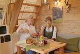 • Wohn u. Essbereich mit Sofa, Kachelofen inkl.Feuerholz Fußbodenheizung u.TV