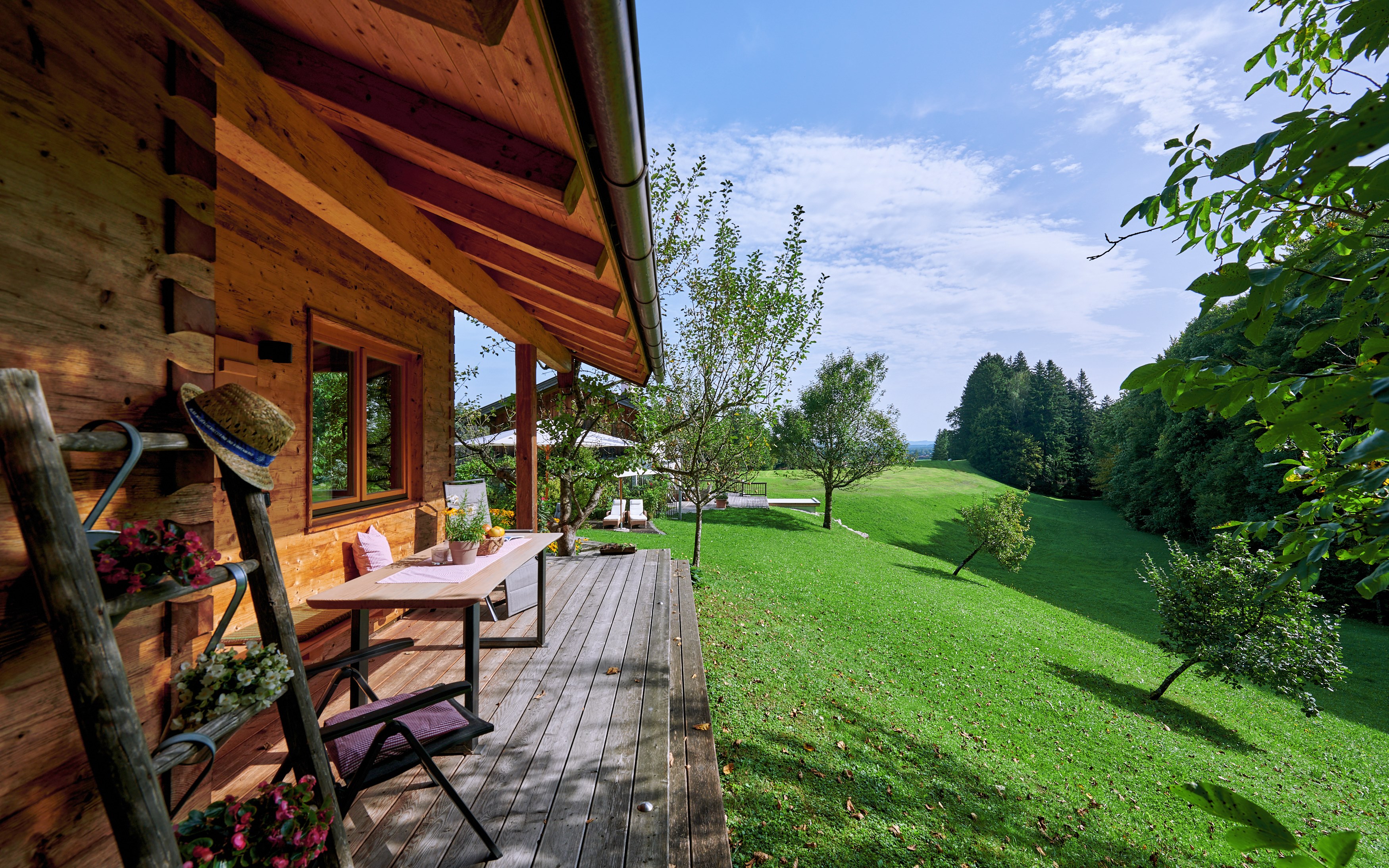 • Süd u.Ost-Terrasse aus Lärchenholz mit Bank u.Tisch