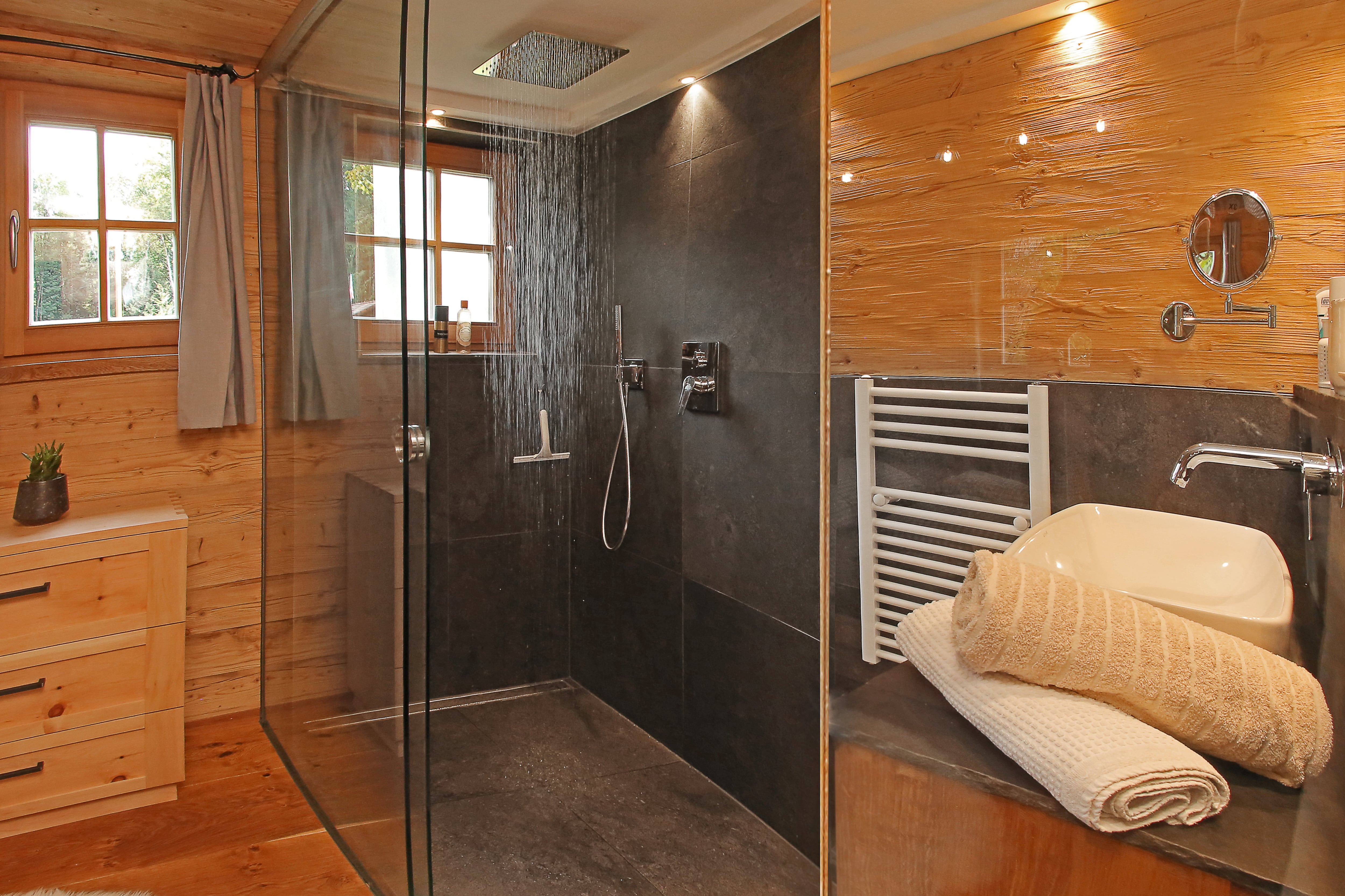 • 1 Badezimmer mit Regendusche, Föhn,