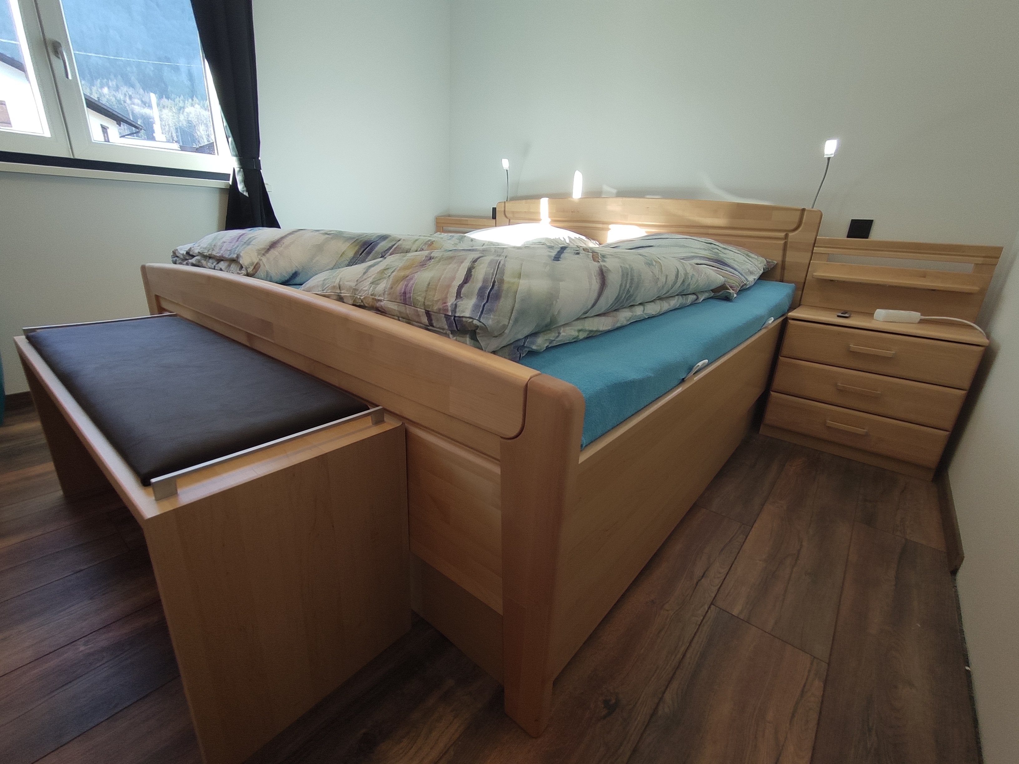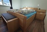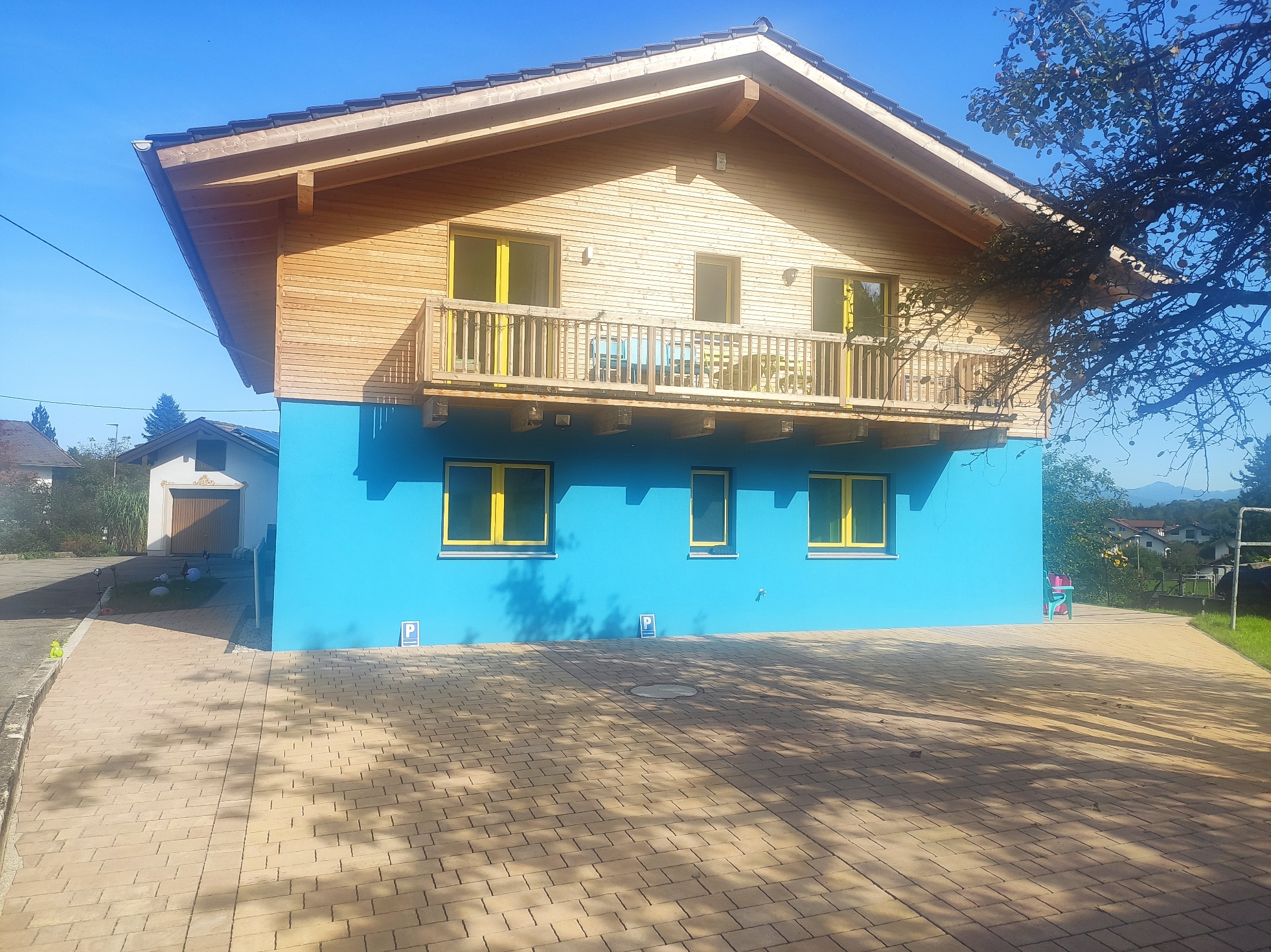 Herzlich willkommen in den beiden 2020 errichteten hochwertigen Ferienwohnungen für 1 bis 4 Personen in nachhaltiger Holzbauweise (Massivholzmauern) mit herrlichem Bergblick und großer Terrasse bzw. Balkon. Klimafreundliche FB-Heizung mit Wärmepumpe und PV-Anlage sowie zentraler Belüftung komplett frei von fossilen Energieträgern. Die modern, aber trotzdem gemütlich eingerichteten Ferienwohnungen sind hochwertig ausgestattet, jeweils mit separatem Schlafzimmer, großzügiger Wohnküche inkl. Geschirrspüler, Mikrowelle, großem Flachbild-TV und Bad mit Dusche/WC sowie eigener Waschmaschine + Trockner. Die gesamte Beleuchtung ist in modernster LED-Technik ausgeführt. Südseitig sind elektr. Jalousien zur Verdunklung installiert. WLAN steht im gesamten Gebäude kostenfrei zur Verfügung. Parkmöglichkeit direkt am Haus. 2 Wallboxen mit bis zu 11 kW zum Aufladen der Akkus von E-Autos + Hybrid-Fz. Verleih von E-Bikes i. H. möglich.