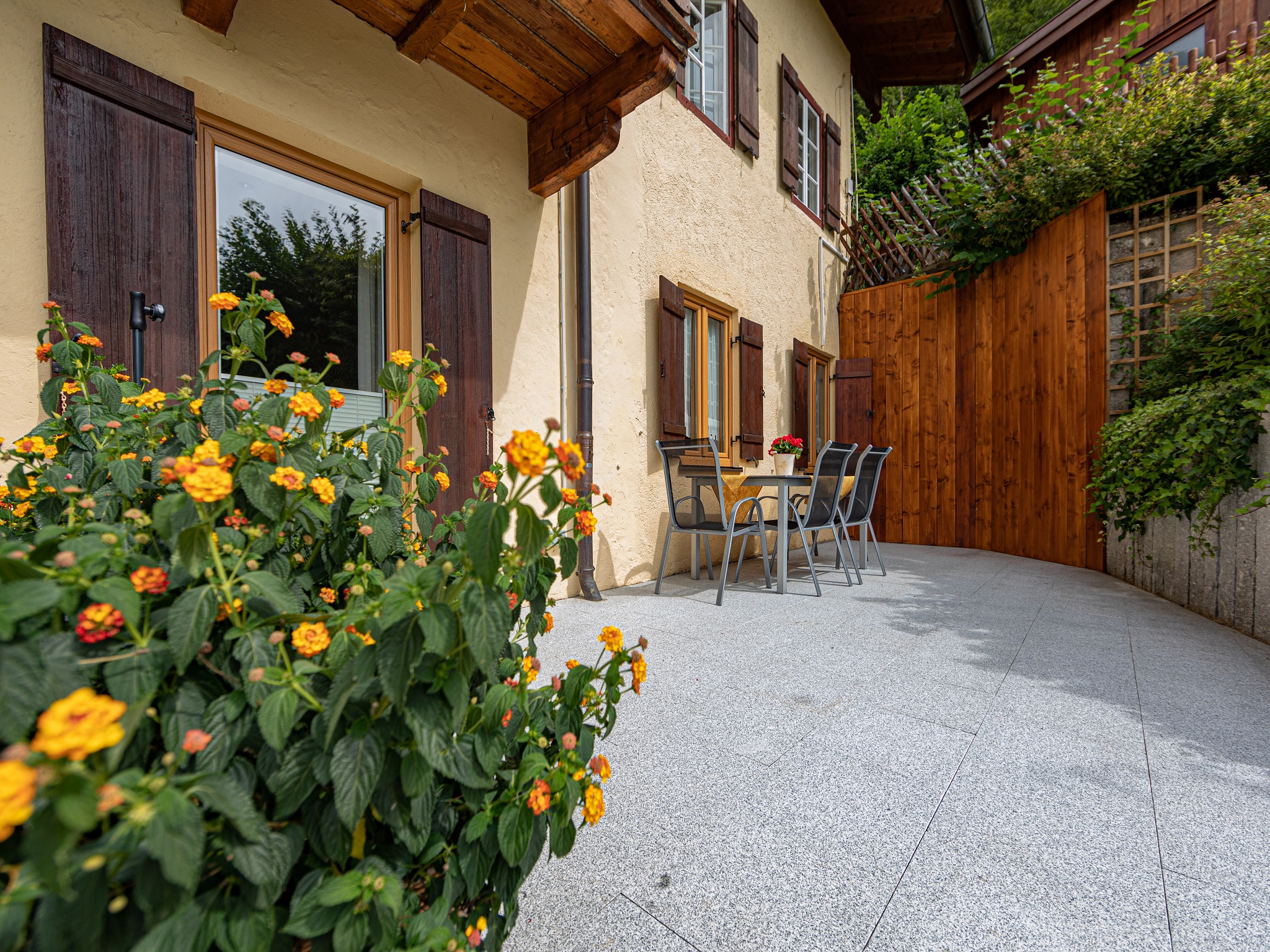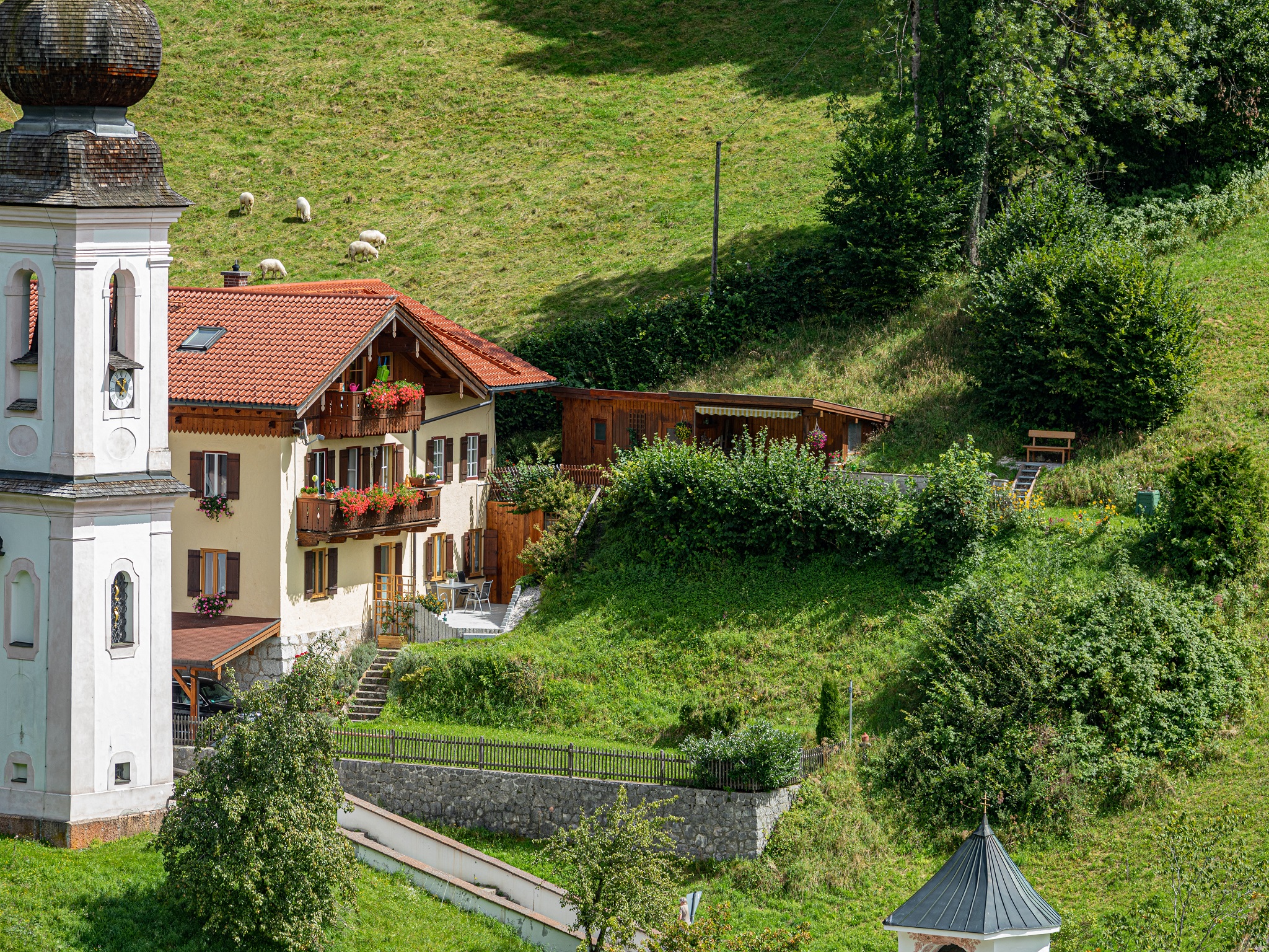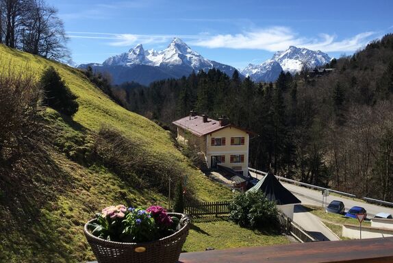 Unsere Ferienwohnung ist nur 3 Kilometer vom Ortskern Berchtesgaden entfernt und liegt dennoch in traumhafter Panoramalage auf 750 Metern Höhe. Das Haus befindet sich im denkmalgeschützten Ensemble neben der berühmten Barockwallfahrtskirche (bekannte Postkartenidylle). Vom Schlafzimmer, vom Wohnzimmer und von der Terrasse aus können Sie den großartigen freien Blick zum Watzmann genießen. Die Bushaltestelle ist nur 100 Meter entfernt. Eine Gaststätte mit gut bürgerlicher Küche befindet sich in der direkten Nachbarschaft. In unmittelbarer Umgebung finden Sie viele schöne Wanderwege. Unsere 87 qm große Ferienwohnung wurde 2019 komplett renoviert/saniert und mit hochwertigen Möbeln ausgestattet. Unser Haus ist ein Nichtraucherhaus und es sind keine Haustiere gestattet. Ein kostenloser Parkplatz steht Ihnen direkt vor unserem Haus zur Verfügung.