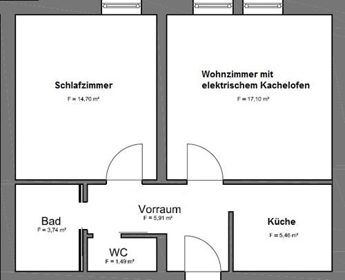 Unsere Ferienwohnung Brennkopf verfügt über ein gemütliches Wohnzimmer mit ausziehbarer Schlafcouch, 1 Doppelzimmer mit Badezimmer/Badewanne/WC/Fön und einer separaten vollausgestatteten Küche mit Essbereich. TV, Telefon und gratis W-Lan vorhanden.
