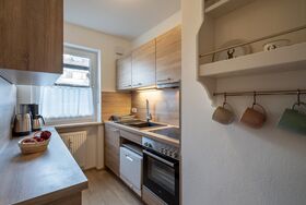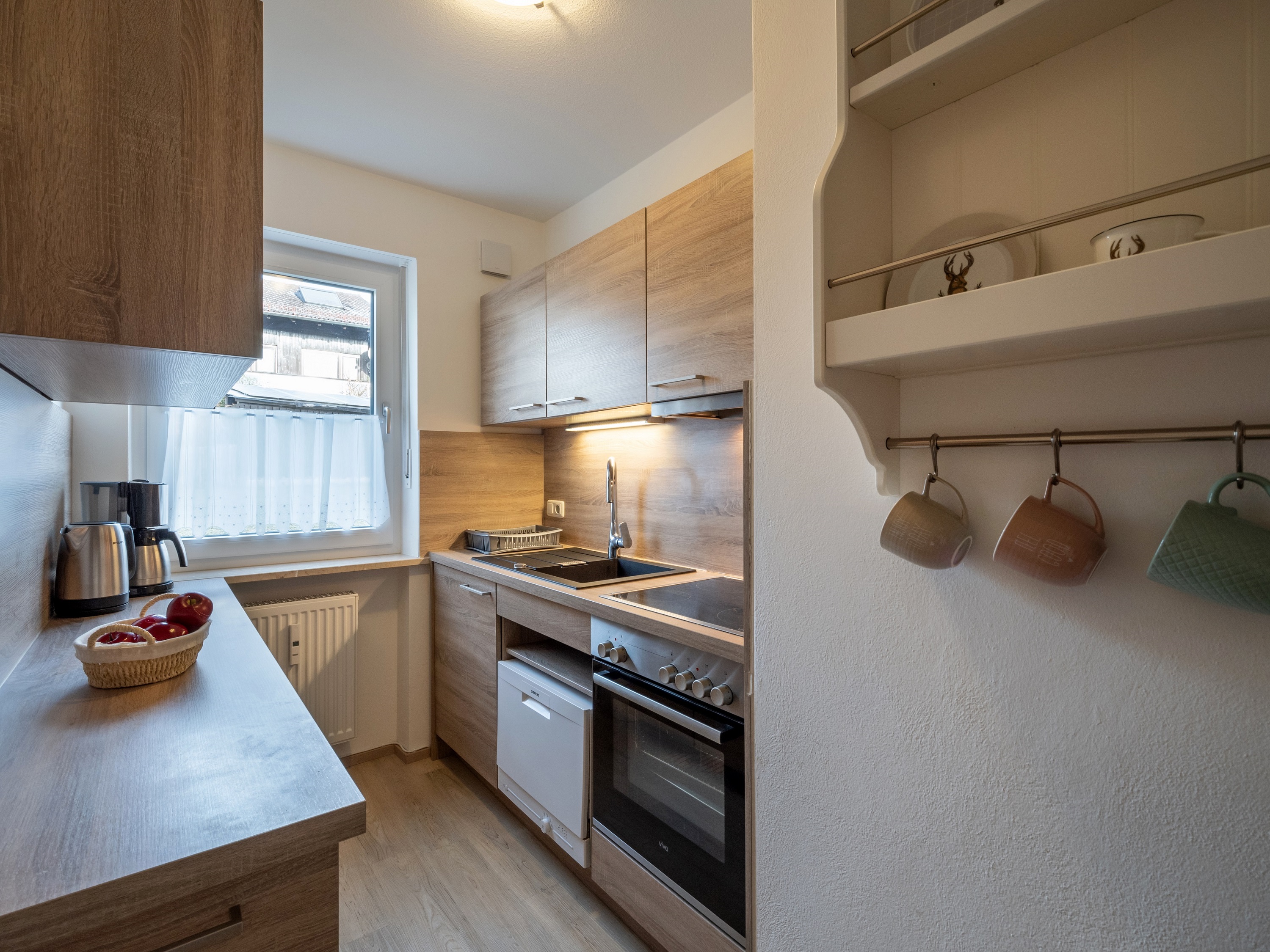 Gemütliche Zweizimmerwohnungen mit Blick nach Süden auf das Kaisergebirge (56 qm, 2 bis 4 Personen) und einer Schlafcouch. Wohnzimmer mit Eckbank und Fernseher. Schlafzimmer mit Doppelbett und Kleiderschrank. Bad mit WC und Wanne. Küche mit 4 Plattenherd, Backofen, Kühlschrank, Mikrowelle, Kaffeemaschine und Toaster. Nach einem ereignisreichen Tag lädt der Balkon zum Entspannen ein. Handtücher und Bettwäsche sind vorhanden. Zur Wohnung gehört eine Tiefgarage.
