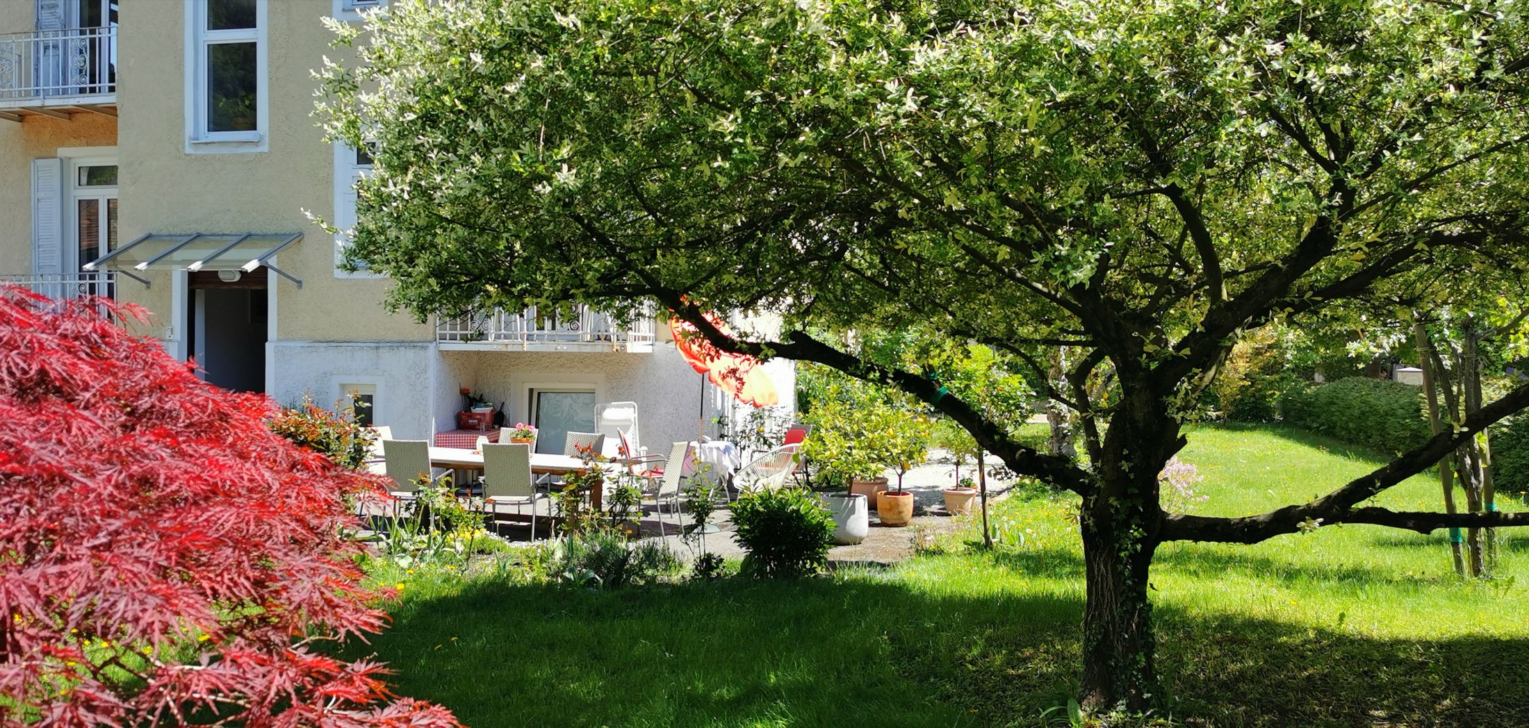Wir vermieten eine gemütliche Souterrain-Wohnung in unserer alten Villa, die im Herzen der Urlaubs- und Kurstadt Bad Reichenhall (Kurzone 1) liegt. Die Wohnung hat eine Größe von 44 qm und besteht aus einem Wohn-/Schlafraum, einer kleine Küche mit Essplatz und einem großen Badezimmer. Zur Villa gehört ein großer Garten, der gerne auch zur Nutzung zur Verfügung steht. Parkplätze für Autos und Stellplätze für Fahrräder sind auf dem Grundstück vorhanden.