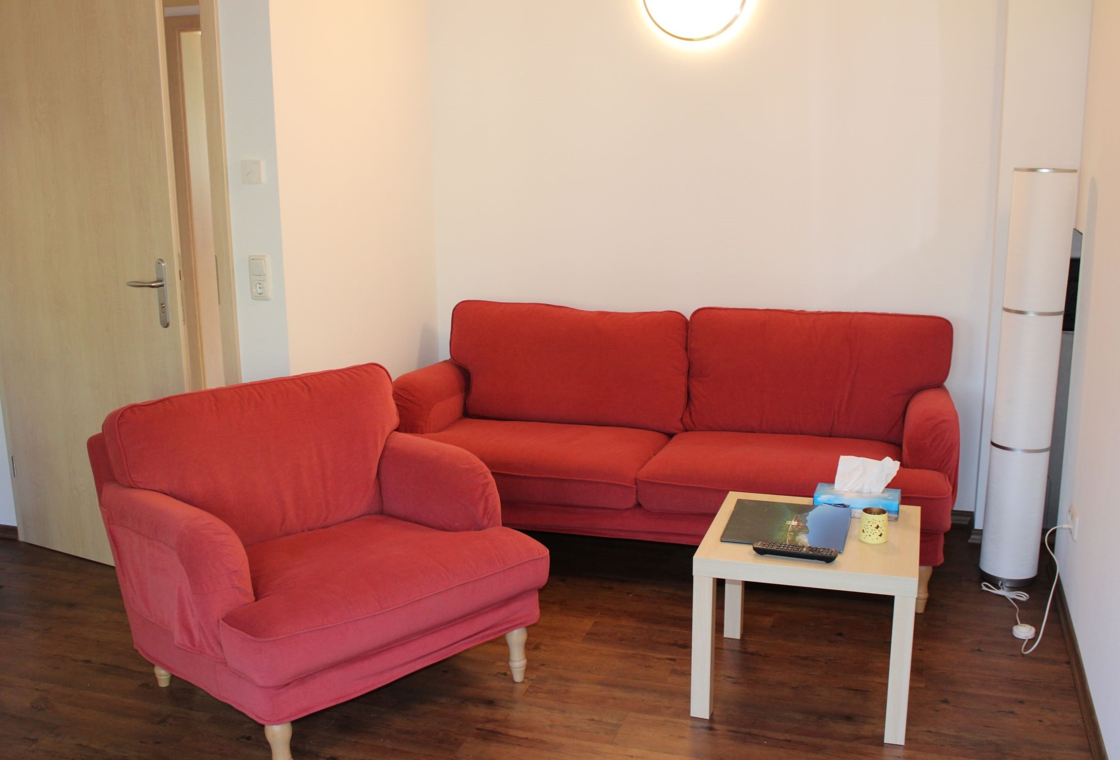 • Namensgebend für unser Ferienappartement ist ein Baudenkmal, unsere alte Brücke. Unter ihr fließt gemütlich ein Gebirgsbach hindurch. Sie betreten die Wohnung im Dachgeschoss und stehen mitten im Wohnraum: der Essbereich ist mit Tisch und Stühlen ausgestattet. Der Couchbereich mit Sofa und Sessel lädt zum Verweilen ein. In der Kochecke finden Sie neben Induktionsplatte, Kühlschrank, Spüle, Kaffeemaschine und Wasserkocher alles, was zur Zubereitung von kalten und kleinen warmen Gerichten nötig ist. Im angrenzenden, separaten Schlafzimmer steht ein gemütliches Doppelbett. Das große Schrankregal bietet ausreichend Platz. Das Bad grenzt ebenfalls direkt an den Wohnraum an und ist mit Dusche/WC und Waschbecken ausgestattet. Auf dem Balkon stehen bequeme Stühle mit verstellbarer Rückenlehne für Sie bereit. Herzlich Willkommen!