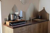 Es erwartet Sie aus jedem Fenster und vom Balkon ein grandioser Blick auf das Watzmann-Massiv, Hochkalter, Schönfeldspitze und Funtenseetauern. Sie betreten die Wohnung im Dachgeschoss und stehen mitten im Wohnraum: der Essbereich ist mit Tisch und Stühlen ausgestattet. Der Couchbereich mit Sofa und Sessel lädt zum Verweilen ein. In der Kochecke finden Sie neben Induktionsplatte, Kühlschrank, Spüle, Kaffeemaschine und Wasserkocher alles, was zur Zubereitung von kalten und kleinen warmen Gerichten nötig ist. Im angrenzenden, separaten Schlafzimmer steht ein gemütliches Doppelbett. Das große Schrankregal bietet ausreichend Platz. Das Bad grenzt ebenfalls direkt an den Wohnraum an und ist mit Dusche/WC und Waschbecken ausgestattet. Auf dem Balkon stehen bequeme Stühle mit verstellbarer Rückenlehne für Sie bereit. Herzlich Willkommen!