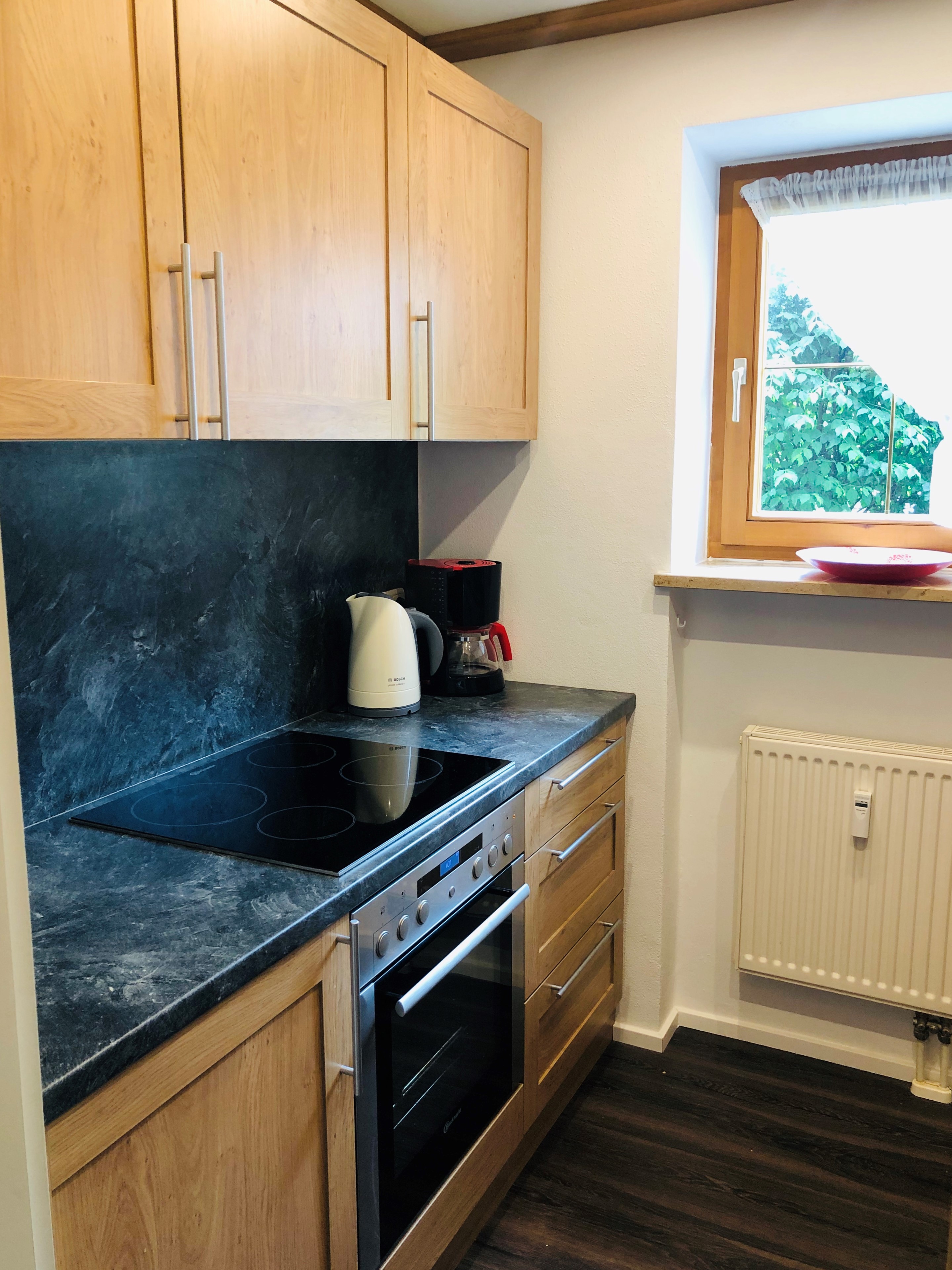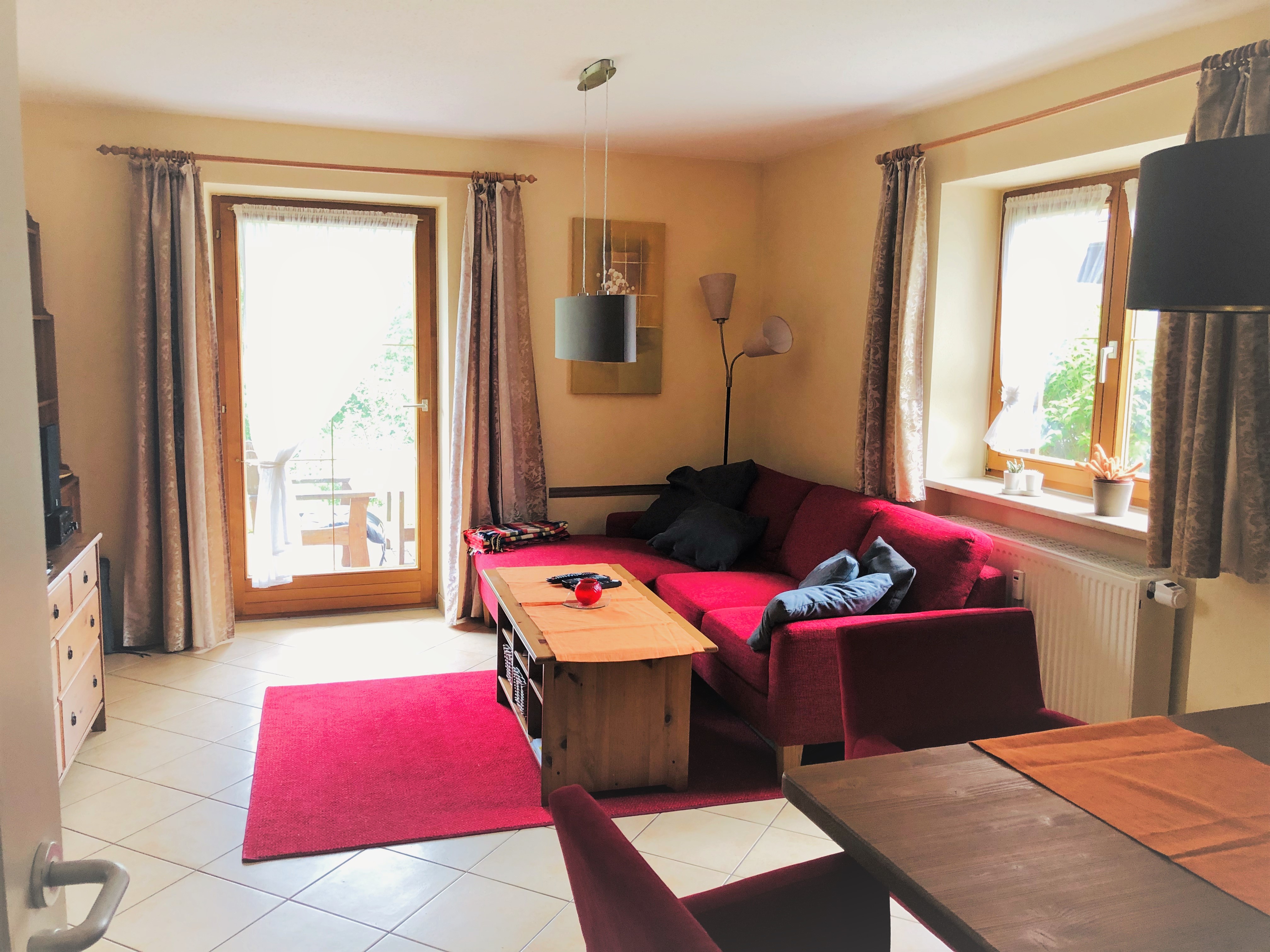 Die 62 qm große Ferienwohnung befindet sich in der Ferienwohnanlage Grenzhub, direkt an der Grenze zu Tirol. Das Appartement verfügt über 2 separate Schlafzimmer mit einem Französischem Bett und einmal Stockbetten. Die Küche ist ausgestattet mit Kühlschrank, Geschirrspülmaschine, Cerankochfeld, Backofen, Wasserkocher, Kaffeemaschine, Mikrowelle. Im Badezimmer finden Sie eine Dusche vor, das WC befindet sich separat in der Wohnung. Im Wohnzimmer befindet sich ein ausziehbares Schlafsofa (140x200cm), ein Sitzbereich und ein Flat-SAT-TV. Nutzen Sie kostenloses WLAN. Die Terrasse ist mit Gartenmöbeln ausgestattet. Ein Hund darf gegen Aufpreis gerne mitgebracht werden. Parkplatz vorhanden. Nichtraucherwohnung. Behindertenfreundlich, ebenerdig.
