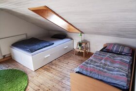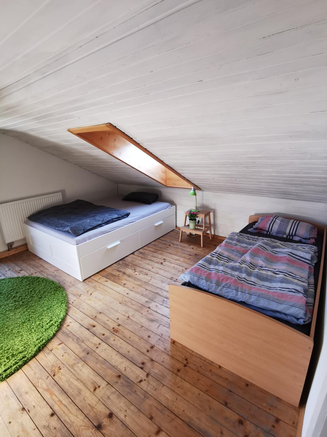 2. Etage- Zimmer 1: Einzelbett 140x200cm und Einzelbett 90x200cm, Kommode und Sessel