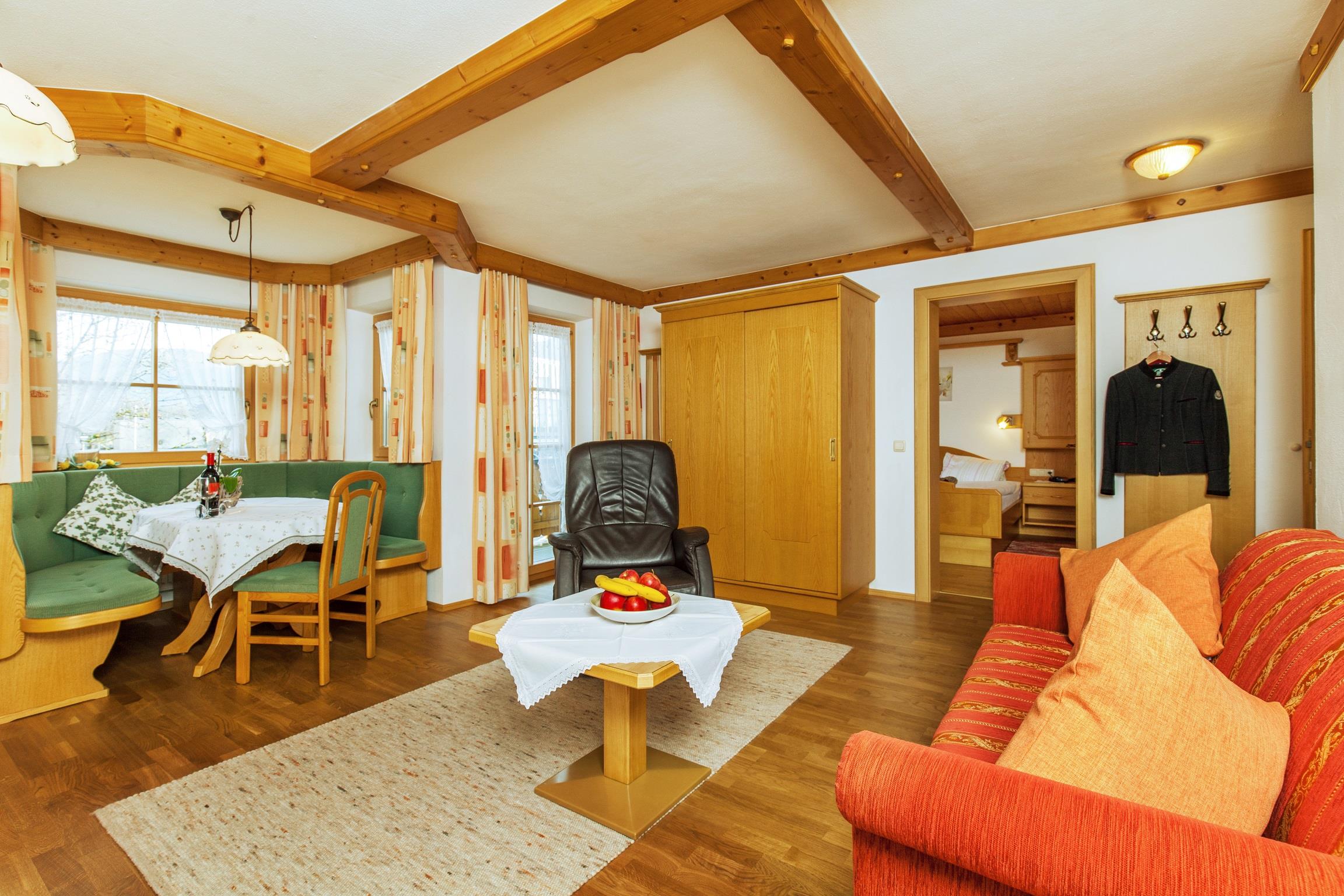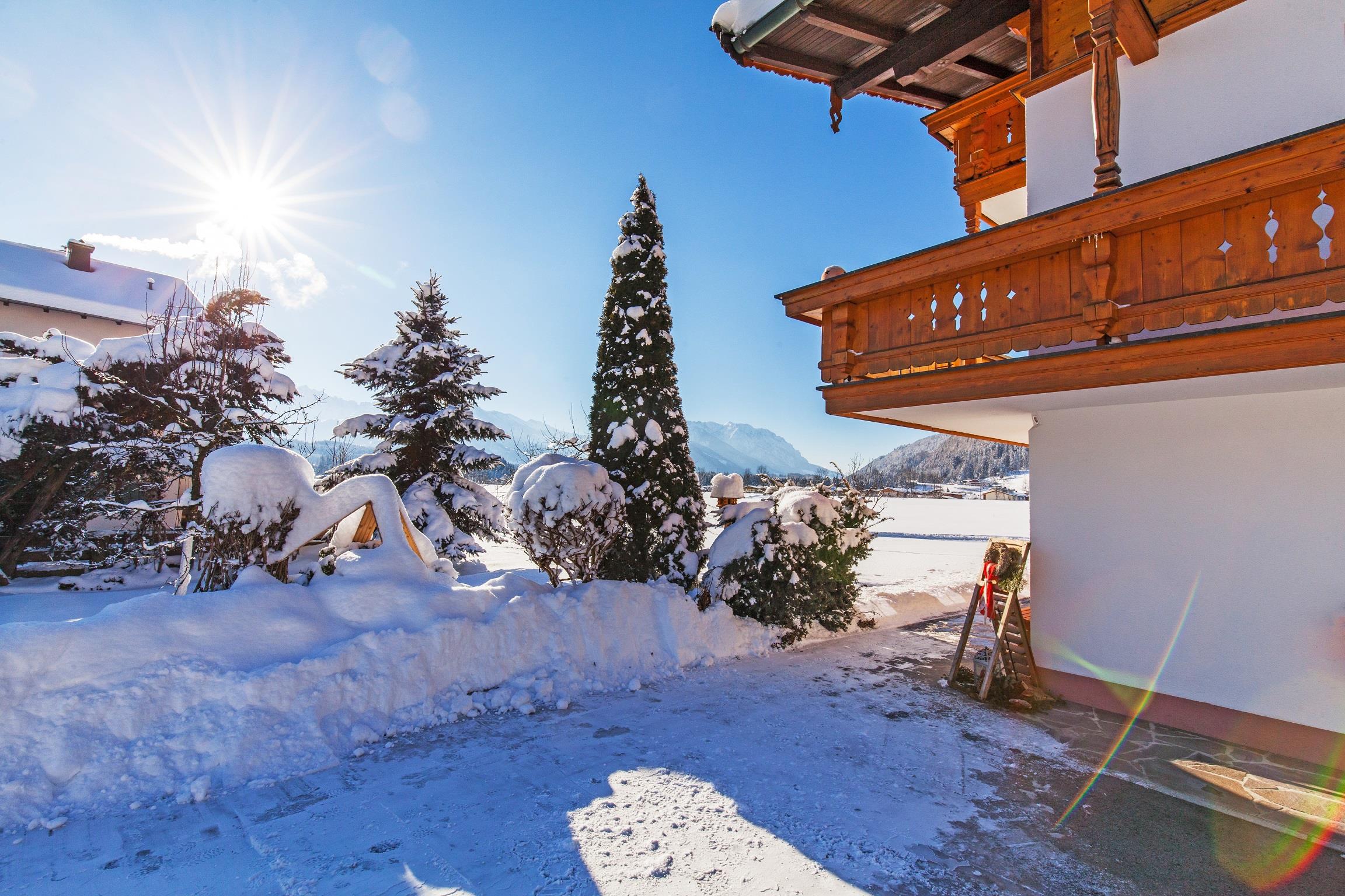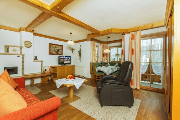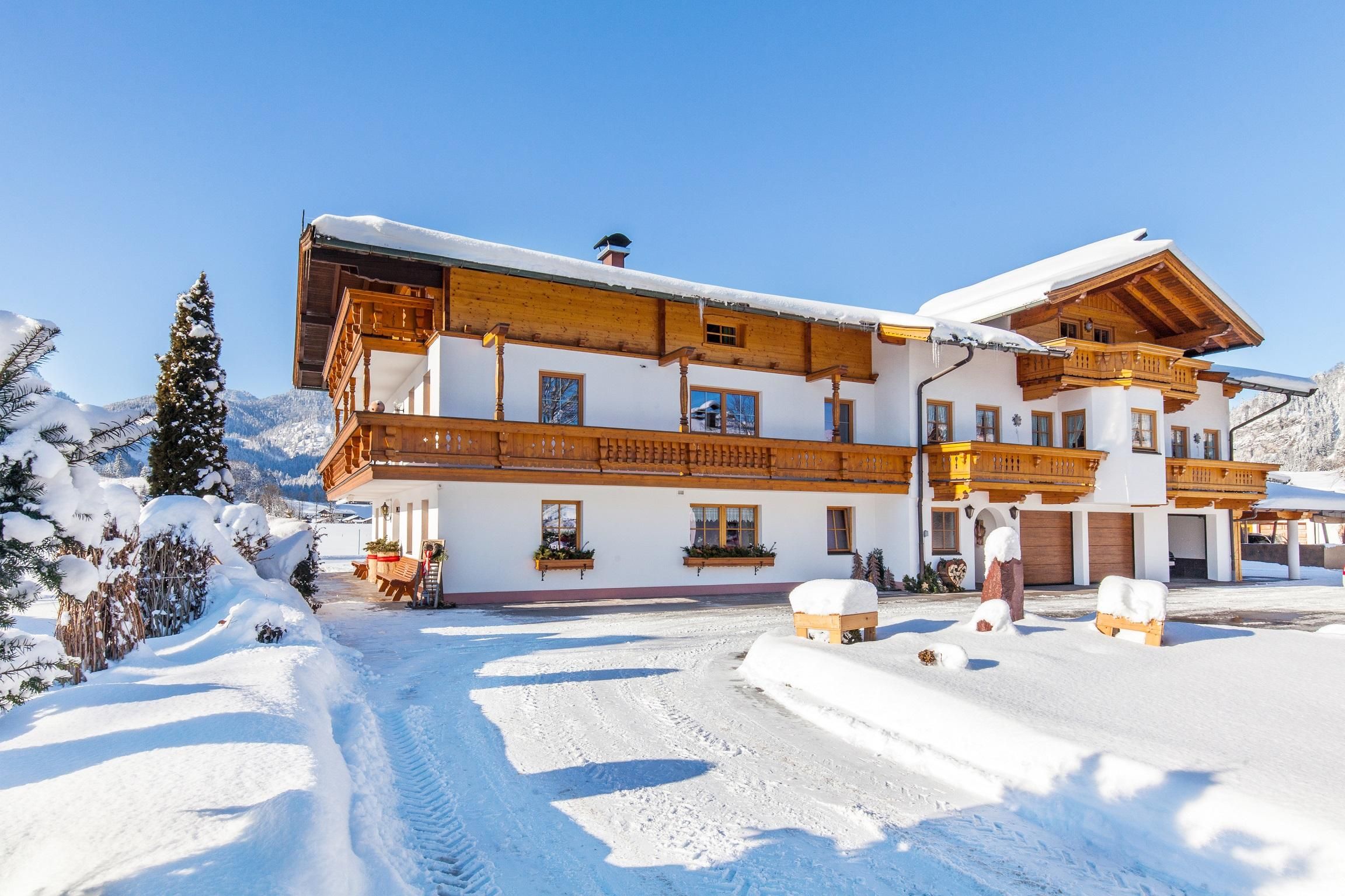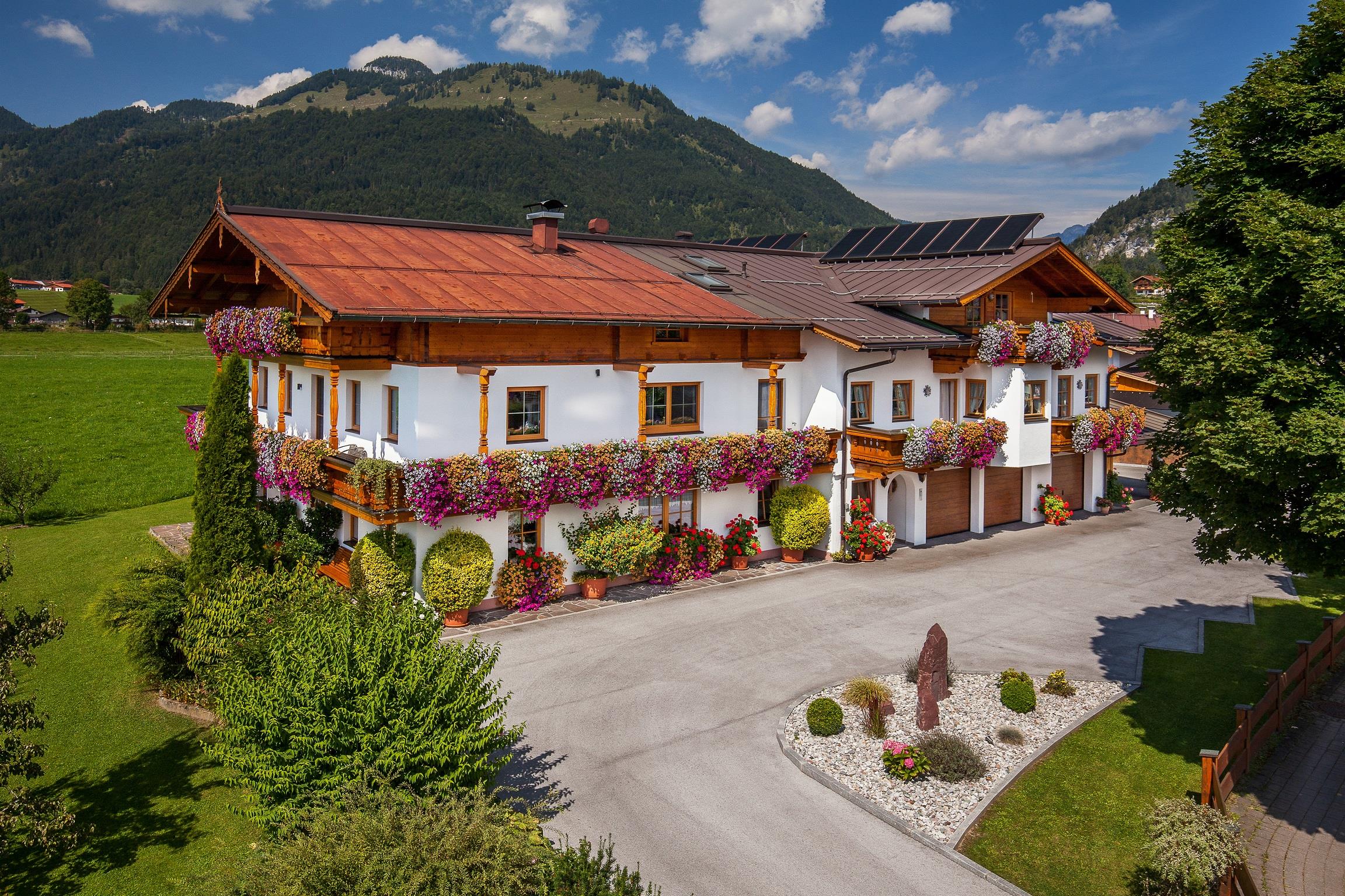 4 Gemütliche Ferienwohnungen mit Kachelofen und Balkon mit Blick zum Wilden Kaiser oder Unterberghorn .