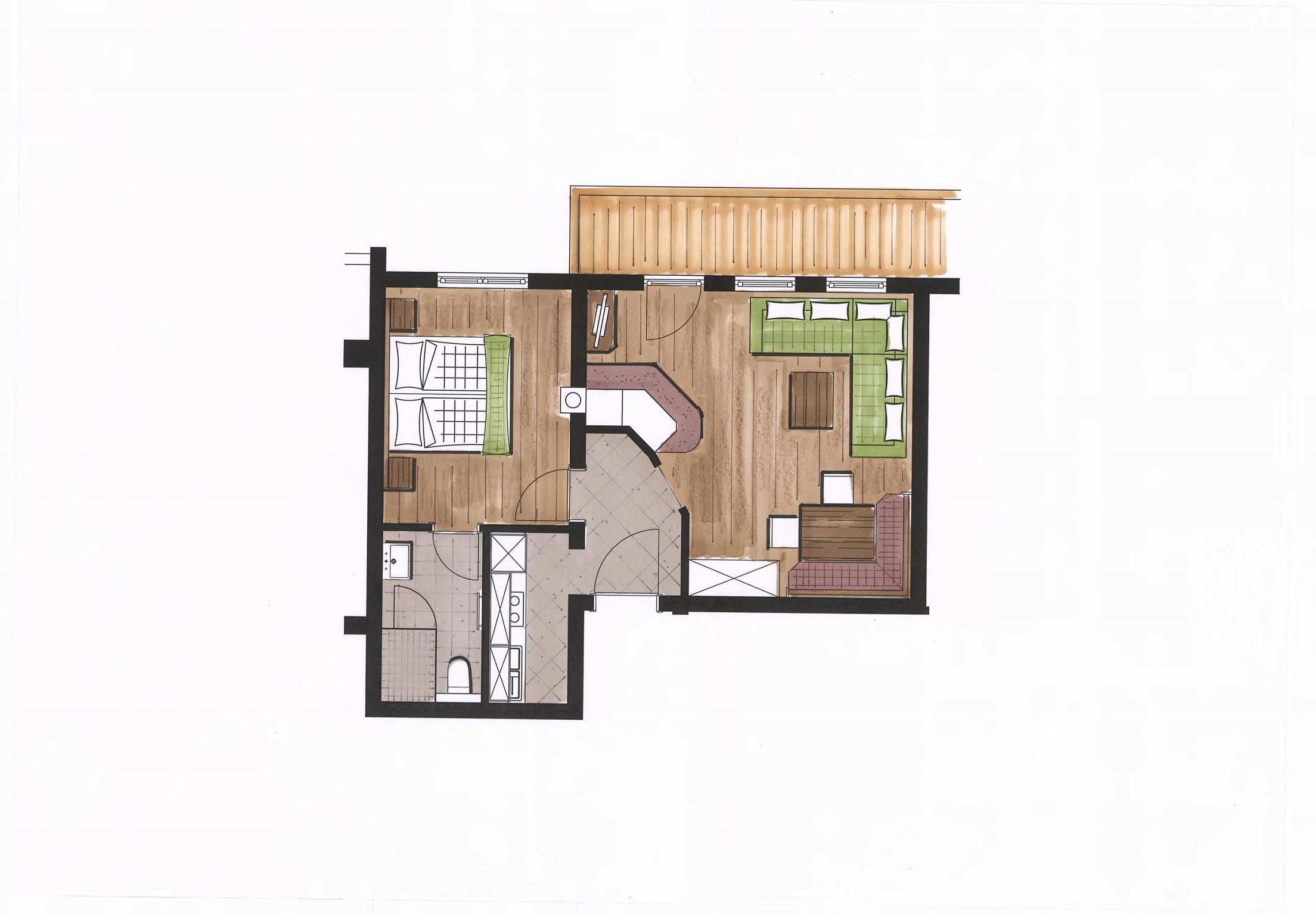 Gemütliche Ferienwohnungen mit Kachelofen, 1 Schlaf- und 1 Wohnschlafzimmer, Küche, Eßecke,Dusche/WC, TV,W-Lan Gratis und Balkon.