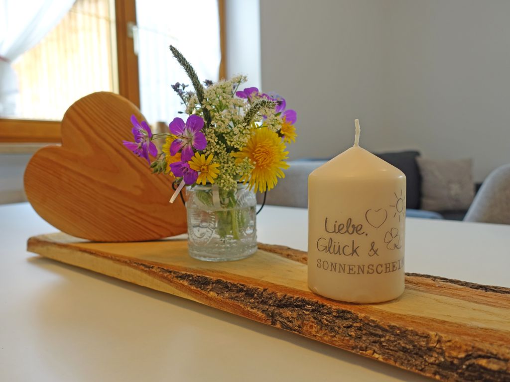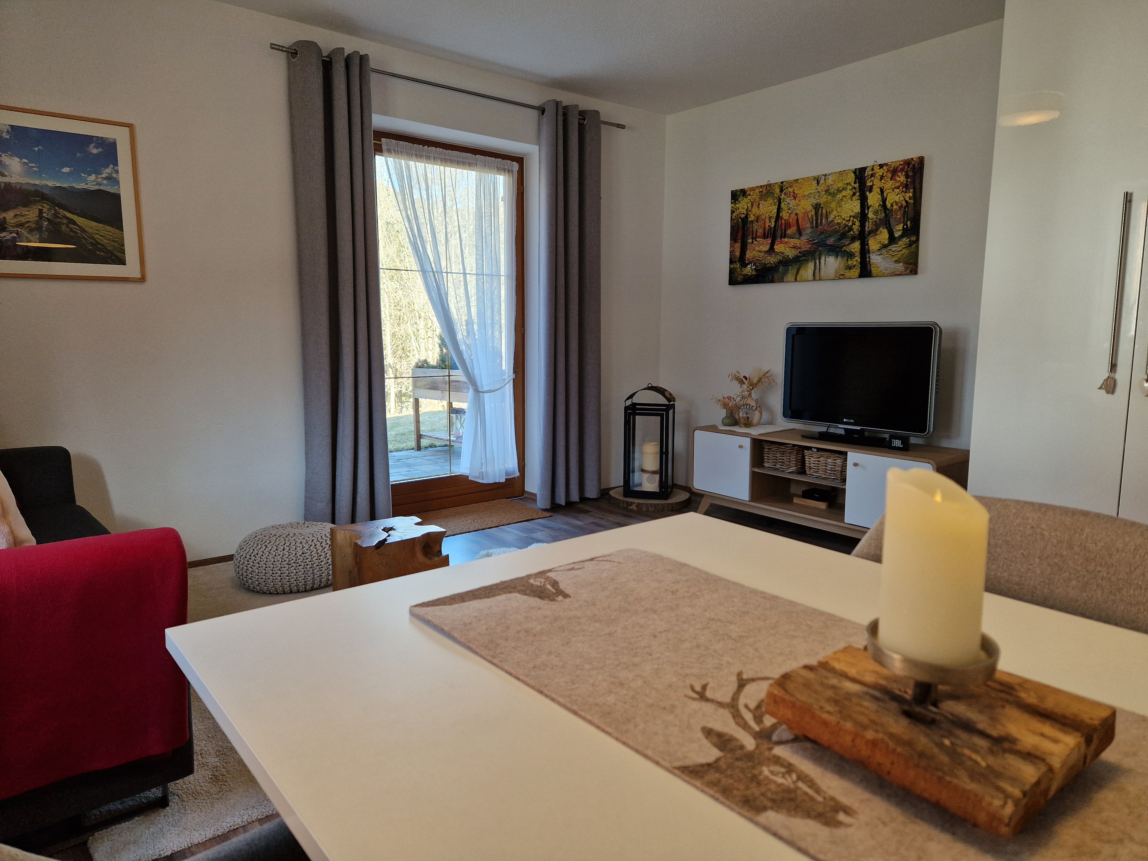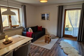 In unserer Ferienwohnung Murmeltier erwartet Sie eine 49 qm große, lichtdurchflutete Ferienwohnung. Die neu gestalteten Räume laden zum Entspannen und Erholen ein. Genießen Sie einen herrlichen Blick in die umliegende Bergwelt von der großen Südwest-Terrasse. Erleben Sie wahre Urlaubsgefühle. Schlafen Sie im separaten Schlafzimmer wie ein Murmeltier in dem Boxspringbett der Luxusklasse (180 x 200 cm) mit 2 verschiedenen Härtegraden (links H3, rechts am Fenster H2). Verbringen Sie schöne Stunden im großzügigen und gemütlichen Wohnzimmer mit moderner Sitzgruppe. Eine hochwertige Boxspring-Schlafcouch (140 x 200 cm) inklusive Topper lässt auch einen dritten Gast oder zwei Kinder komfortabel schlafen. Der Fernseher mit Ambilight-Hintergrundbeleuchtung lädt zum gemütlichen Fernsehabend ein. In der Diele finden Sie neben einem geräumigen Schrank, einem Schuhregal, Garderobe und Spiegel eine große Gefrier-Kühlkombination im angesagten Vintage-Style. Zur Ferienwohnung gehört außerdem eine neue, hochwerte vollausgestattete Küche (Herd mit 2 Platten Induktion inkl. Backofen, Geschirrspüler, Kaffeemaschine, Wasserkocher, Geschirr, Kochtöpfe, Pfanne). Das renovierte Badezimmer (WC, Waschbecken, Duschkabine, Armaturen), sowie neue Türen in allen Wohnräumen unterstreichen das Wohlfühlambiente. Ein Kinderreisebett für Kinder bis 3 Jahre kann auf Anfrage bereitgestellt werden. Für zusätzlichen Komfort bieten wir Ihnen kostenloses WLAN und einen Parkplatz vor dem Haus. Bitte beachten Sie, dass Hunde und andere Haustiere leider nicht gestattet sind.