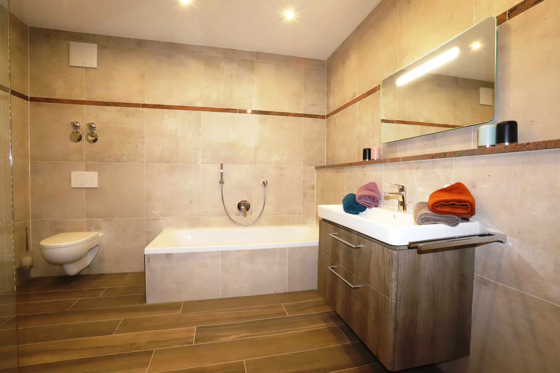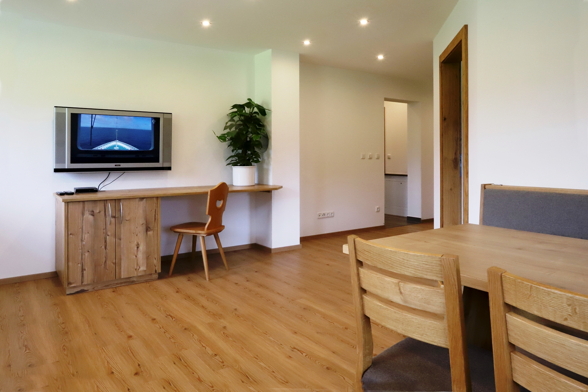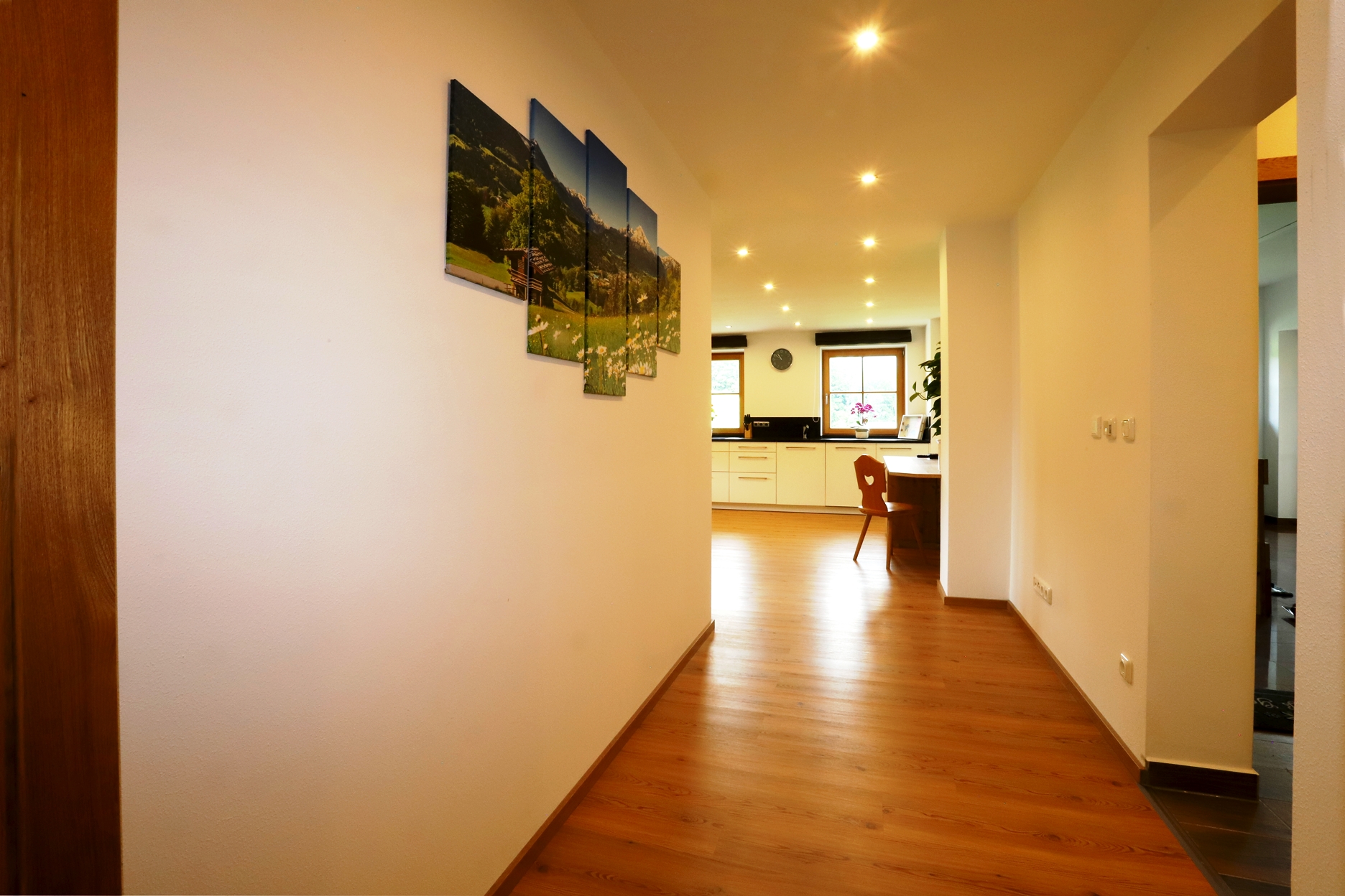 Unsere, im modernen Landhausstiel eingerichtete Ferienwohnung liegt im 1. Stock unseres Hauses und bietet auf ca. 90 m² ausreichend Platz für bis zu 4 Personen. Die mit vielen Extras ausgestattete Wohnküche lässt keine Wünsche offen. Zwei getrennte Schlafzimmer sorgen für einen erholsamen Schlaf um am nächsten Tag, erholt und entspannt, die umliegende Bergwelt zu erkunden.