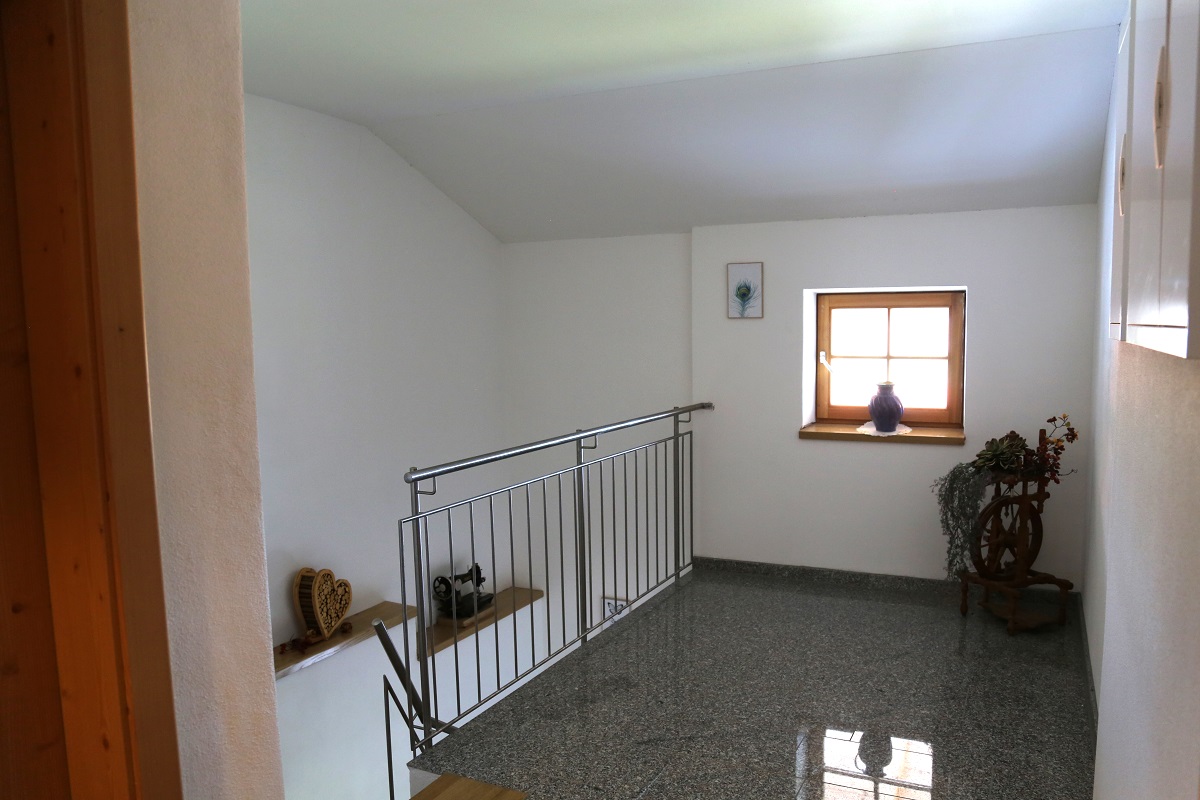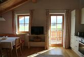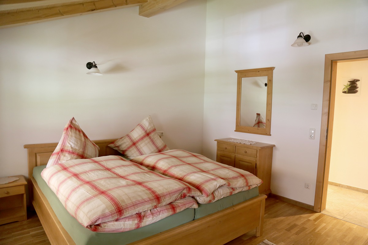 Die 2018 errichtete Ferienwohnung im Landhausstil befindet im 2. Stock unseres Bauernhofes, jedoch mit eigenem Eingang. Die Räume sind großzügig und hell, besonders der sichtbare Dachstuhl und der Parkettboden in der Wohnküche und in den 2 Schlafzimmern verleihen der Wohnung viel Gemütlichkeit. Die sehr gut ausgestattete Wohnküche ist mit einer Kaffeemaschine, Wasserkocher, 4 Ceranplatten, Backofen, Microwelle, reichlich Geschirr, Spülmaschine, Stabmixer, Eierkocher, Toaster und Kühlschrank mit Tiefkühlfach bestückt. Außerdem steht Ihnen ein TV, WLAN, Badezimmer mit DU/WC, Fön, Handtücher und Bettwäsche zur Verfügung. Der Balkon mit Balkonmöbel hat eine Ostausrichtung. - wenn 2 Personen beide Schlafzimmer benützen berechnen wir 10,00 € Zuschlag.